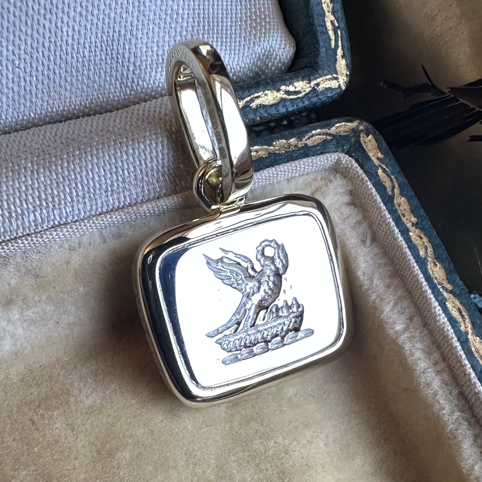 "I absolutely adore my Bauble Magpie intaglio pendant. I was looking for a piece to wear as a memento of my dear, departed whippet, Louis. When I saw this beautiful black seal with a running hound, I knew I’d found it. It’s set in luxurious 18ct gold, I wear it everyday and receive so many compliments. I really did appreciate the personal communication from Emma. We’ve had many great conversations about much more than jewellery and it’s obvious that she pours her heart, soul and fabulous self into every piece. "