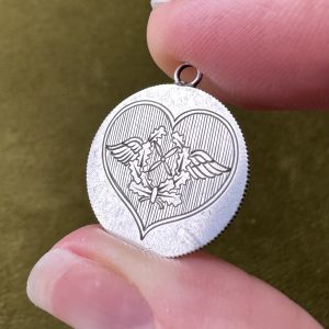 Now before the wonderful world of Bauble Magpie and the antique jewelry world as we know it, Victorian love tokens weren’t only designed with wearing in mind. They were coins that had been intentionally altered, smoothed down and engraved, often by hand, into something personal as a quiet exchange between two people. A mark of connection, affection, sometimes remembrance. Something that said “this is ours” without needing to explain itself to anyone else. And over time, they’ve taken on even more layers. Because every mark, every engraving, every softened edge is part of a life that’s already been lived…but as we both know these talismans aren’t finished with yet.