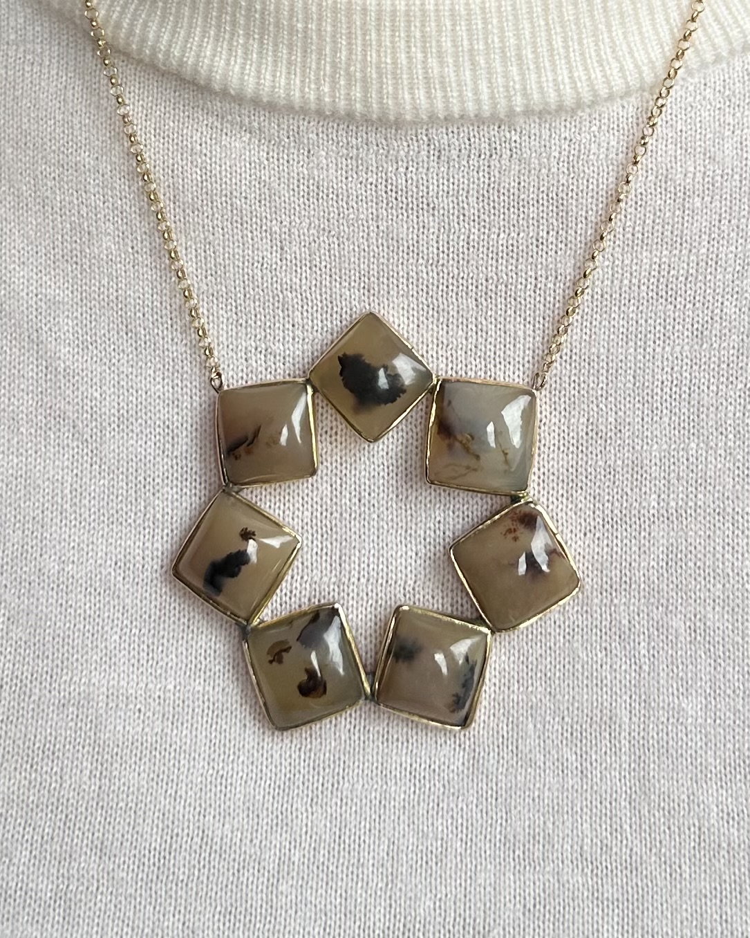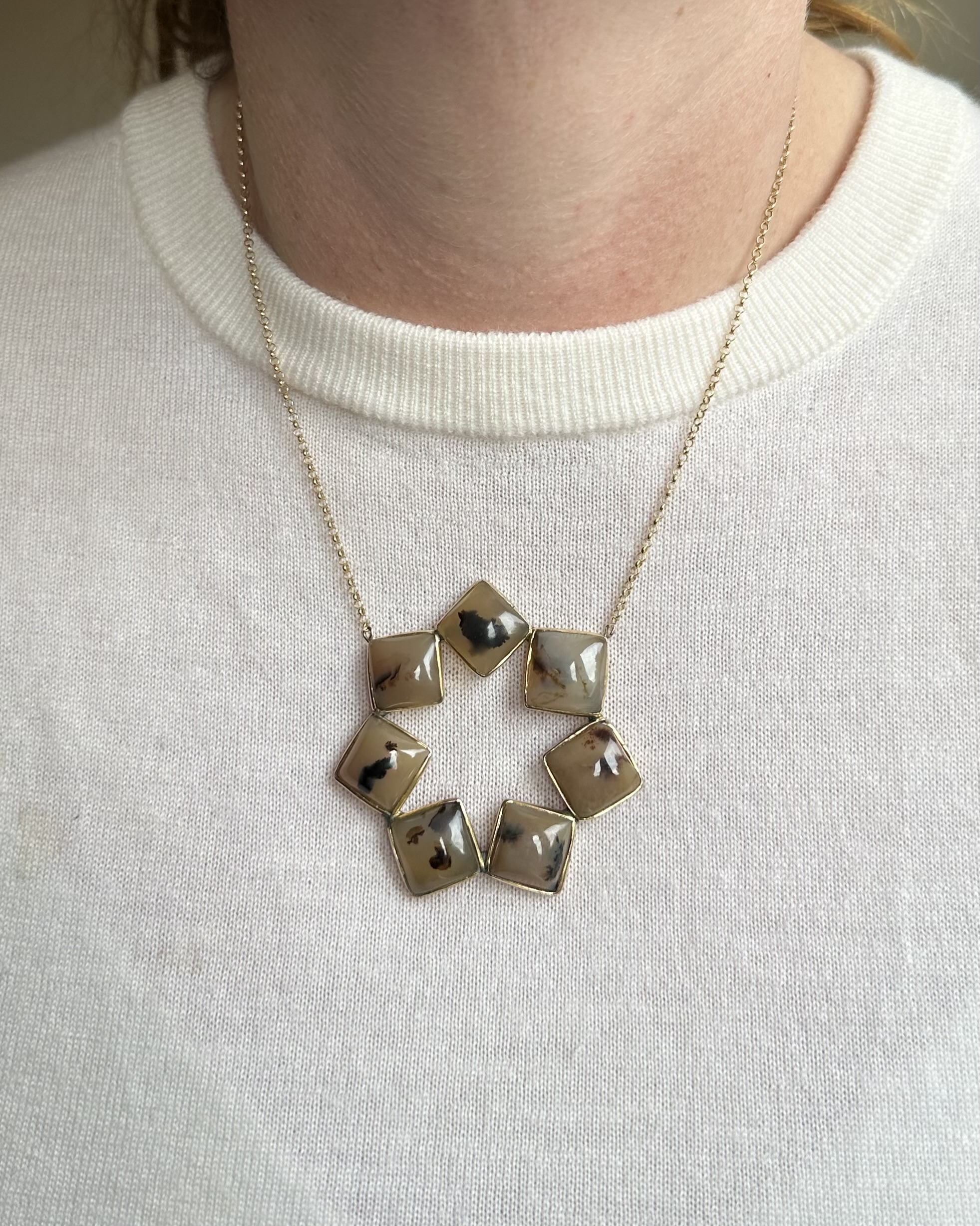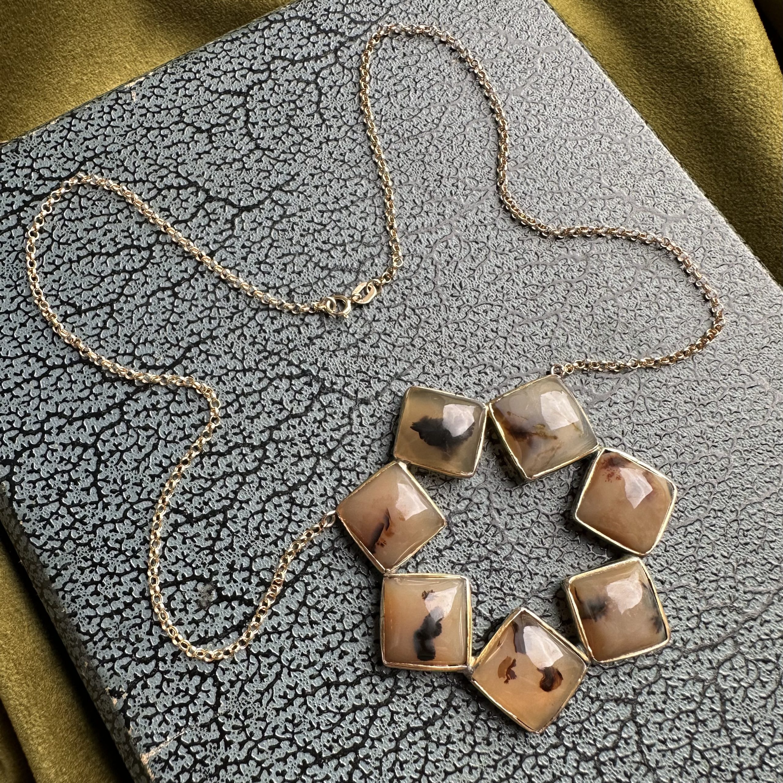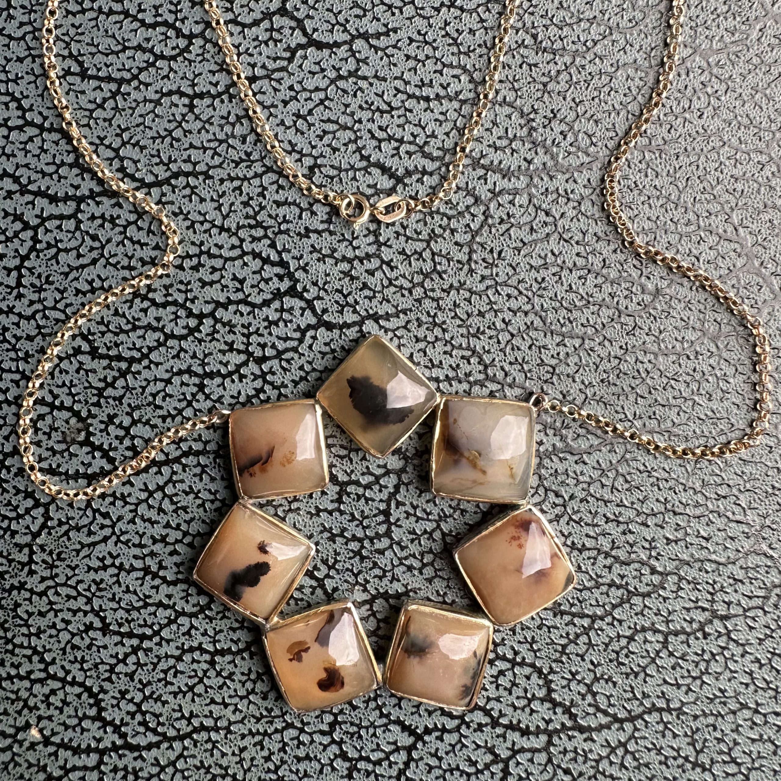 9ct Gold Dendritic Agate Brooch Conversion Necklace