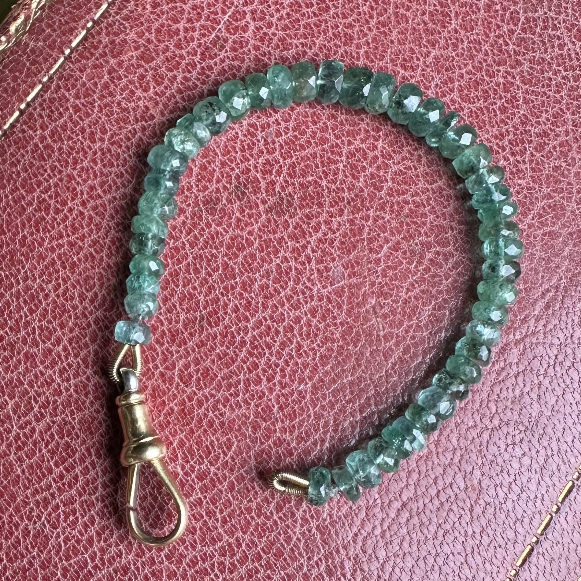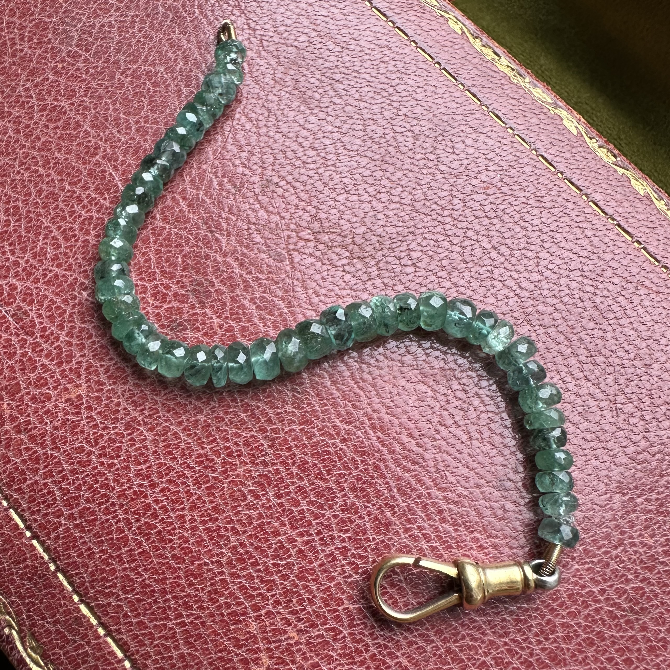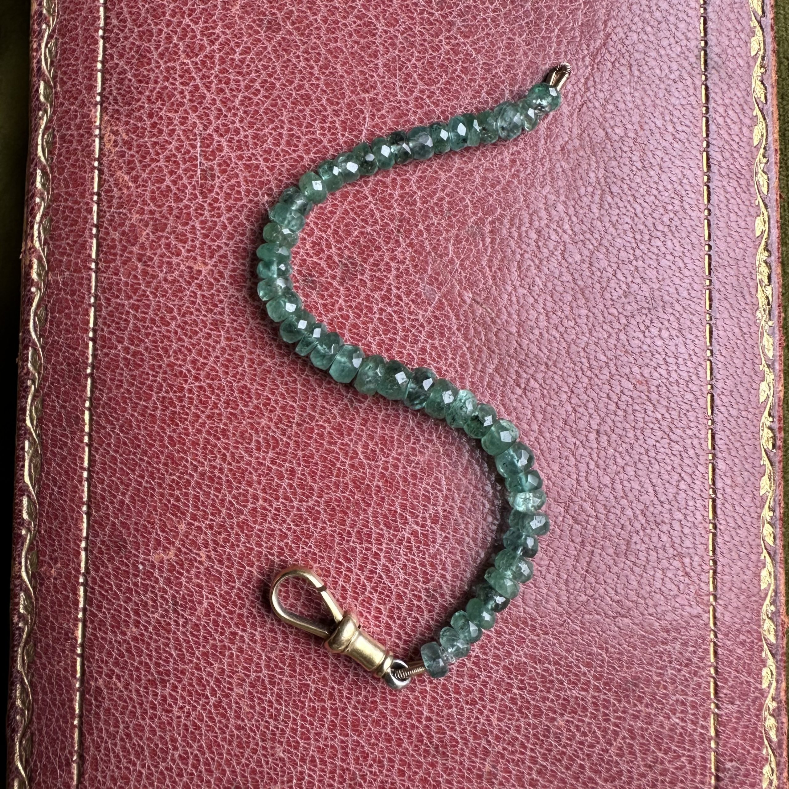 A hand strung emerald rondelle bead extender with antique 18ct yellow gold and platinum dog clip clasp