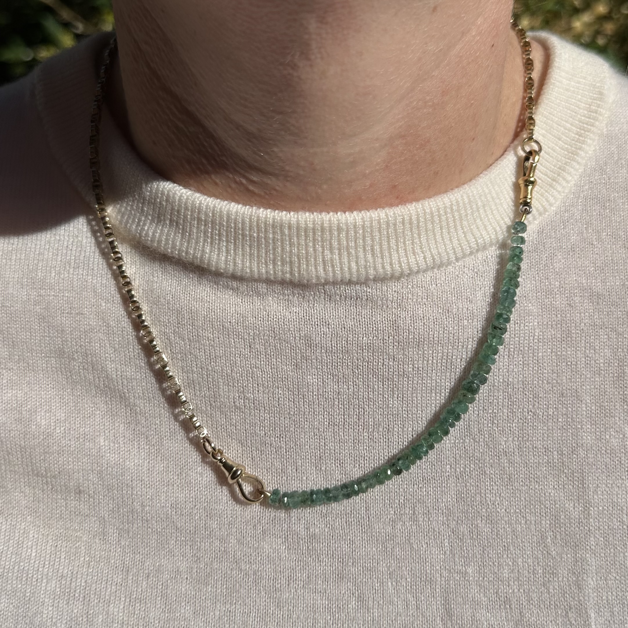Emerald Rondelle Extender with Antique Platinum & 18ct Dog Clip