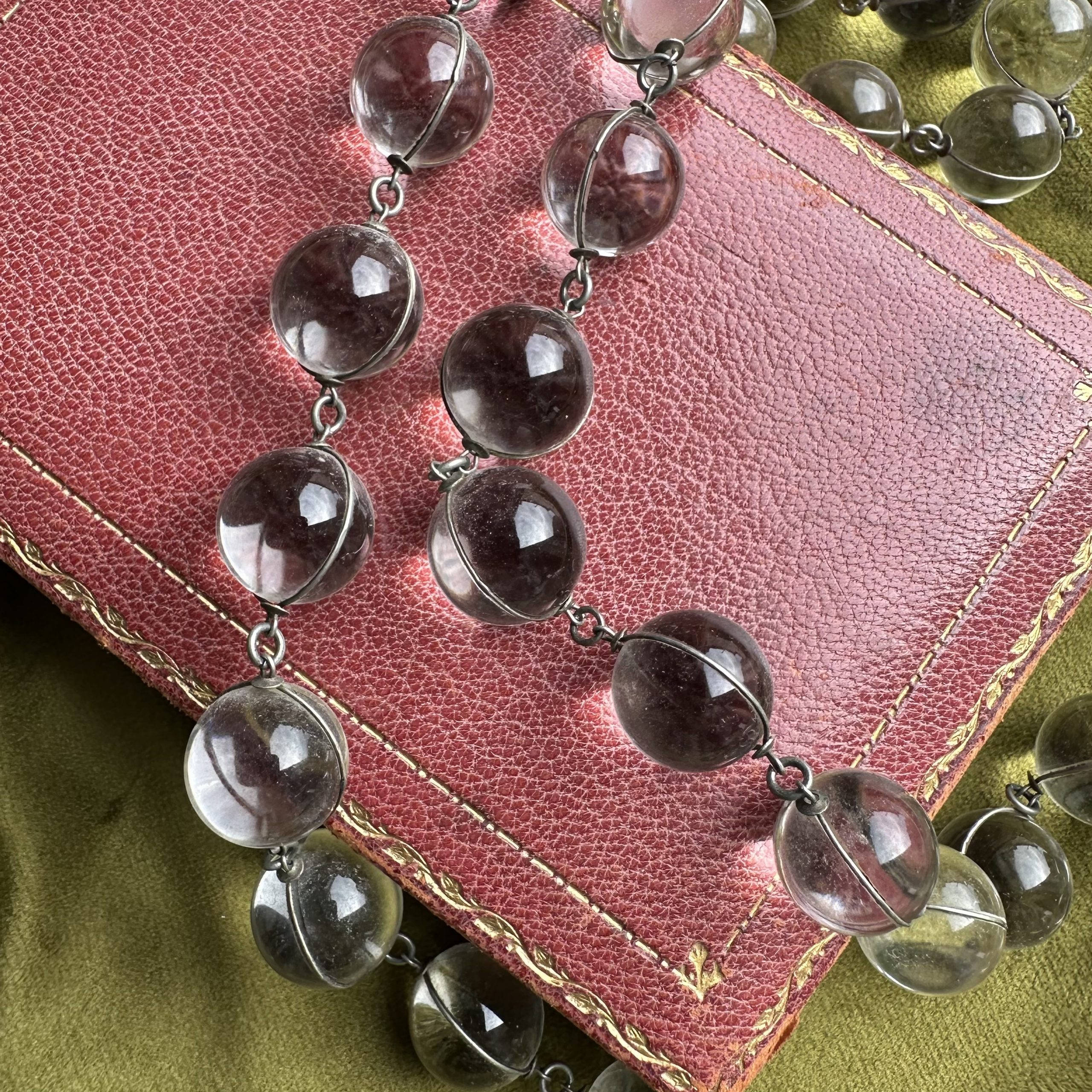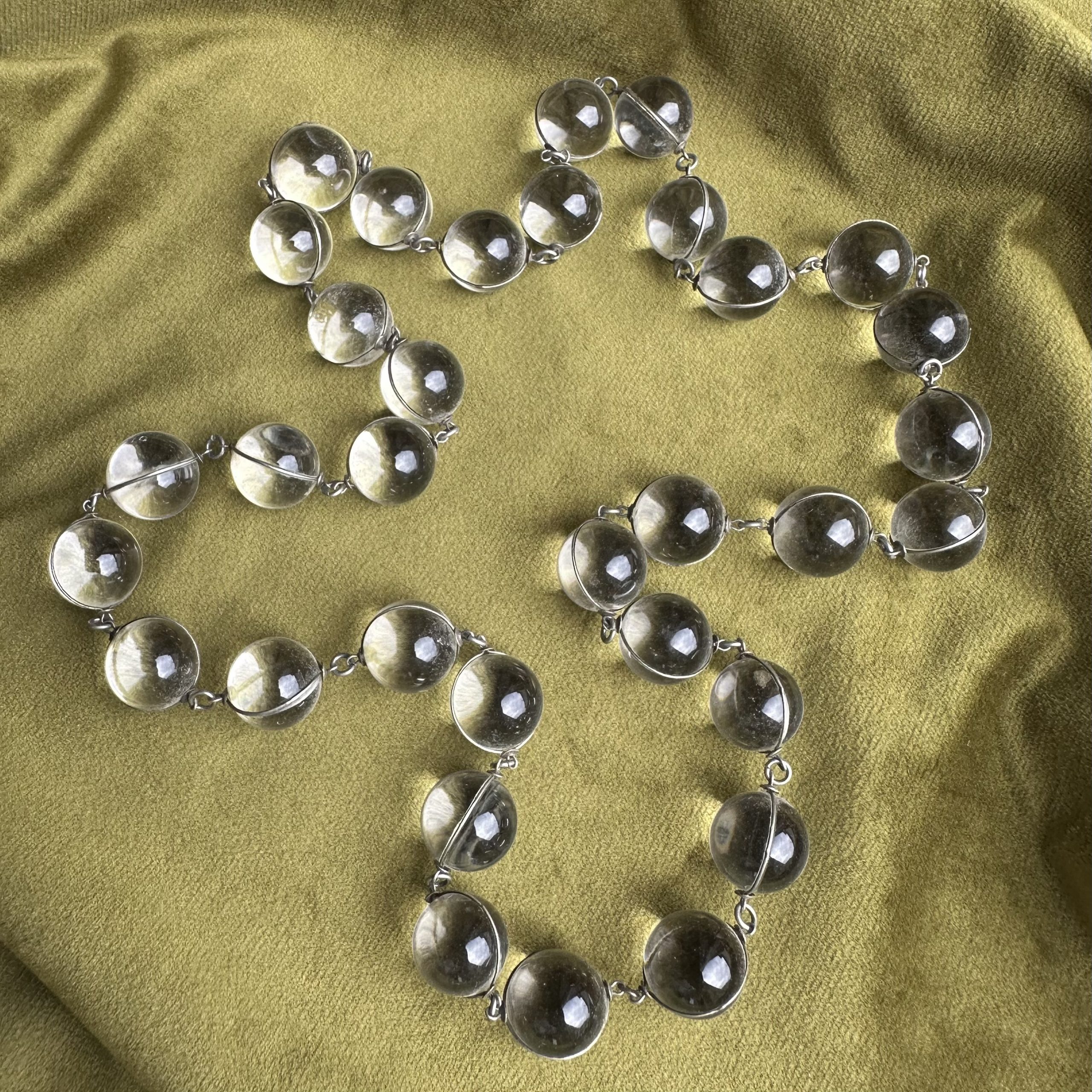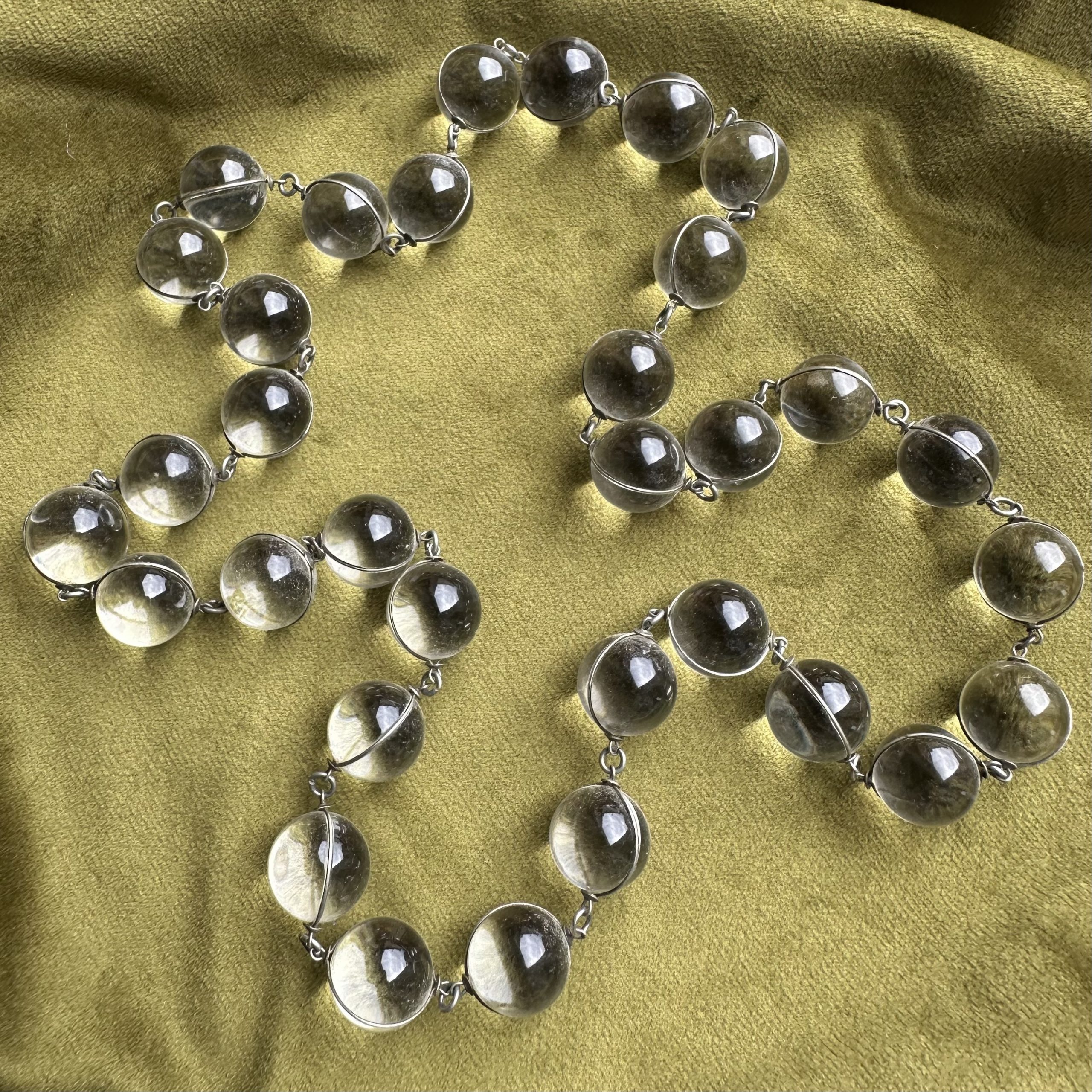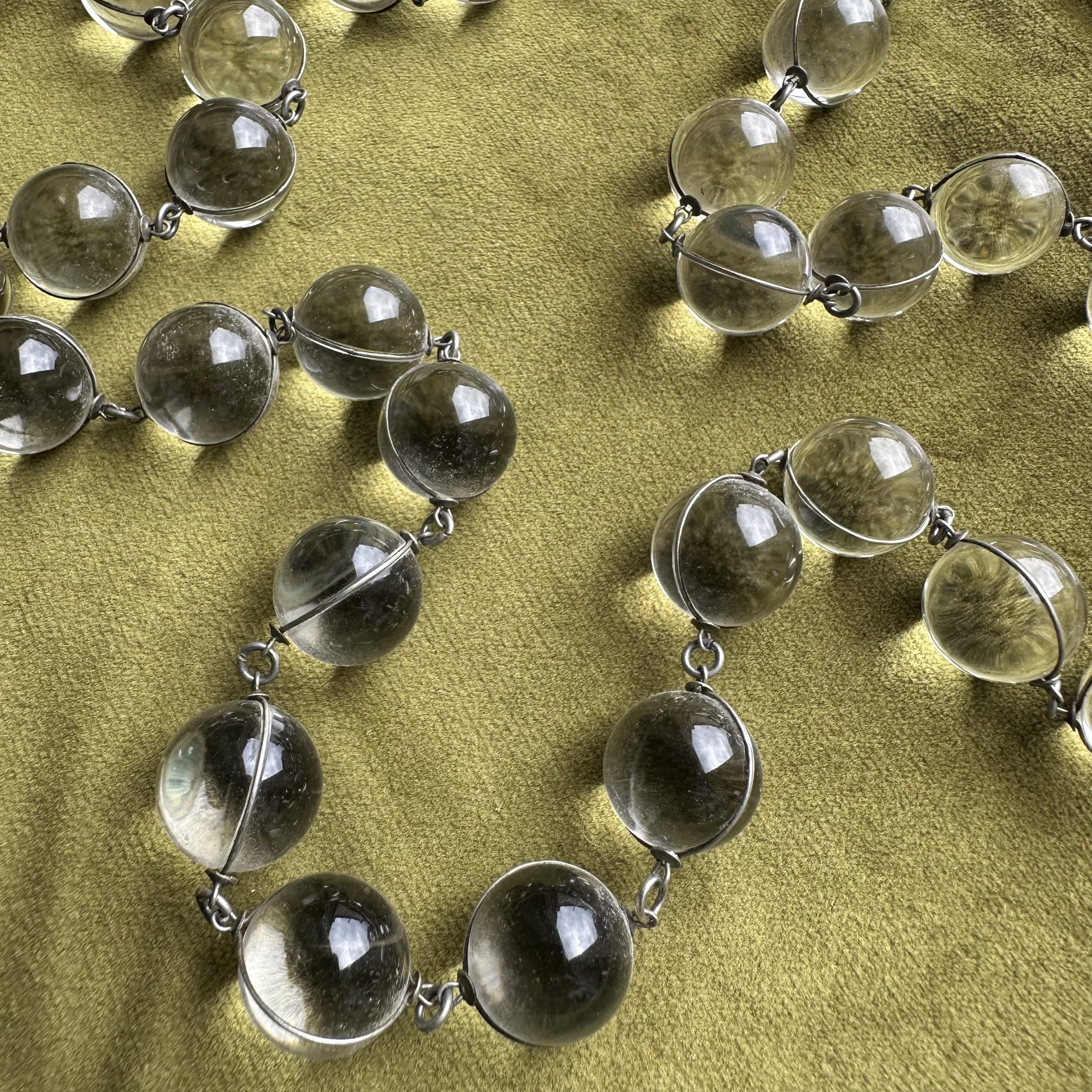 An exceptional over the head necklace formed from rock crystal orbs wrapped in silver wire