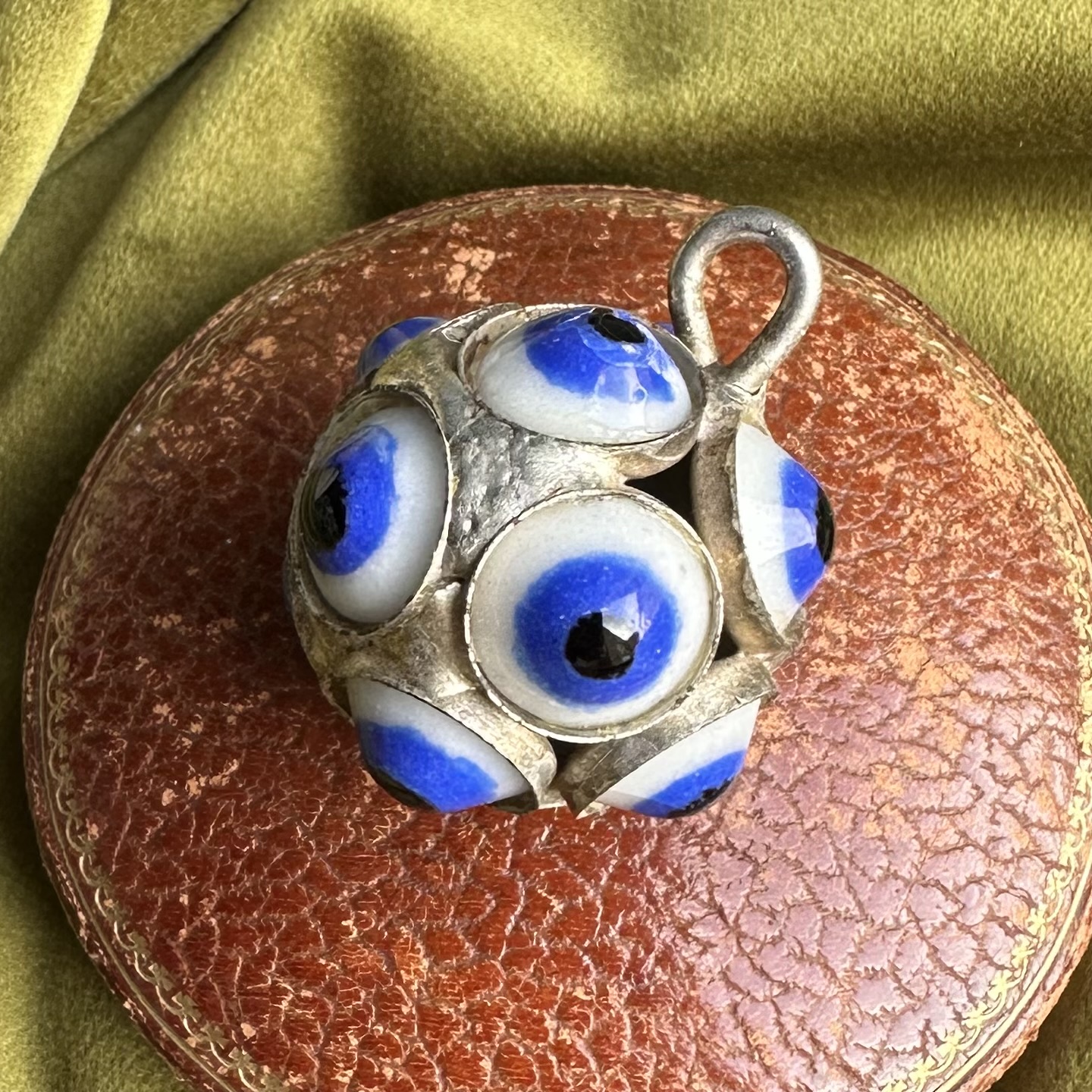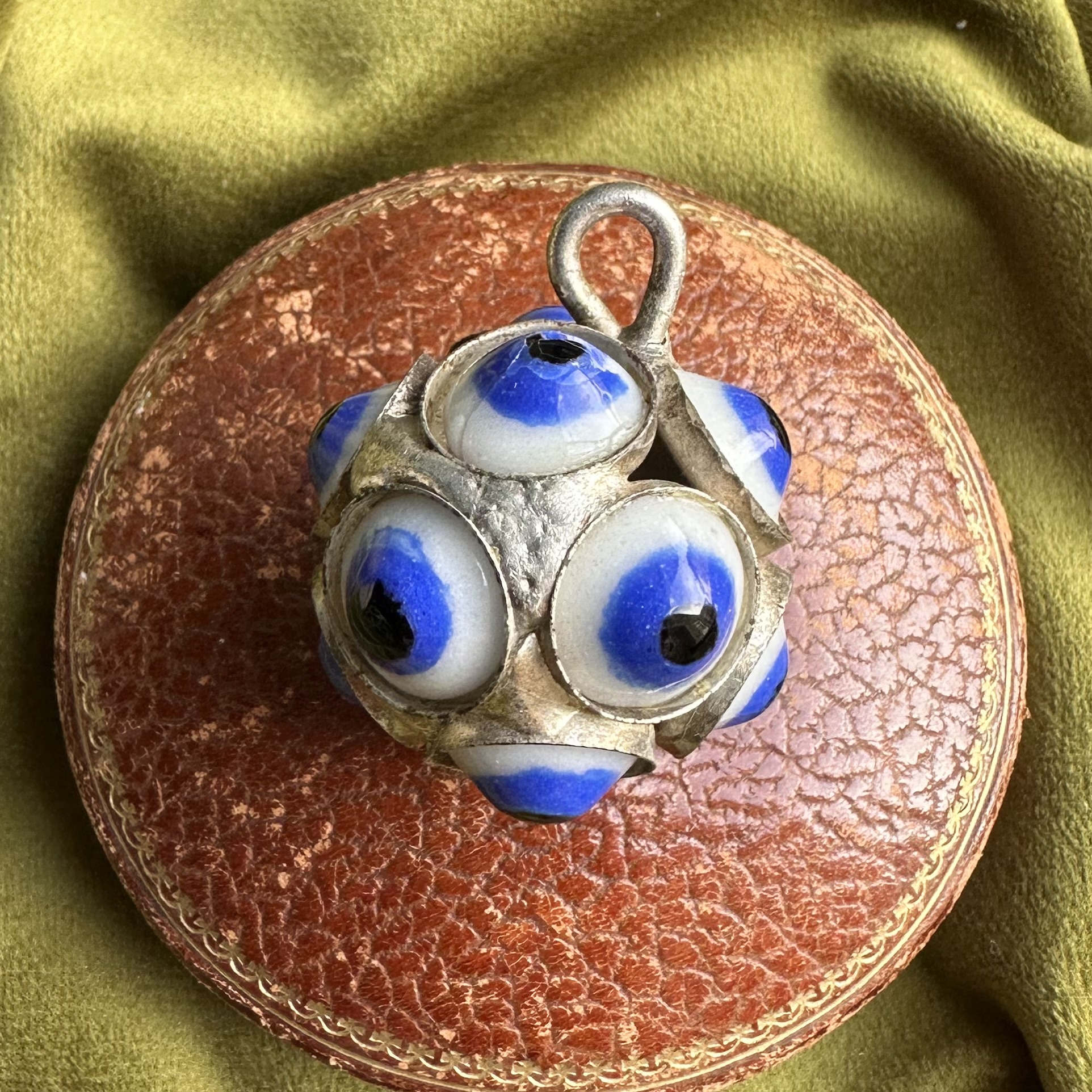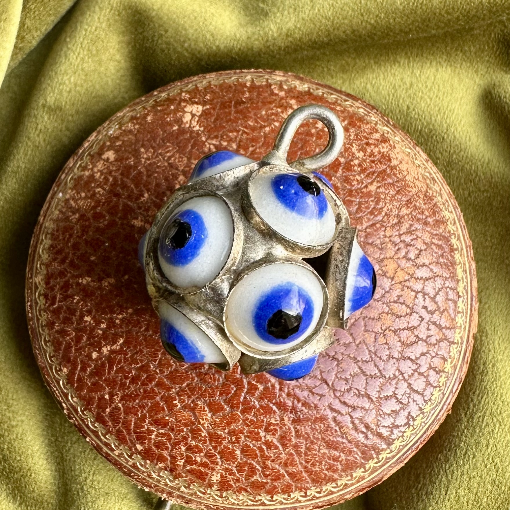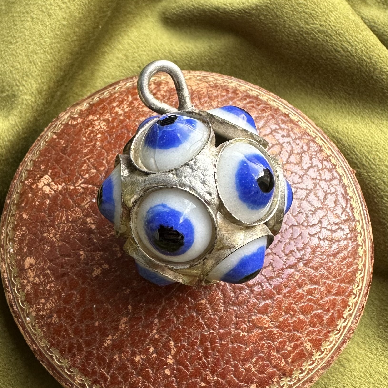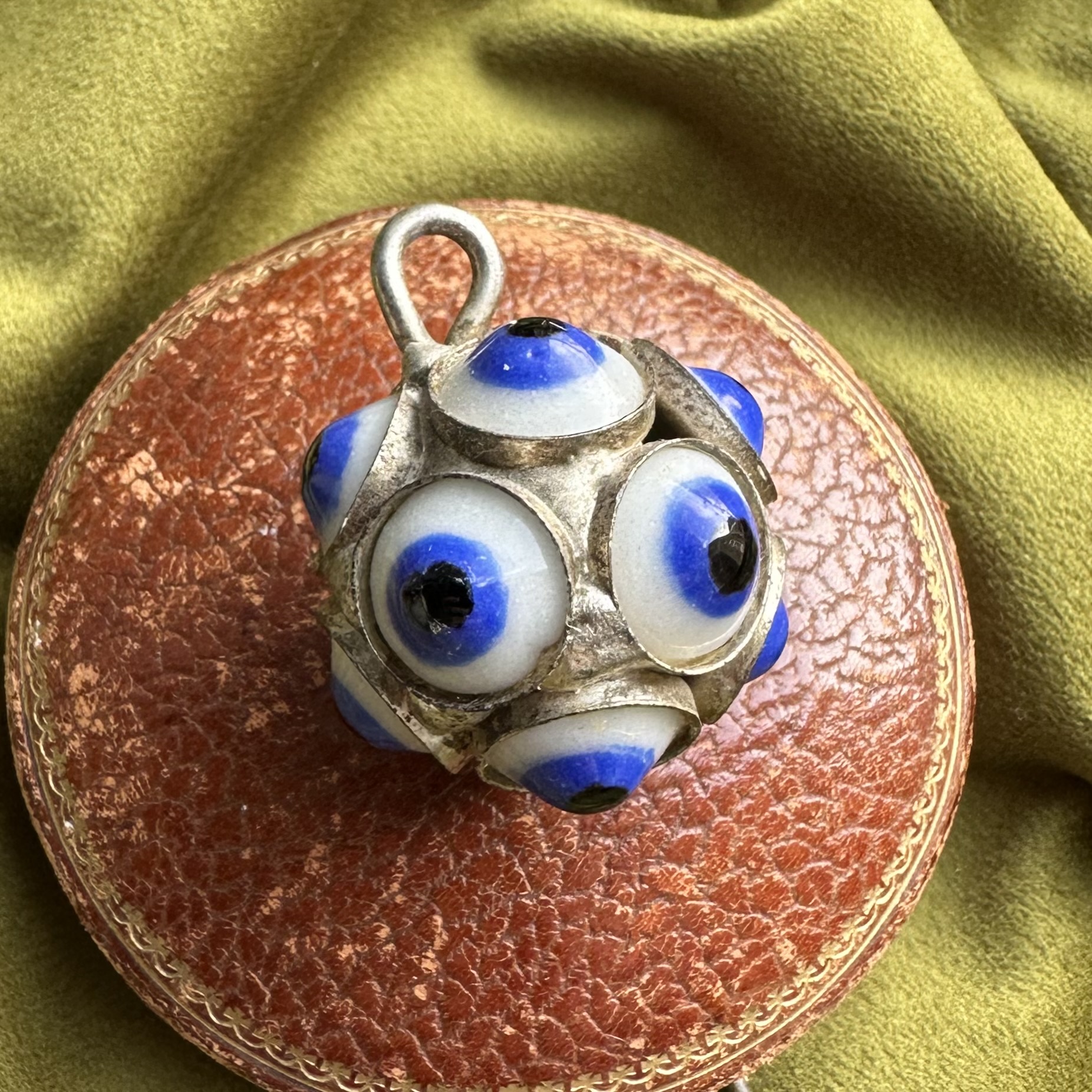 A statement vintage orb pendant, adorned from every angle with twelve evil eyes for times when you need extra protection!