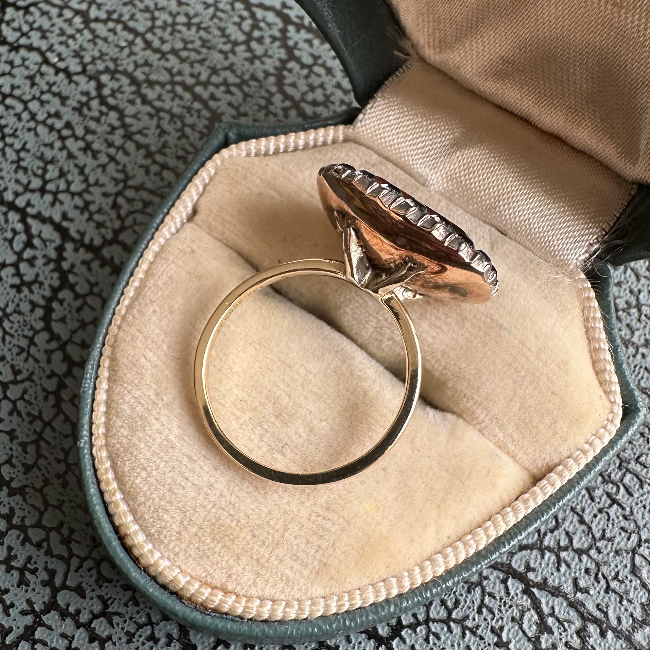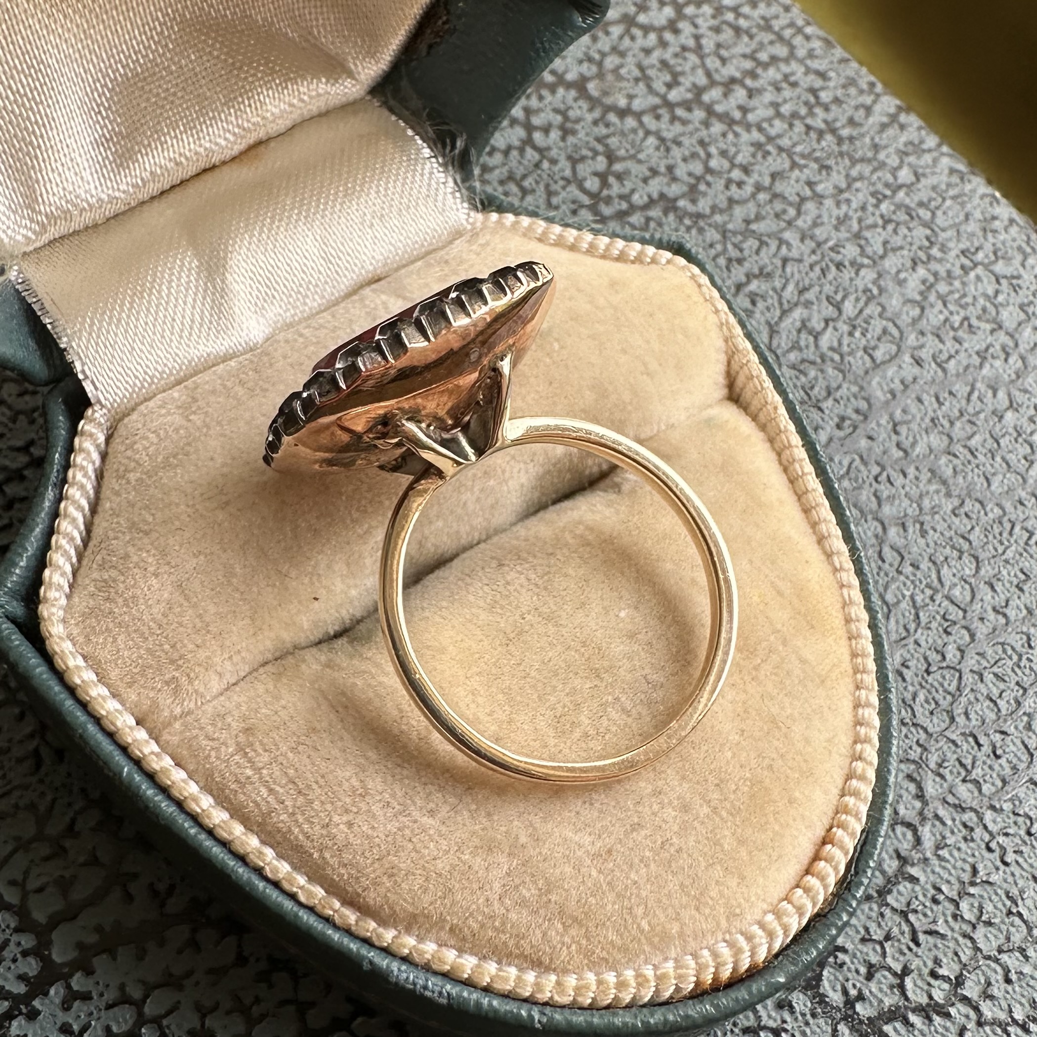 The Georgian component is silver topped 9ct gold, while the shank is 14ct yellow gold