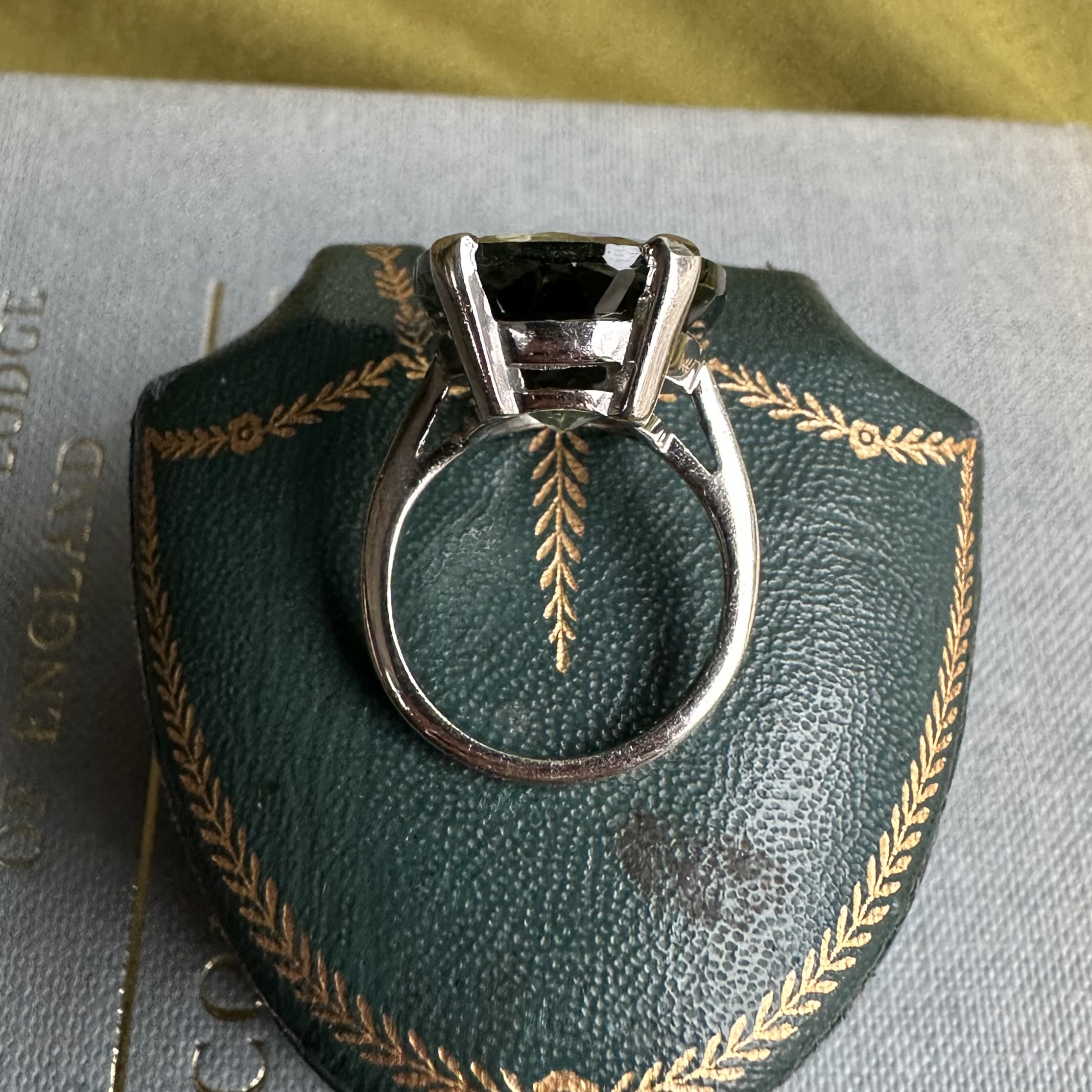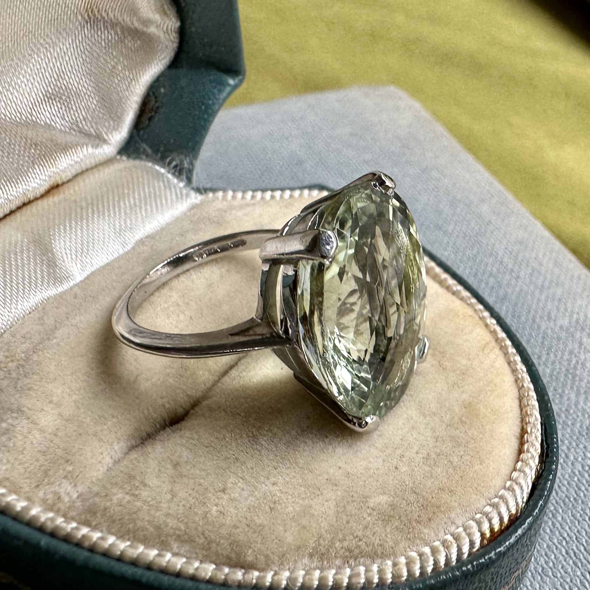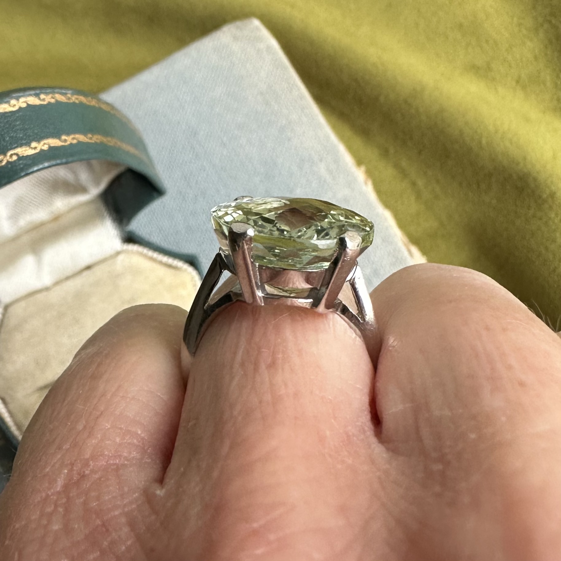 A contemporary large oval chequerboard cut mint green amethyst cocktail ring.