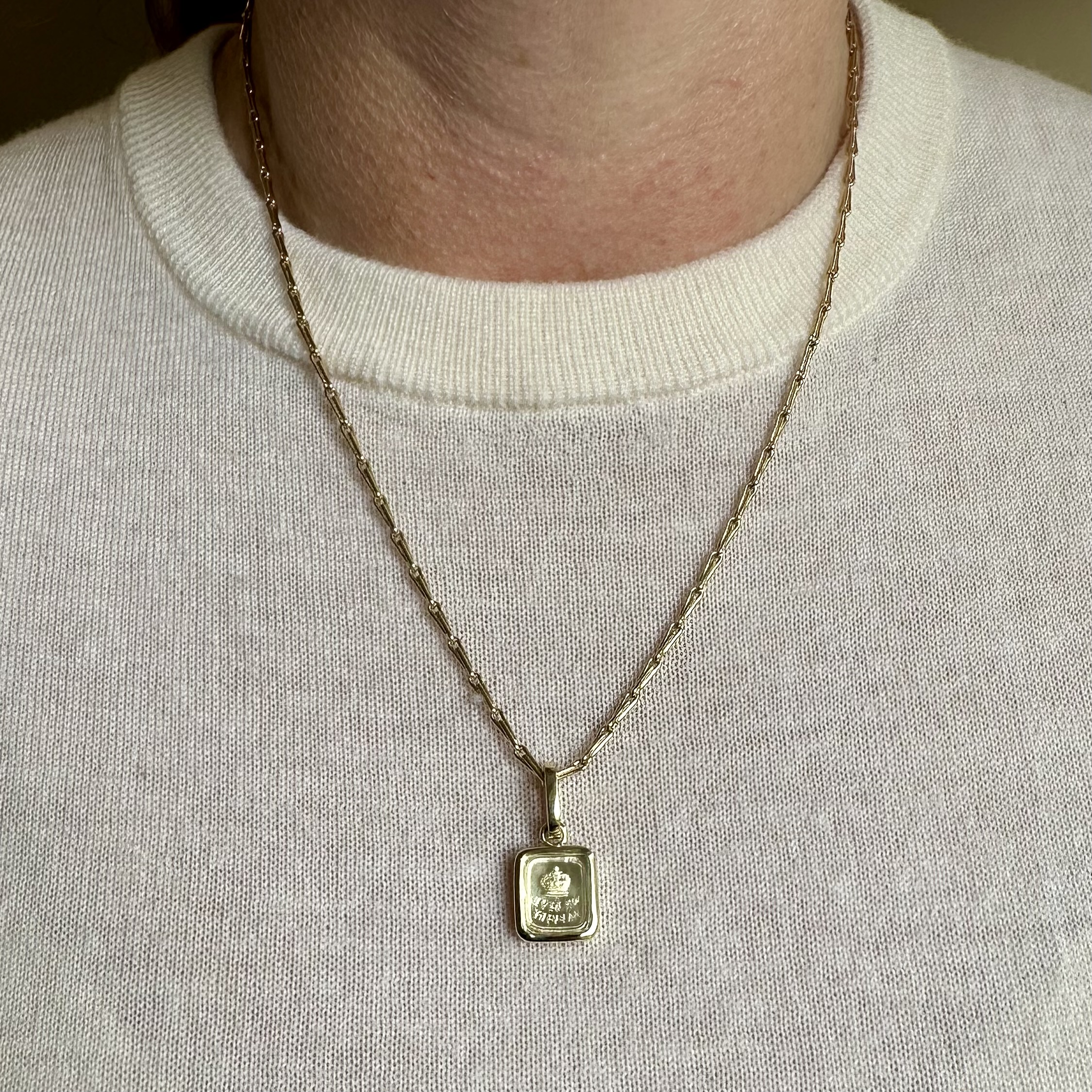 Generously set in recycled 14ct yellow gold as our Closed Back Classic Pendant complete with a Diddy size fixed bail to accommodate most chain sizes