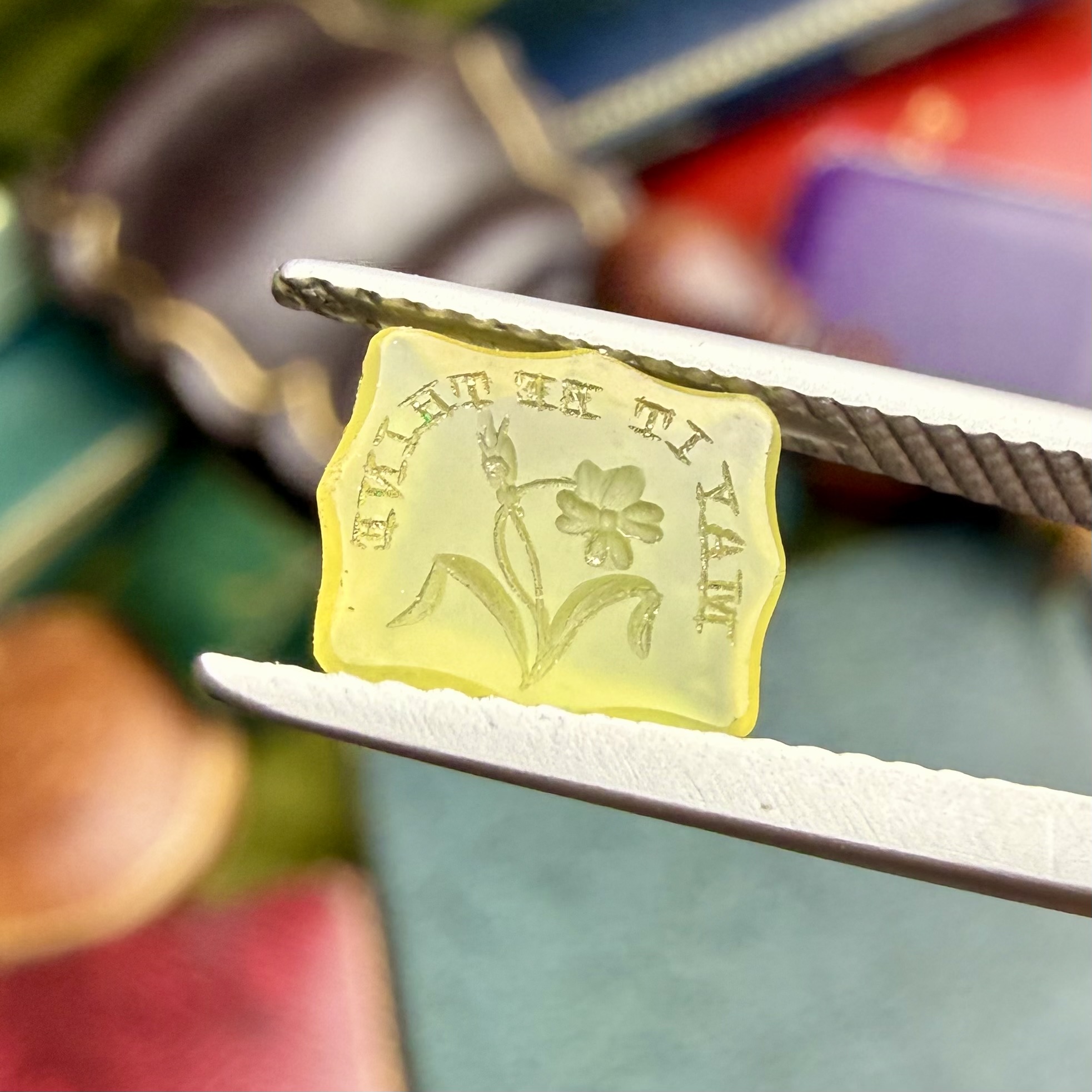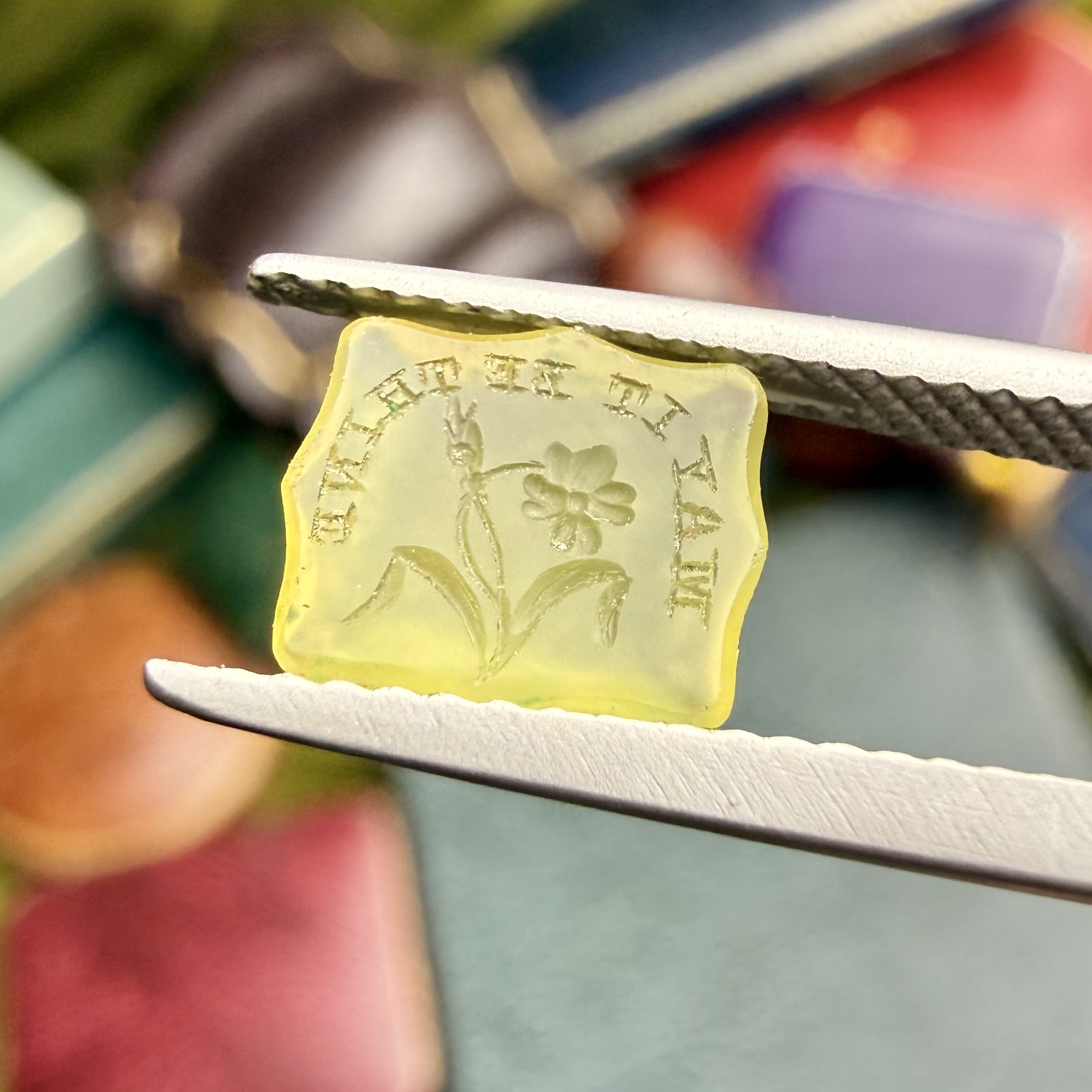 These yellow/chartreuse chalcedony intaglios do not come around very often and are so special and individual