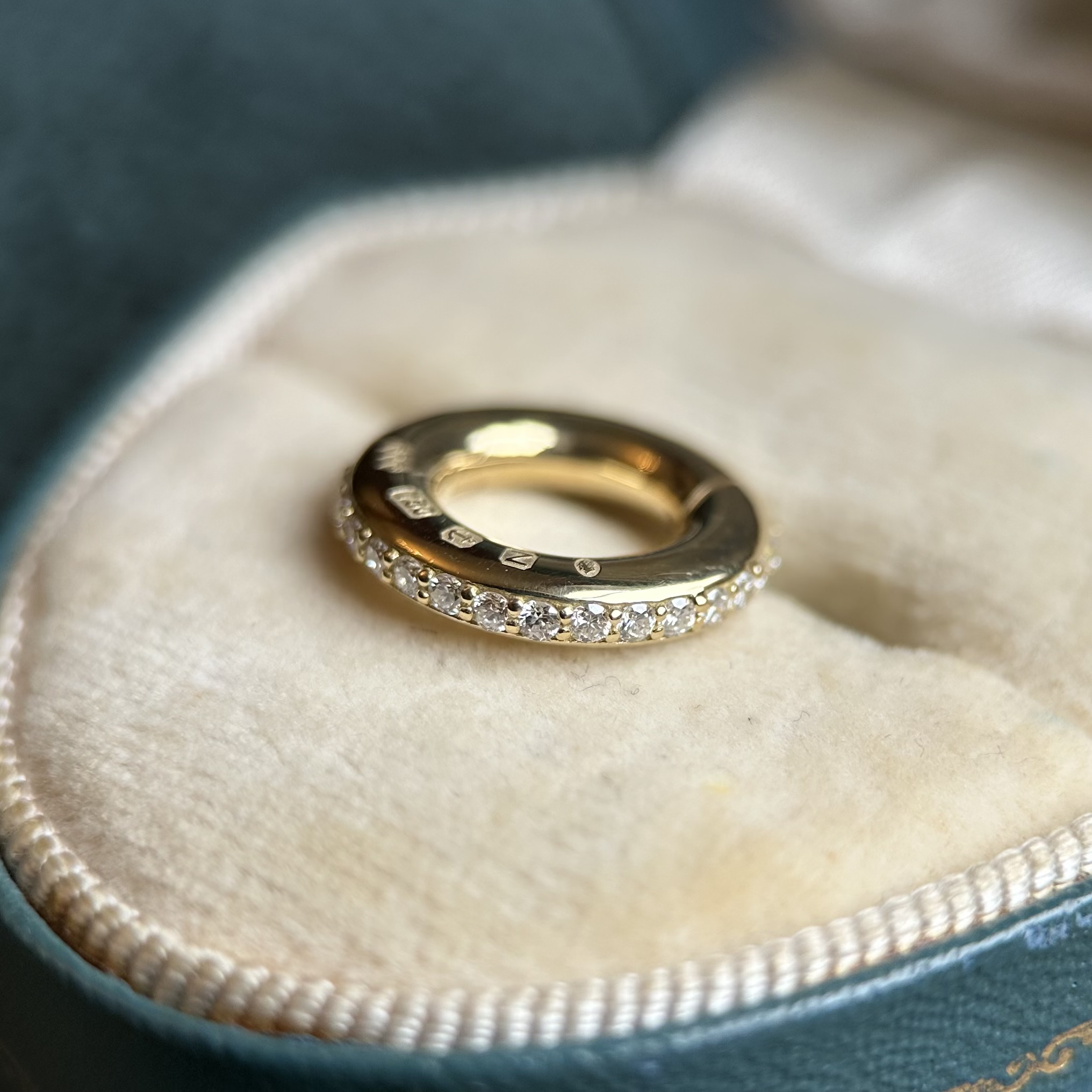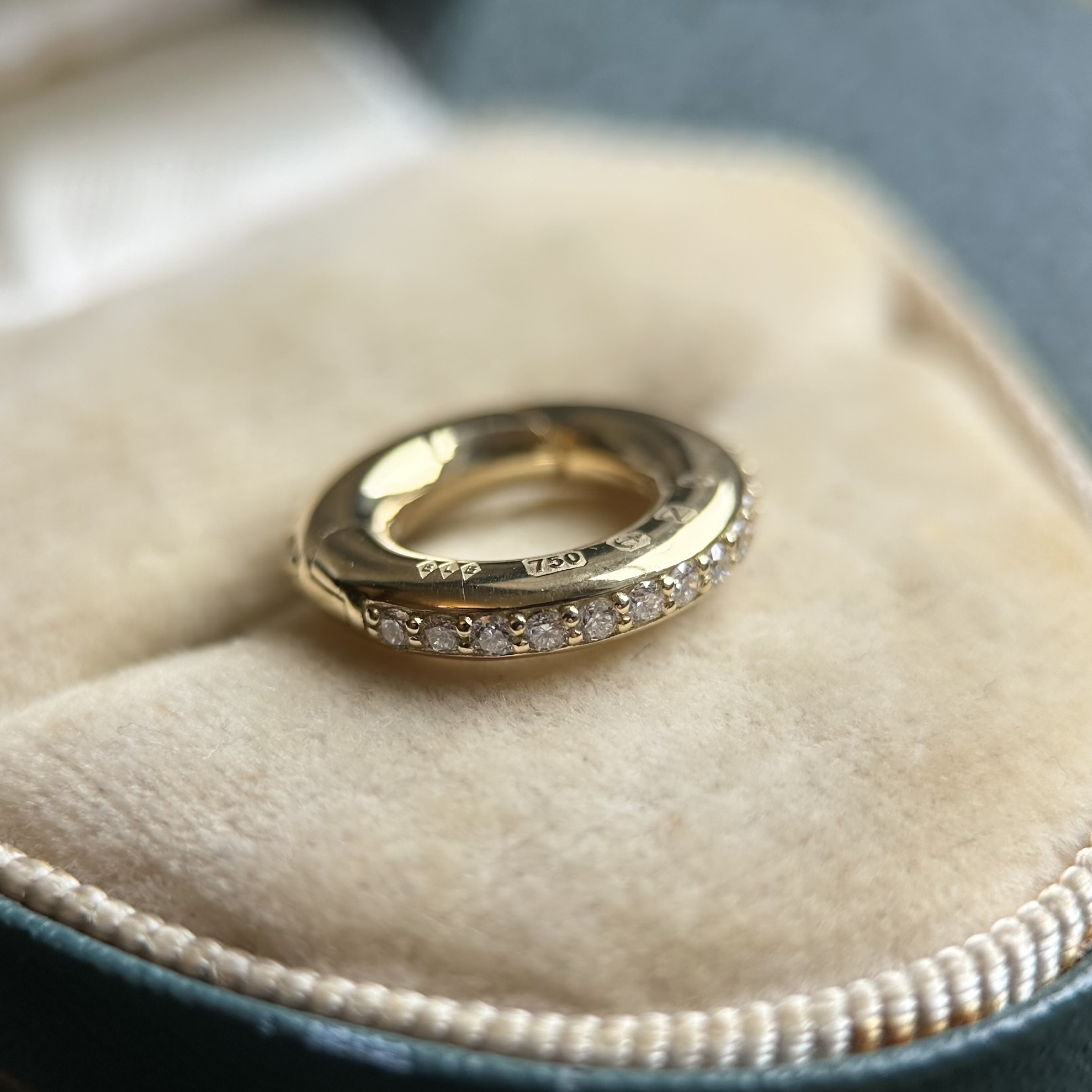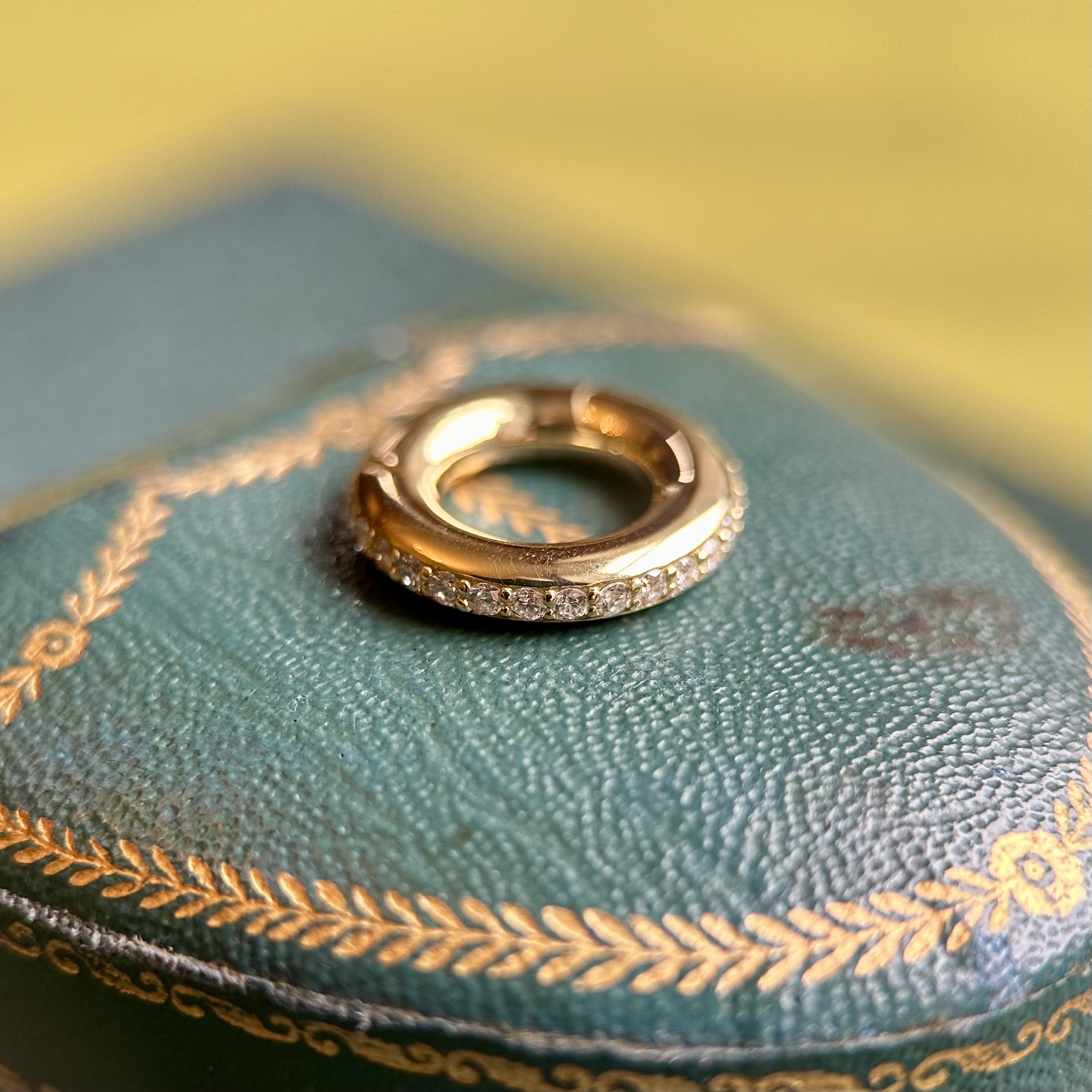 A solid gold diamond eternity donut clip bail which will happily carry a heavy pendant on it.