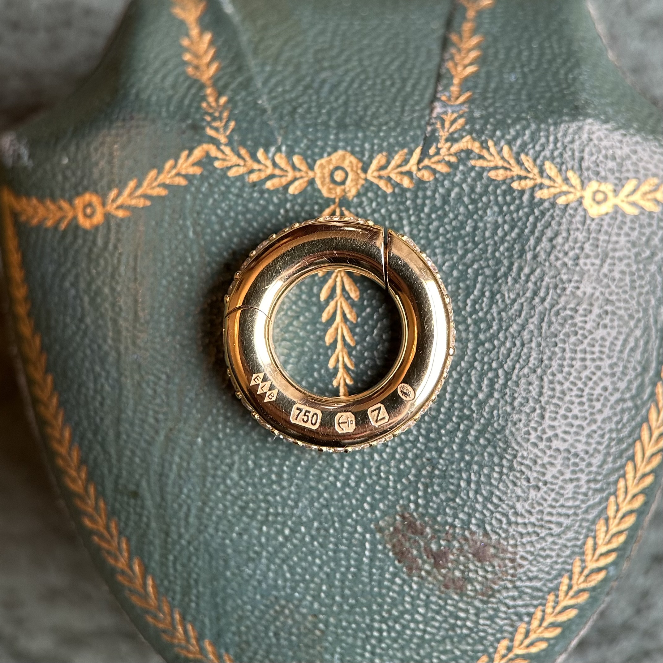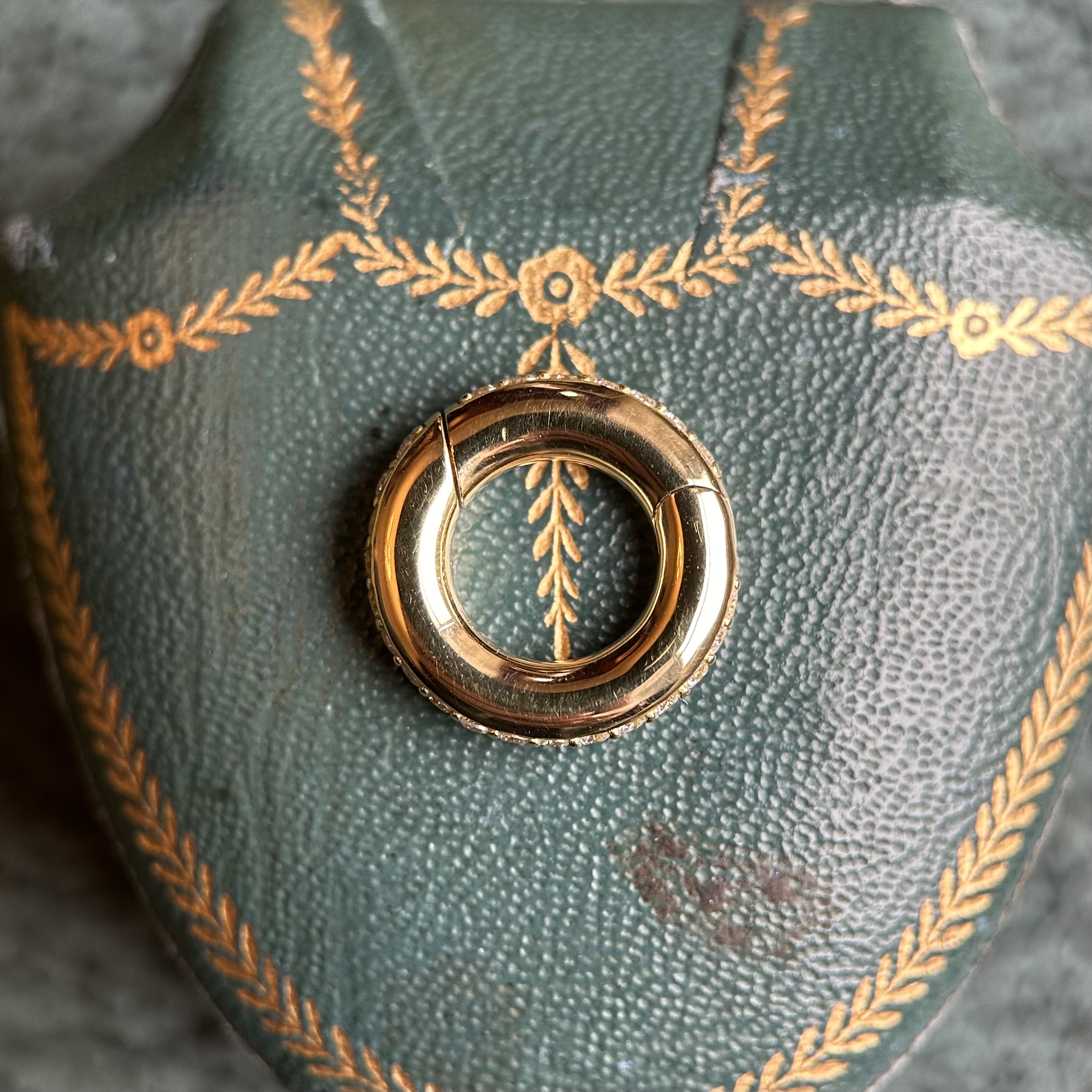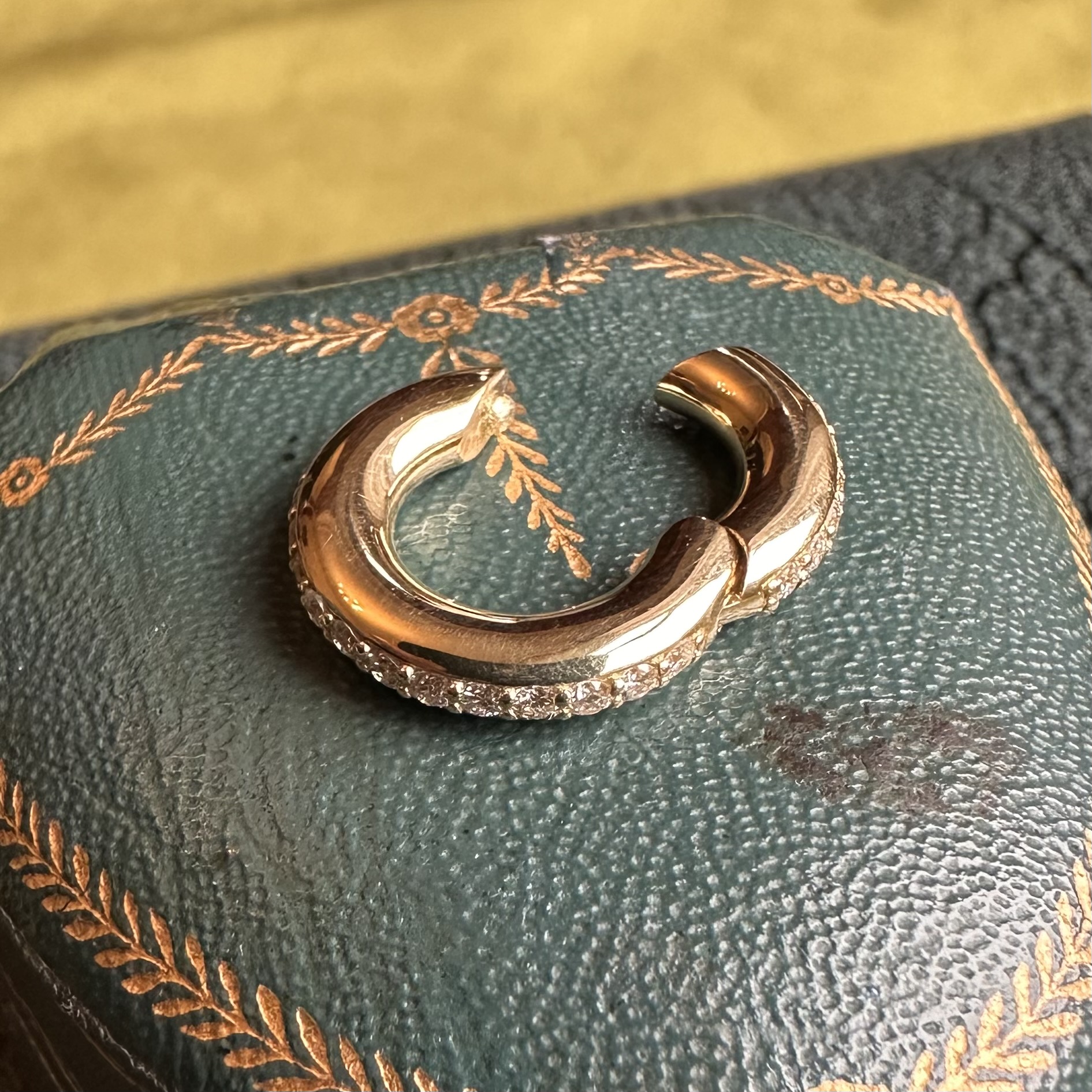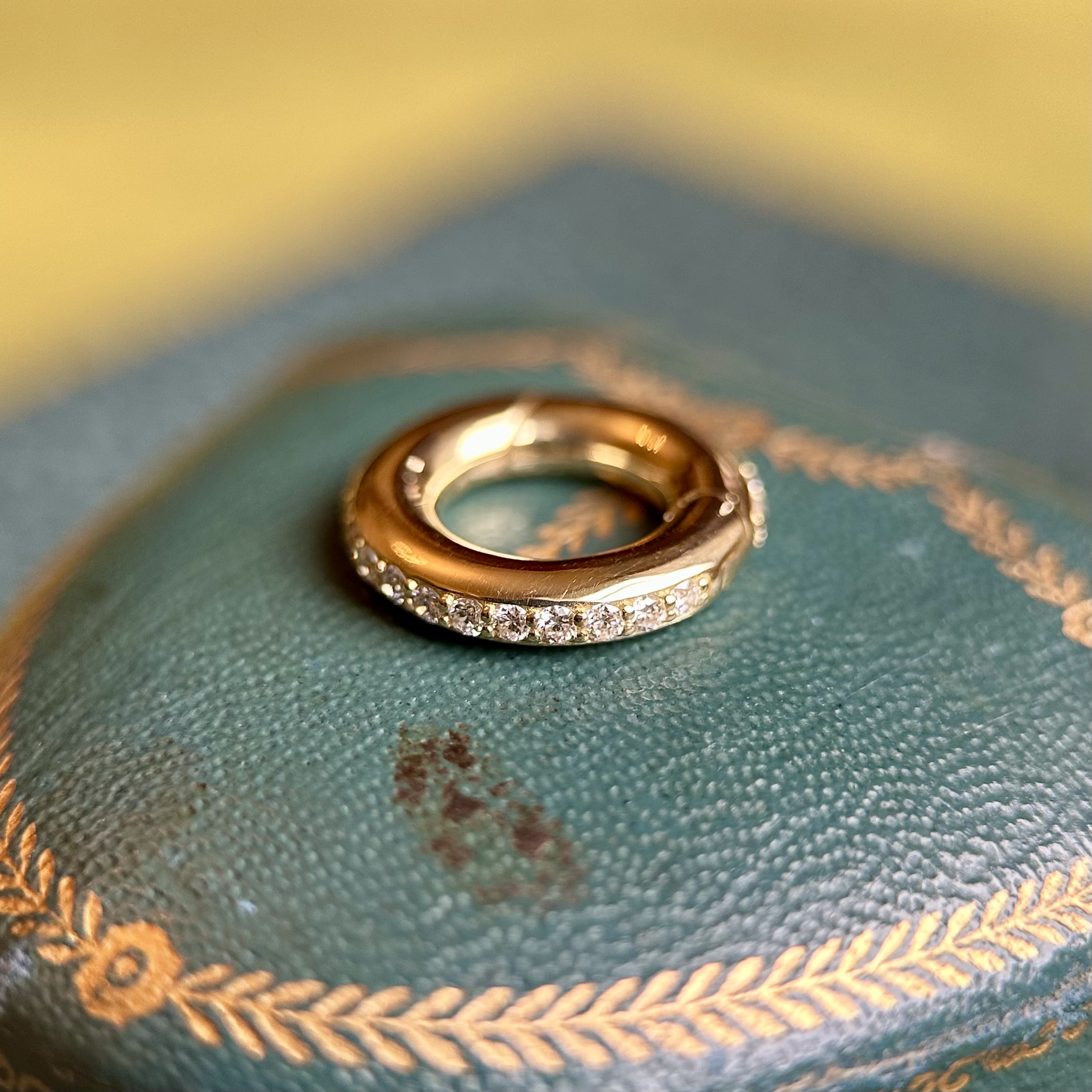 A solid gold diamond eternity donut clip bail which will happily carry a heavy pendant on it.
