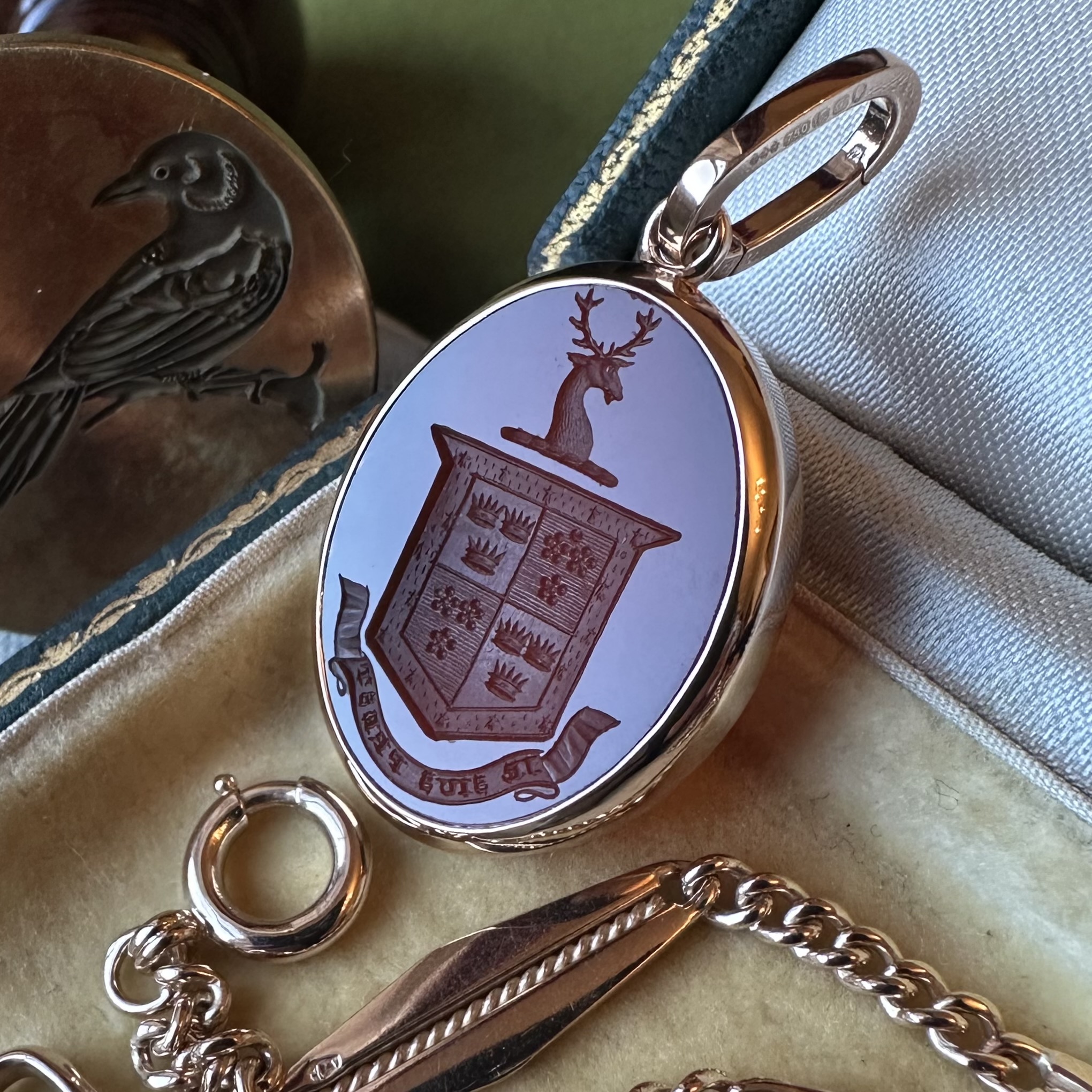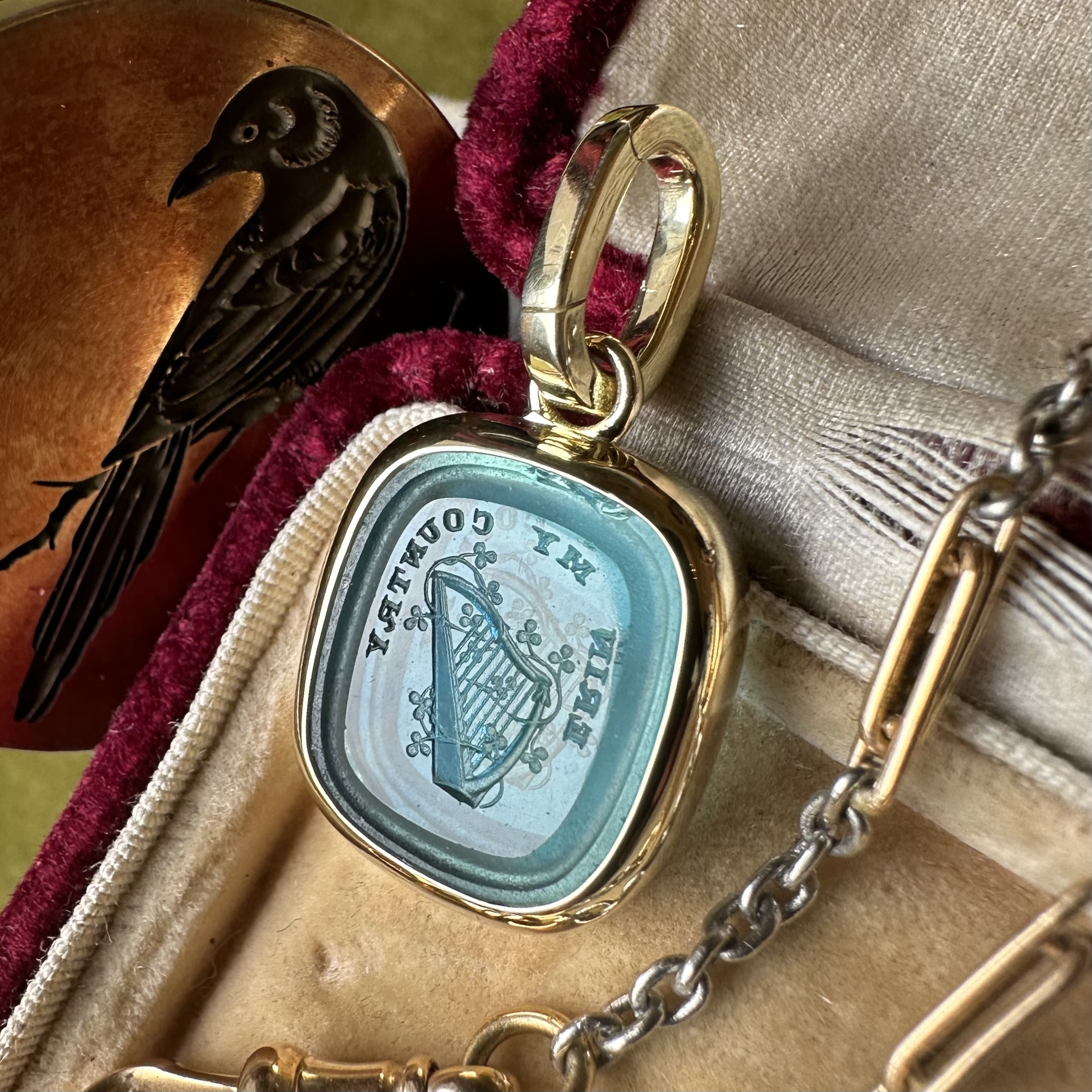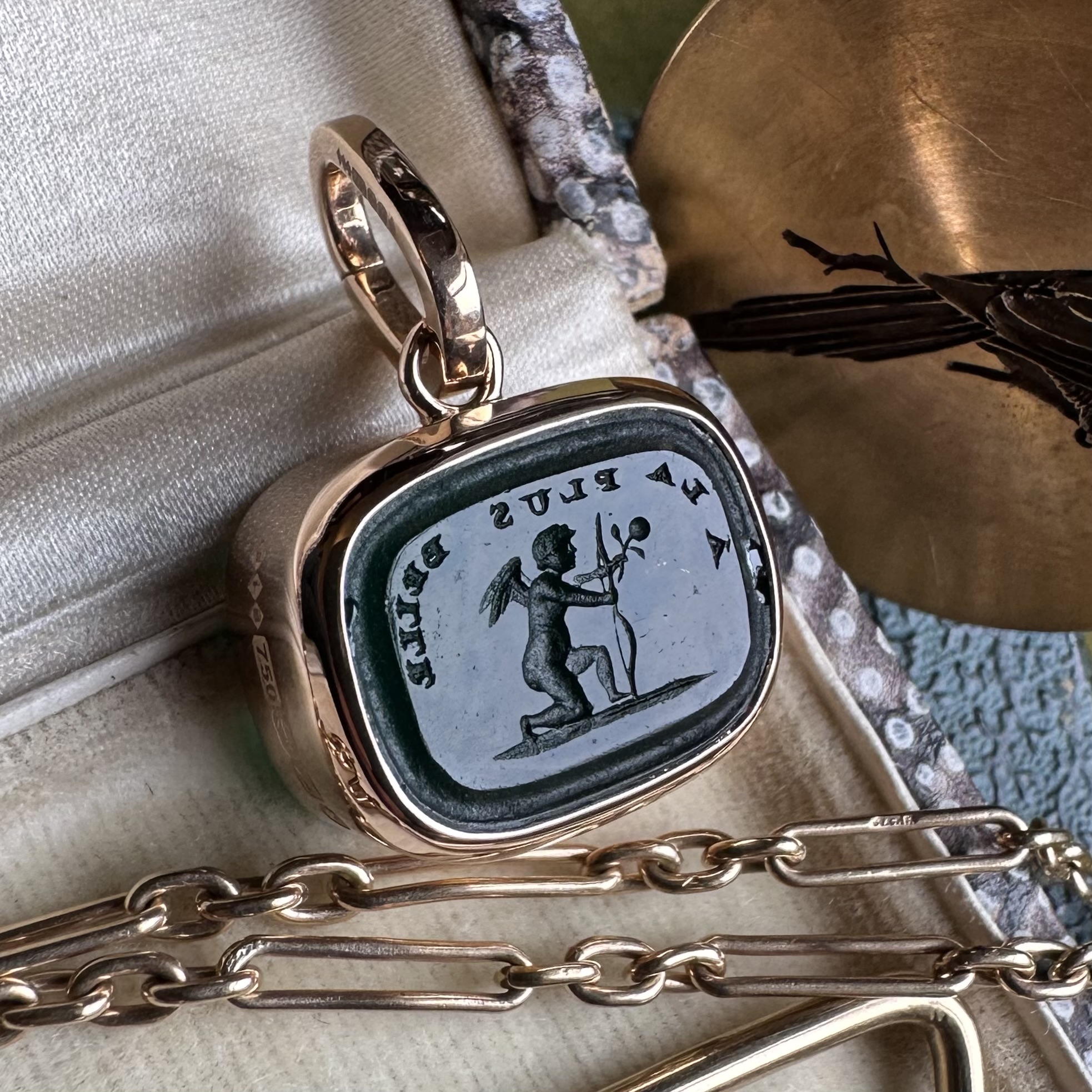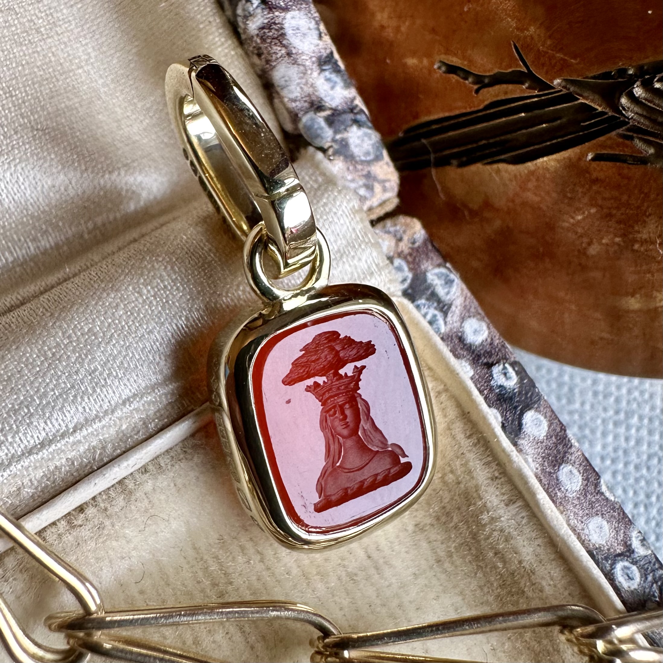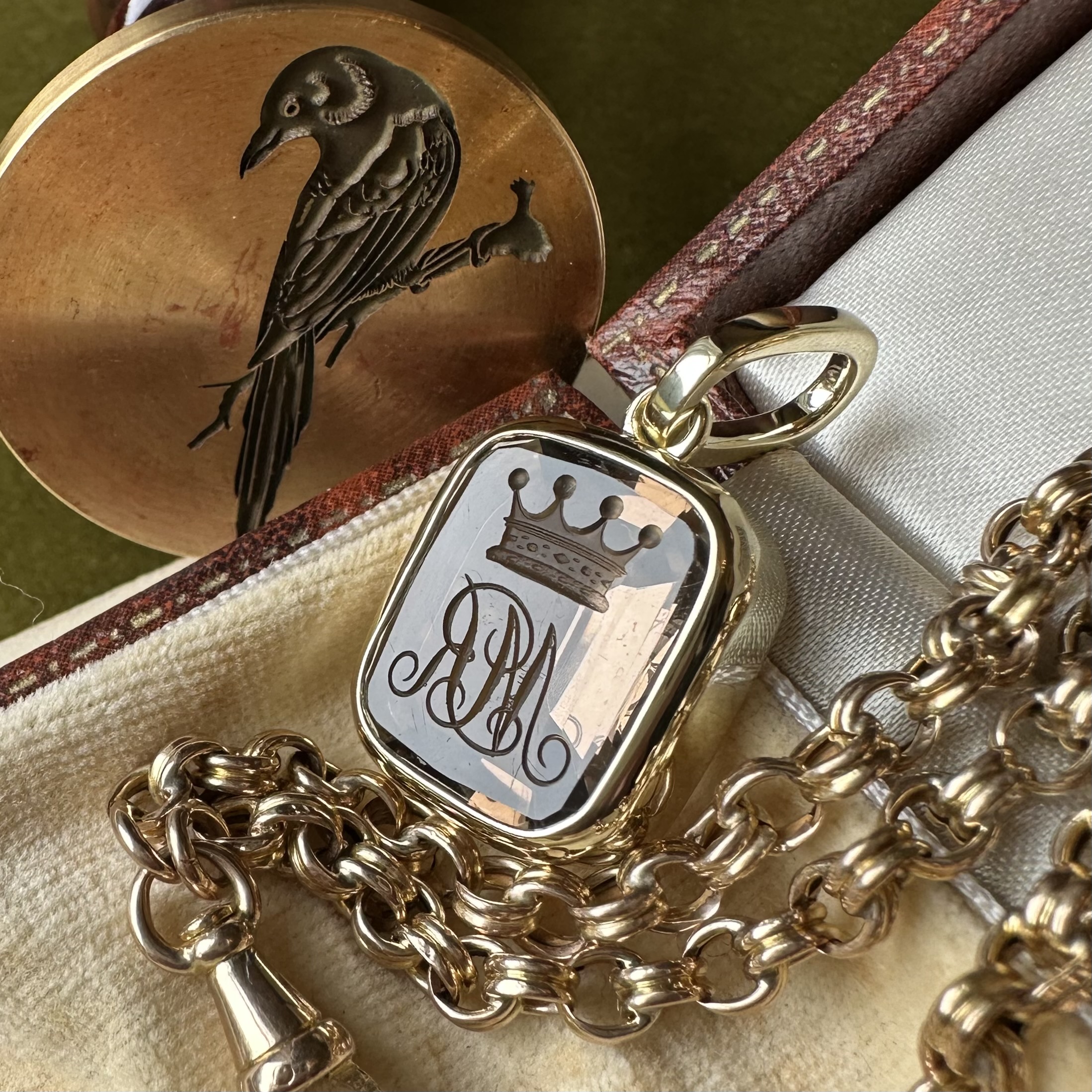 Sleek, understated, with generous amounts of gold or platinum, it beautifully offsets your intaglio, allowing it to be the star of the show.