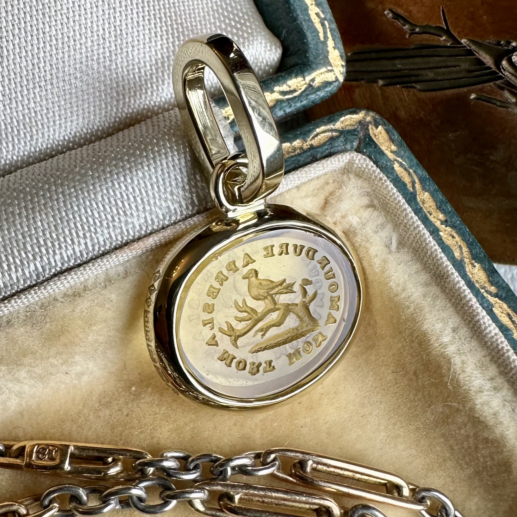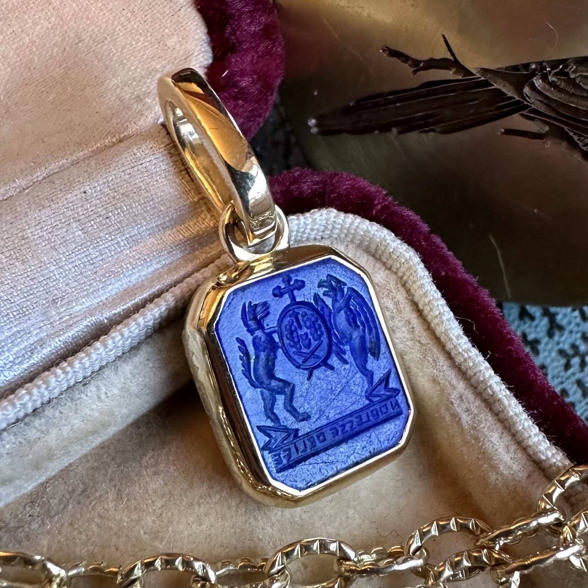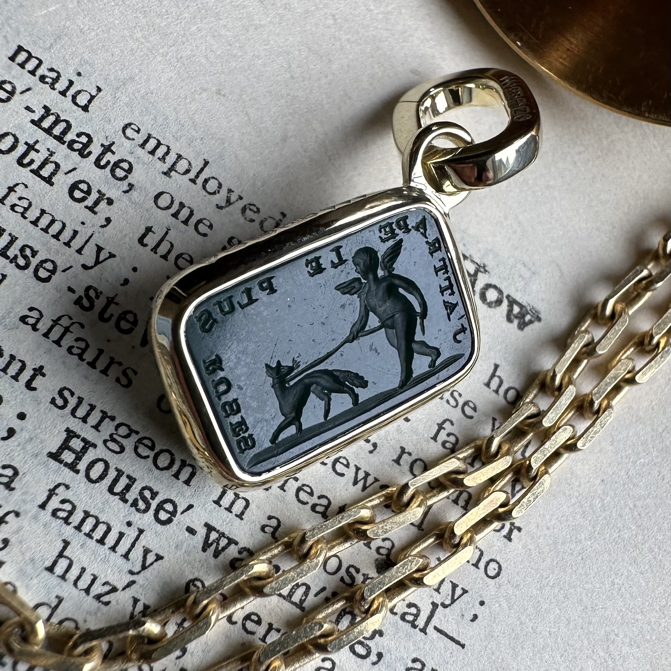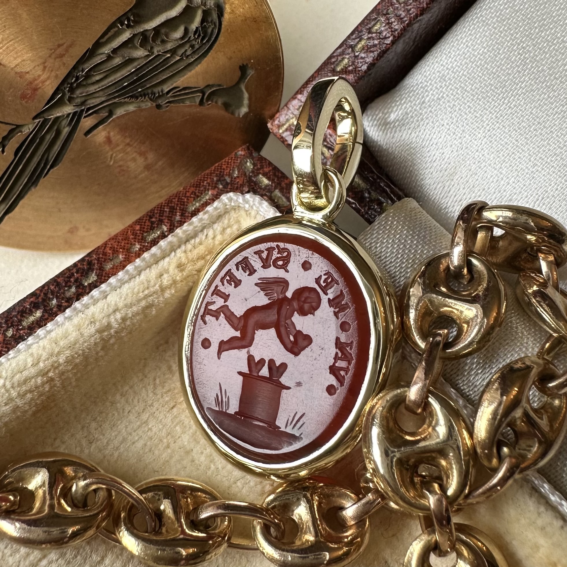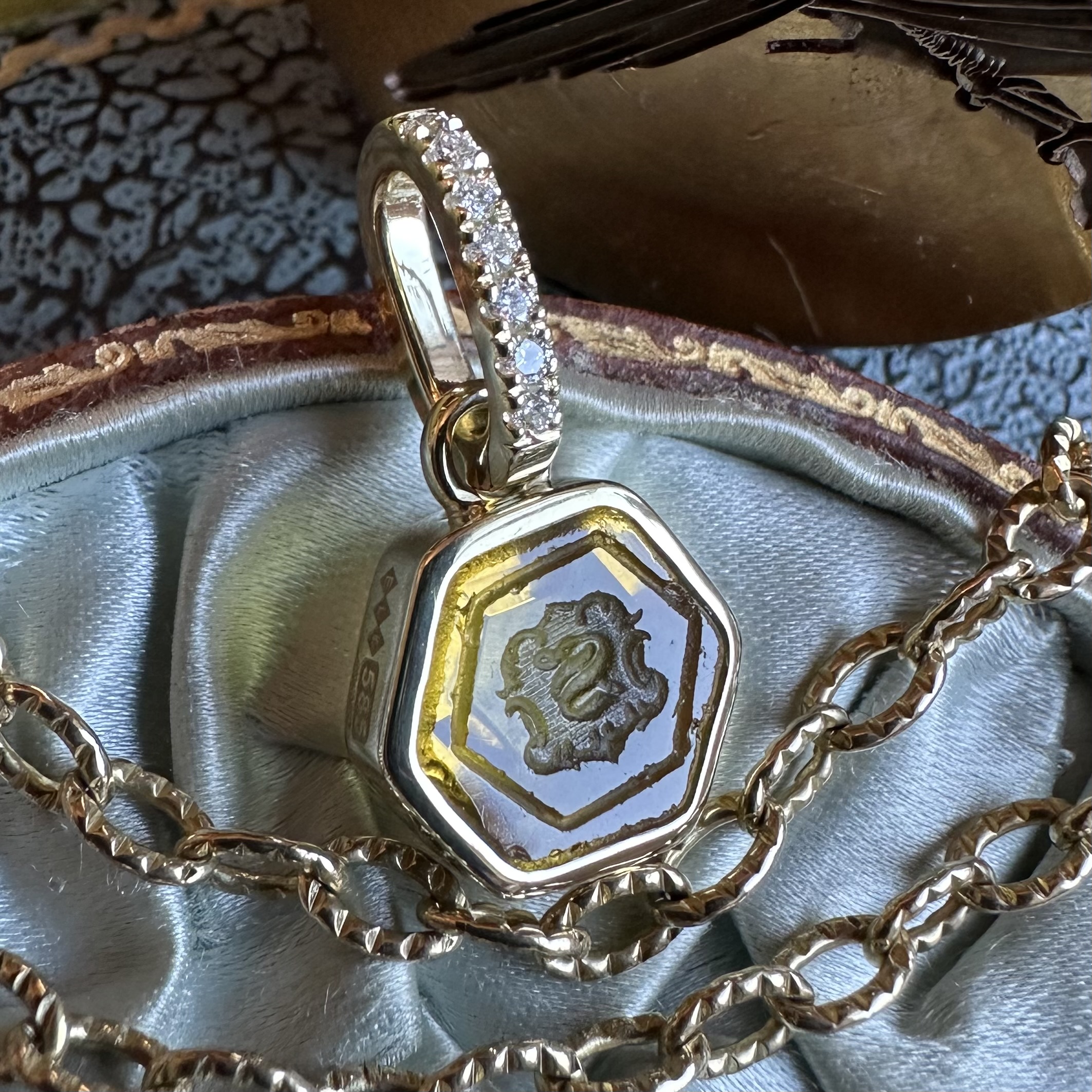 Sleek, understated, with generous amounts of gold or platinum, it beautifully offsets your intaglio, allowing it to be the star of the show.