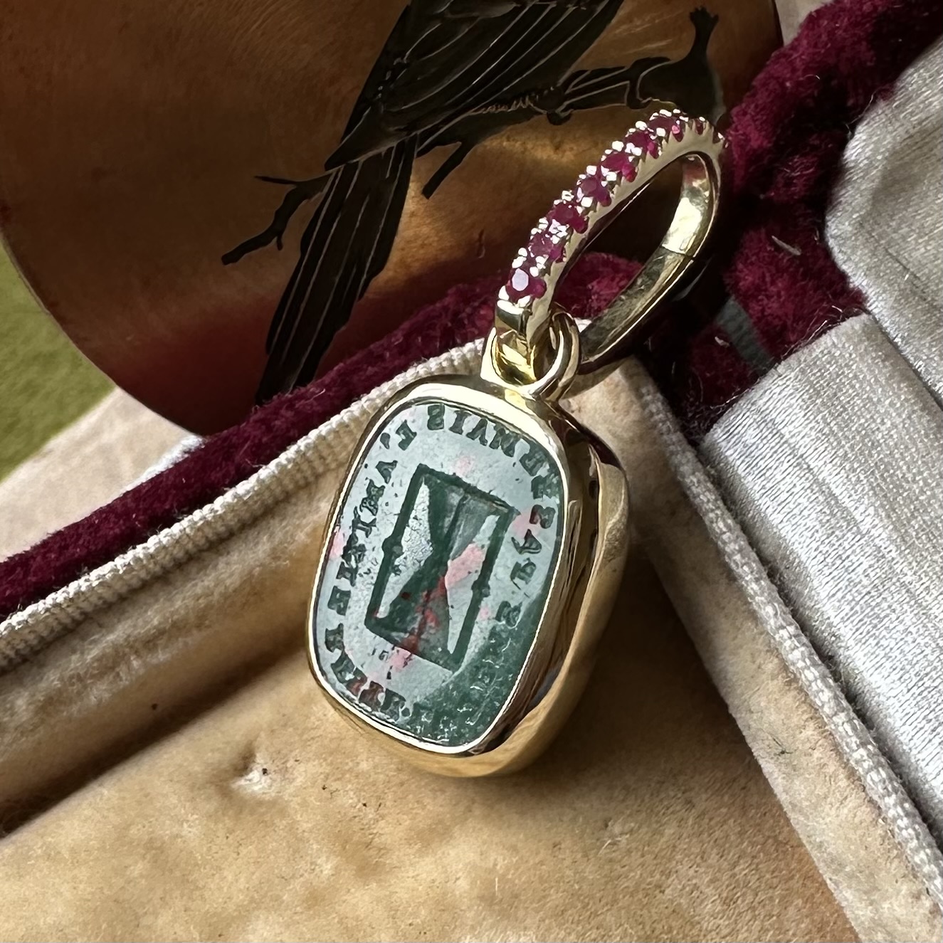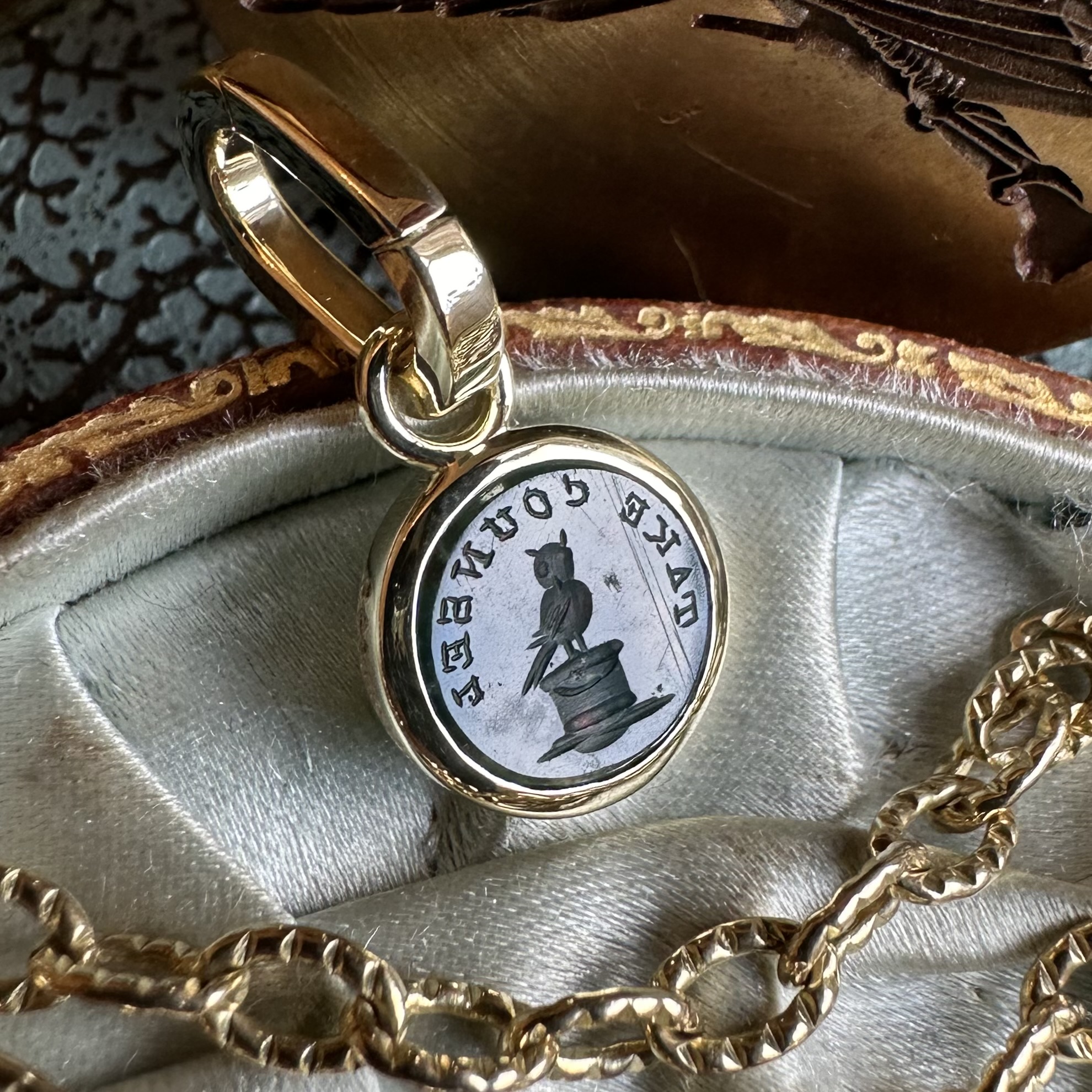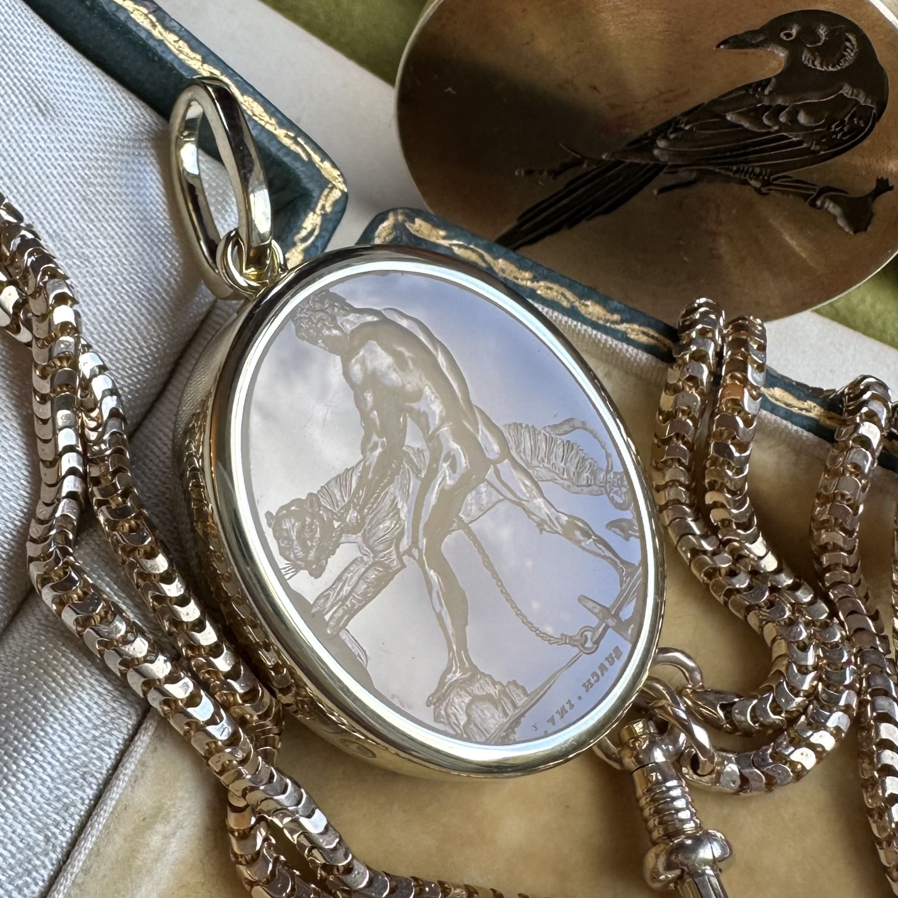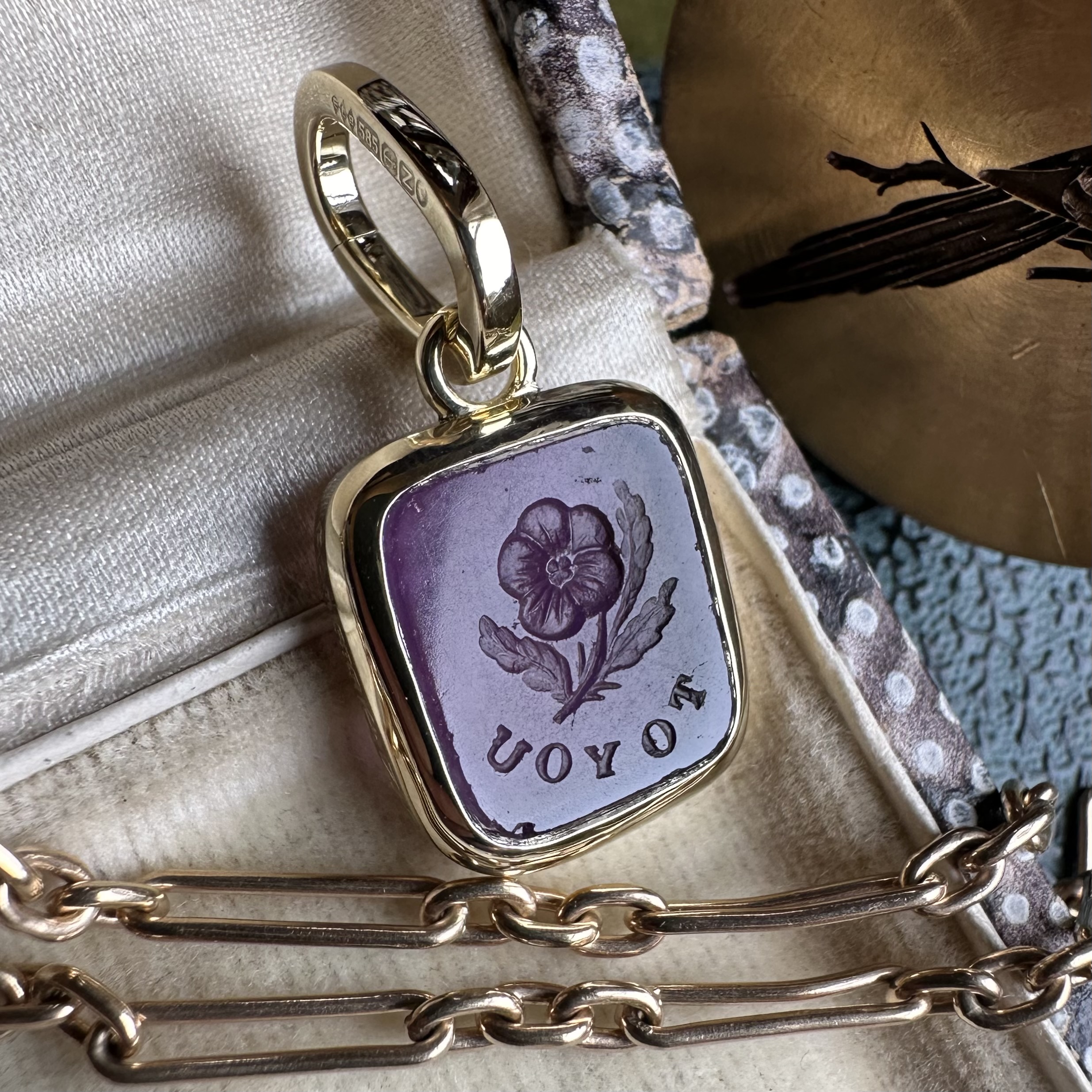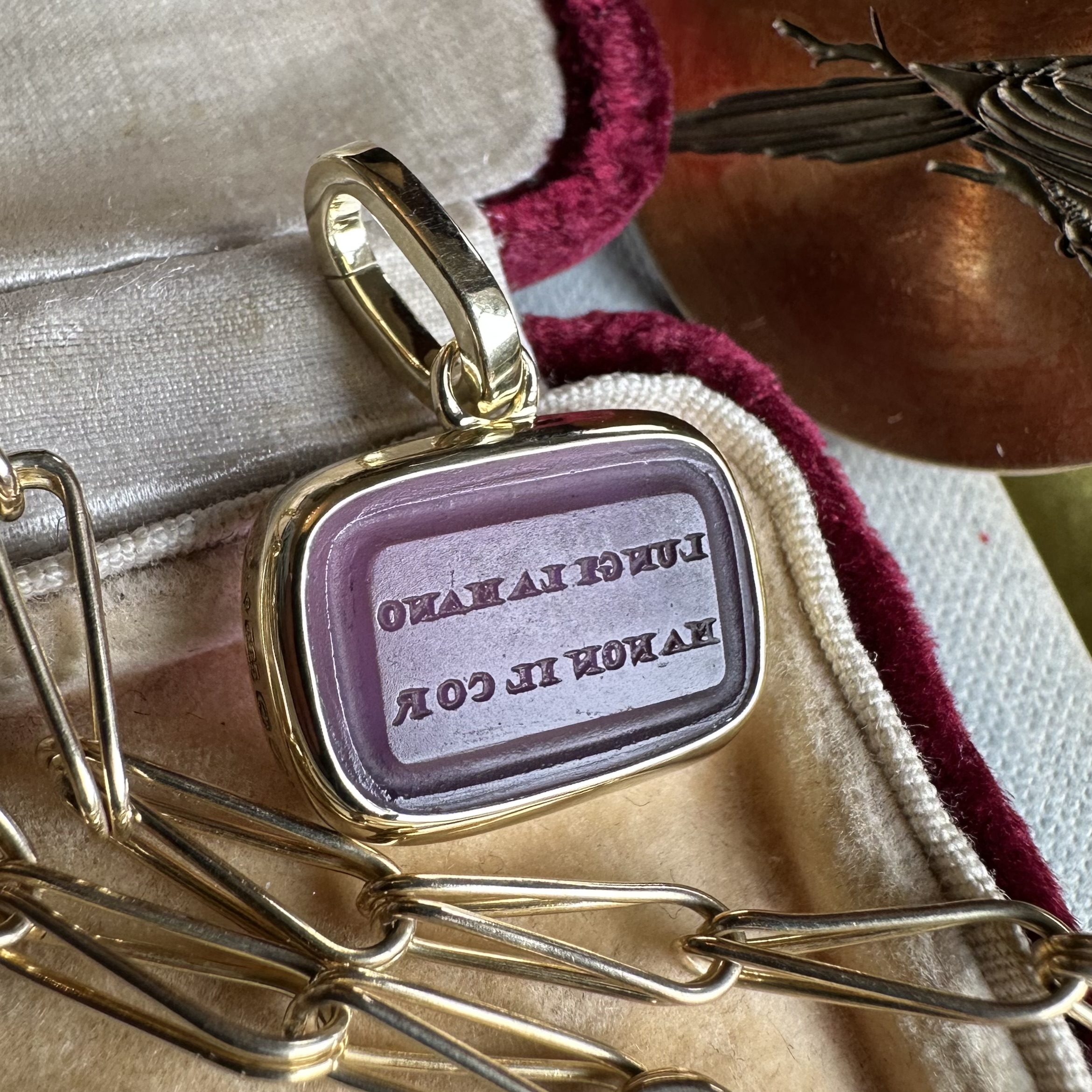 Sleek, understated, with generous amounts of gold or platinum, it beautifully offsets your intaglio, allowing it to be the star of the show.
