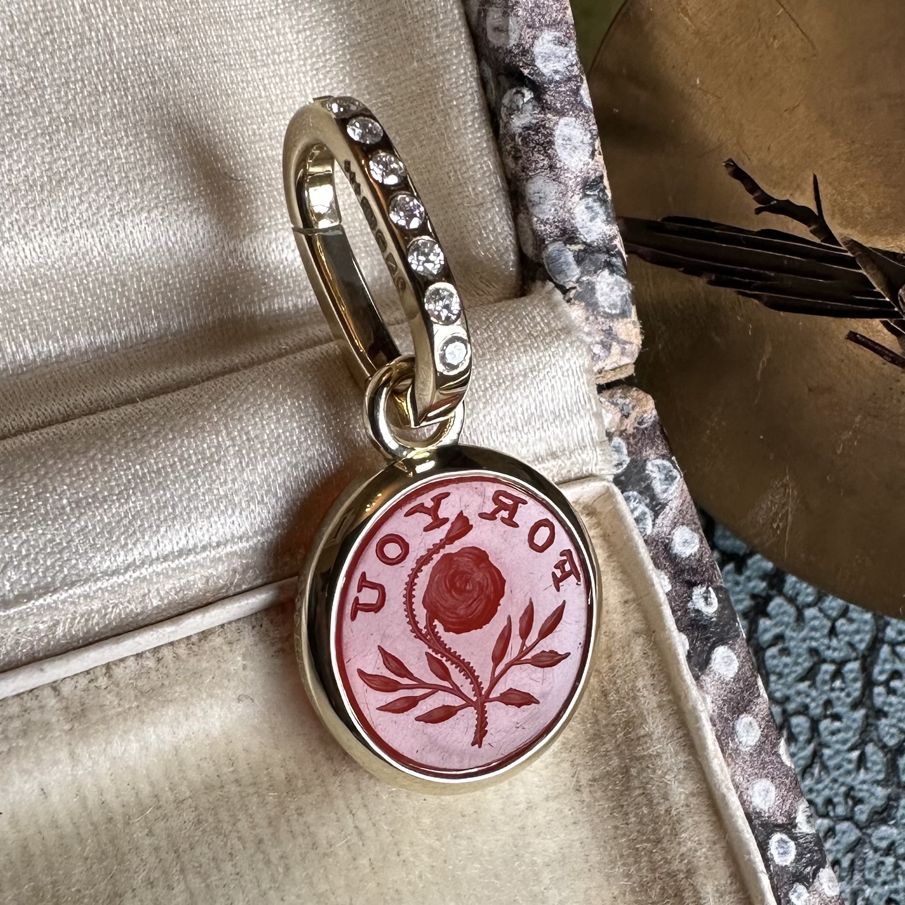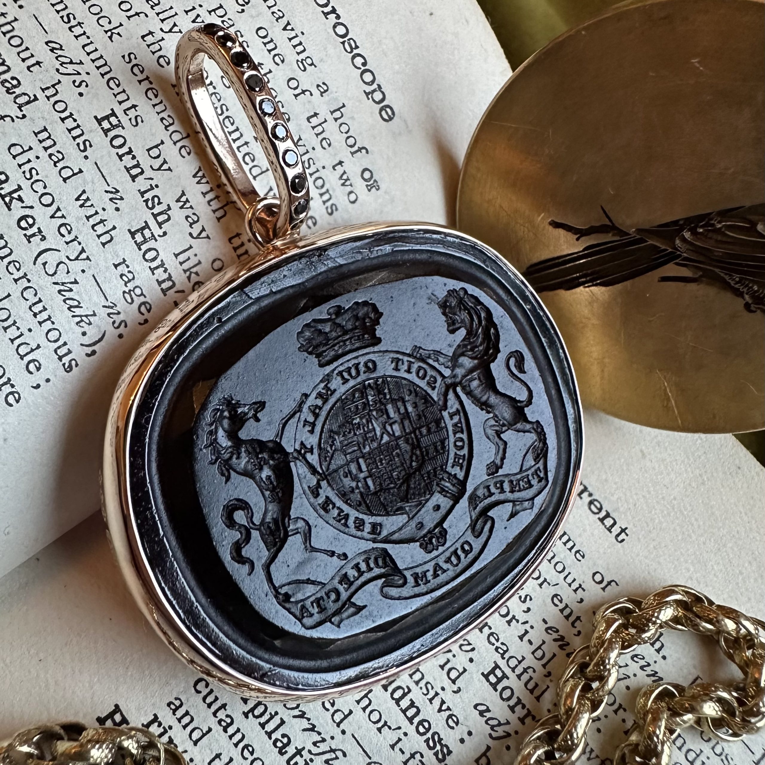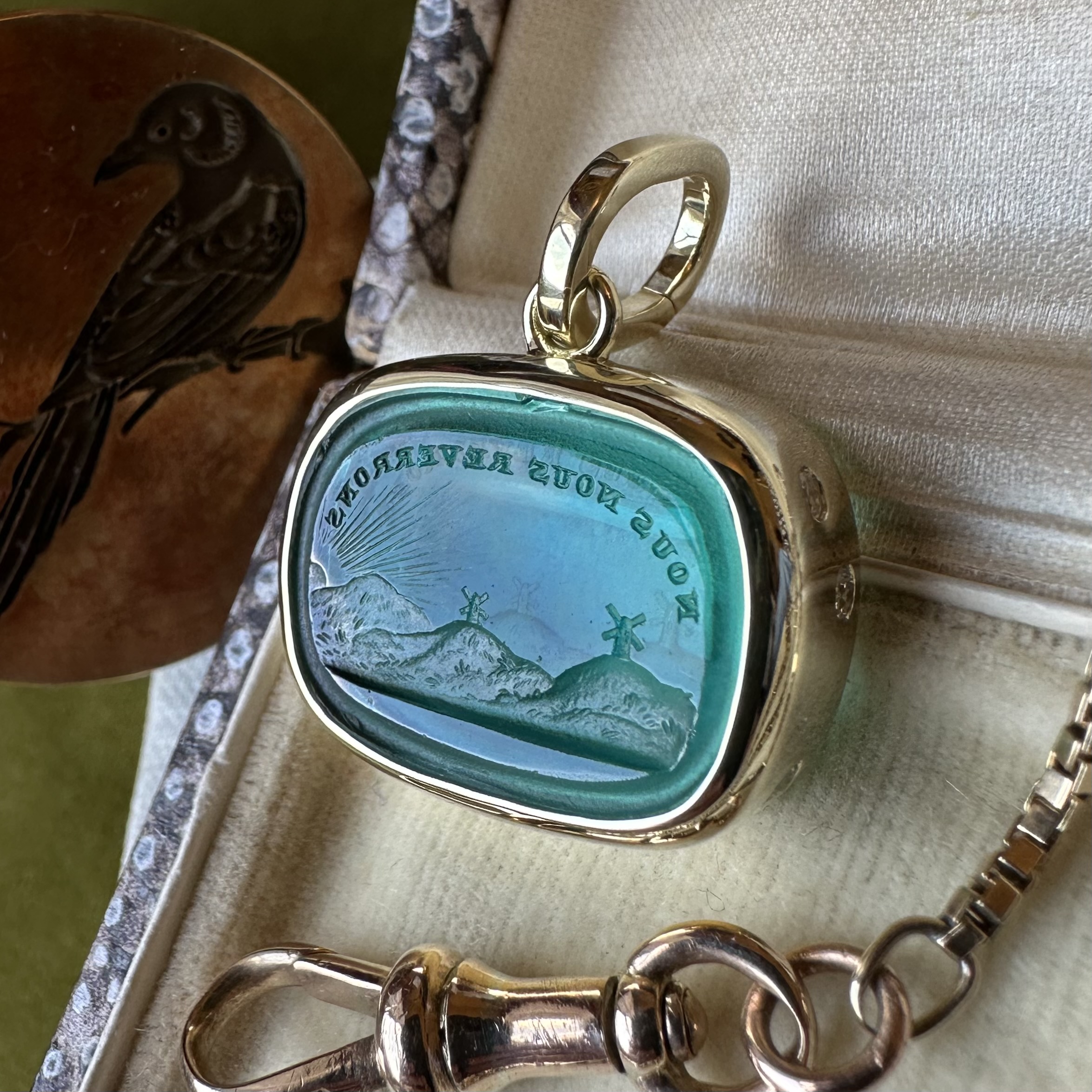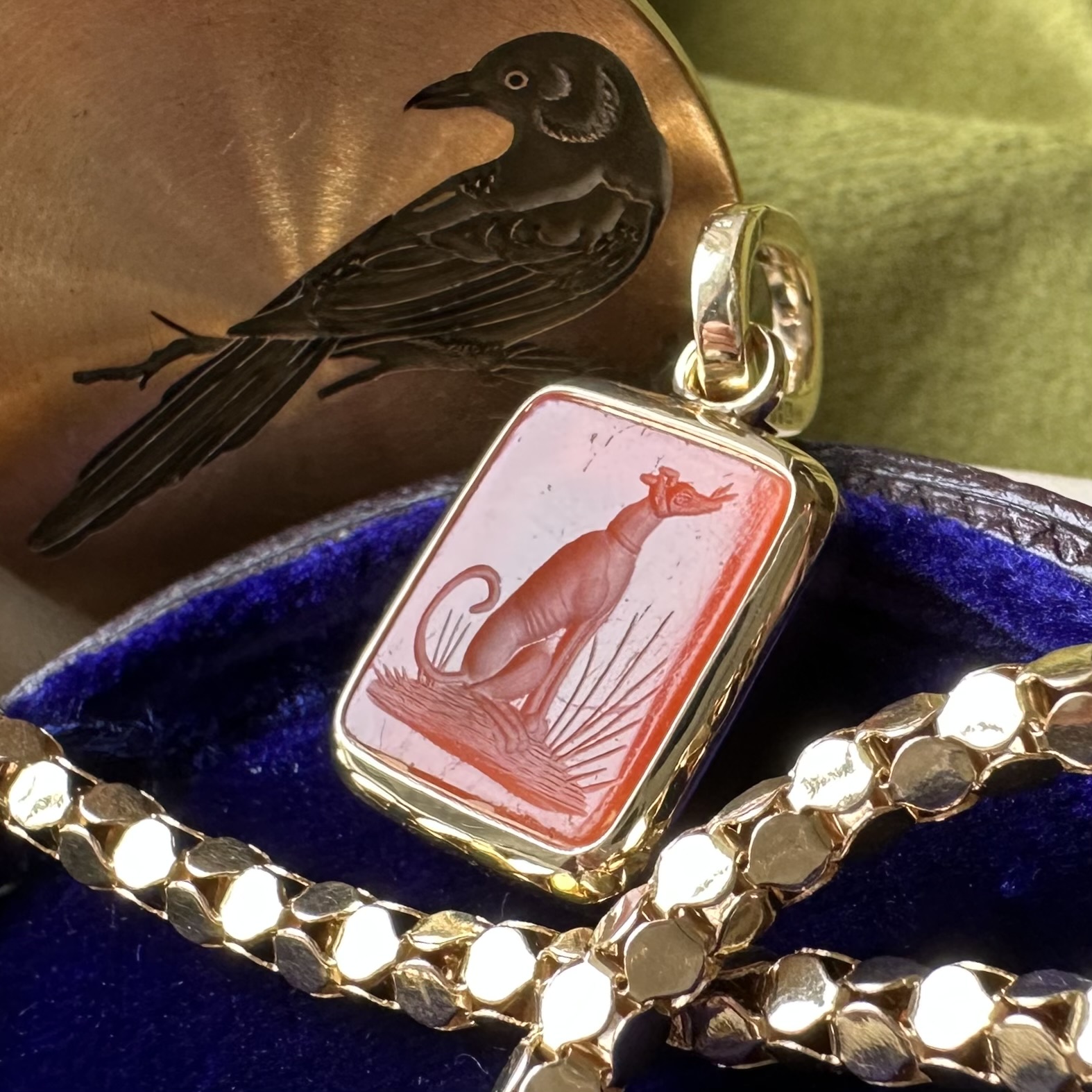 Sleek, understated, with generous amounts of gold or platinum, it beautifully offsets your intaglio, allowing it to be the star of the show.
