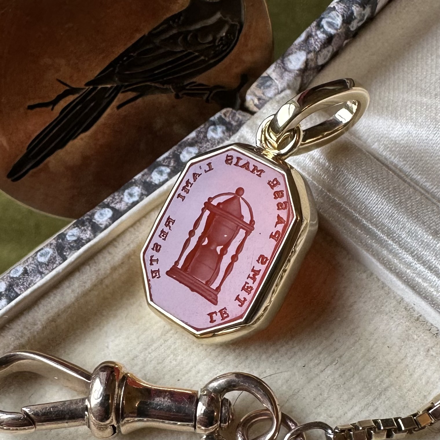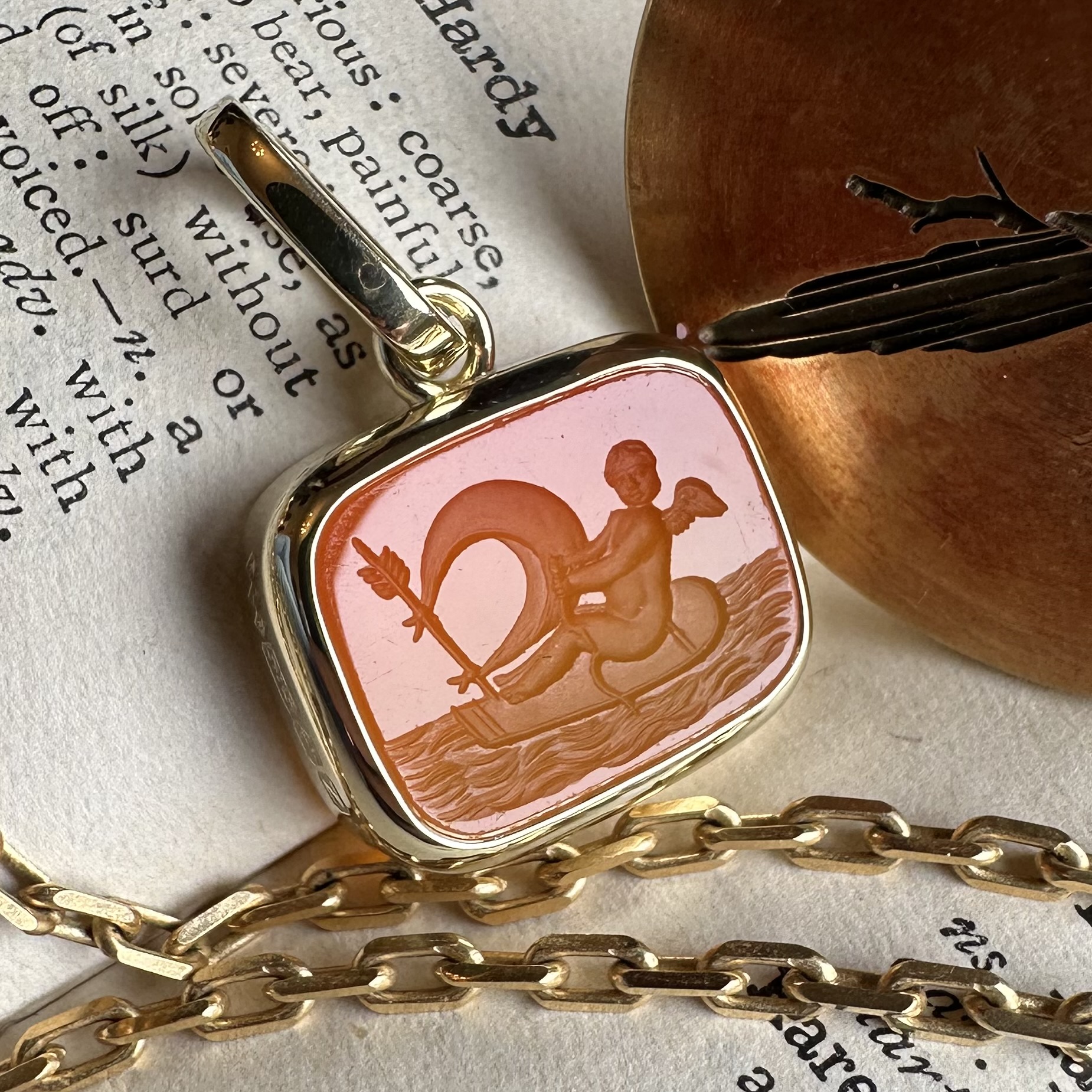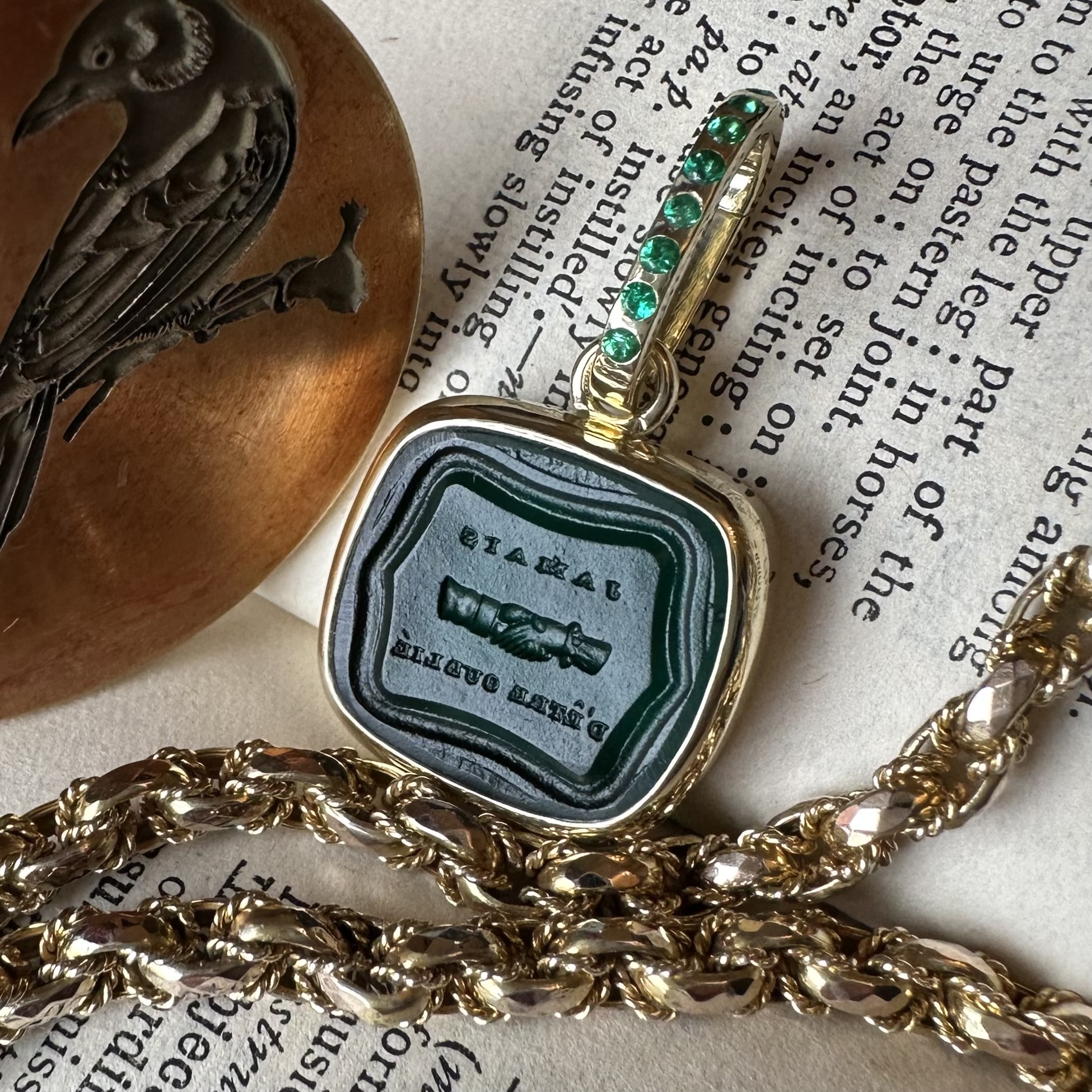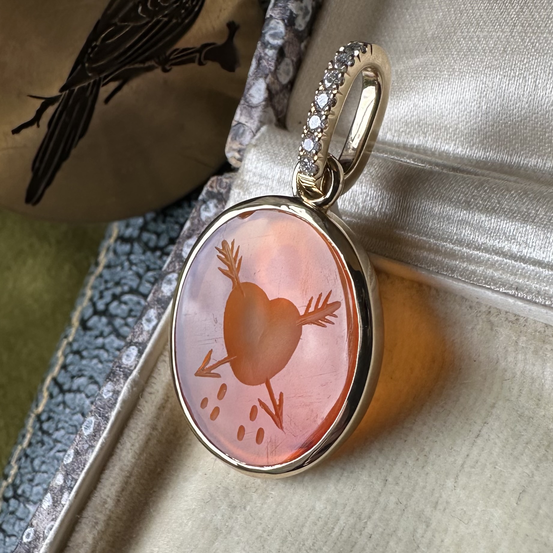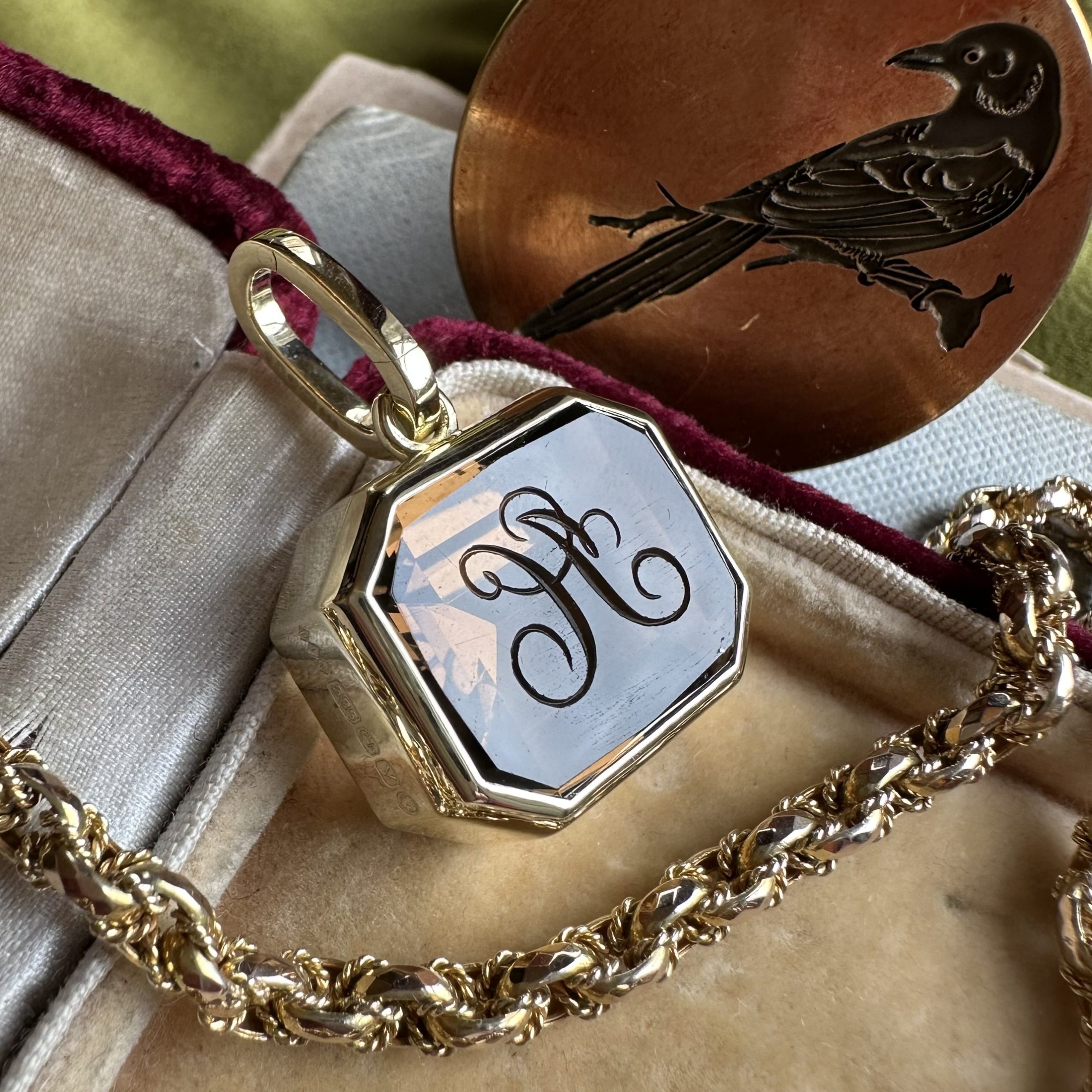 Sleek, understated, with generous amounts of gold or platinum, it beautifully offsets your intaglio, allowing it to be the star of the show.