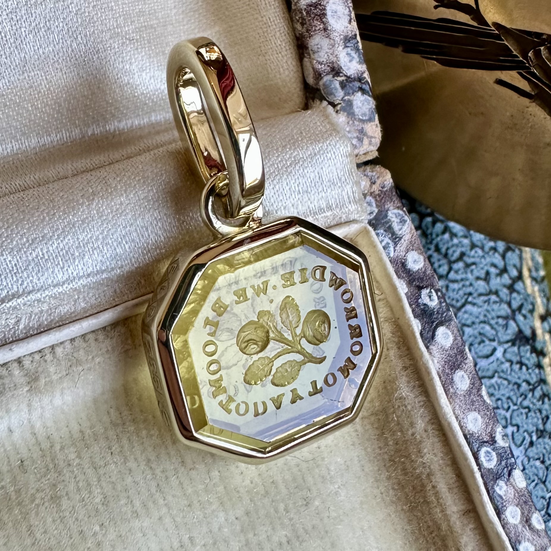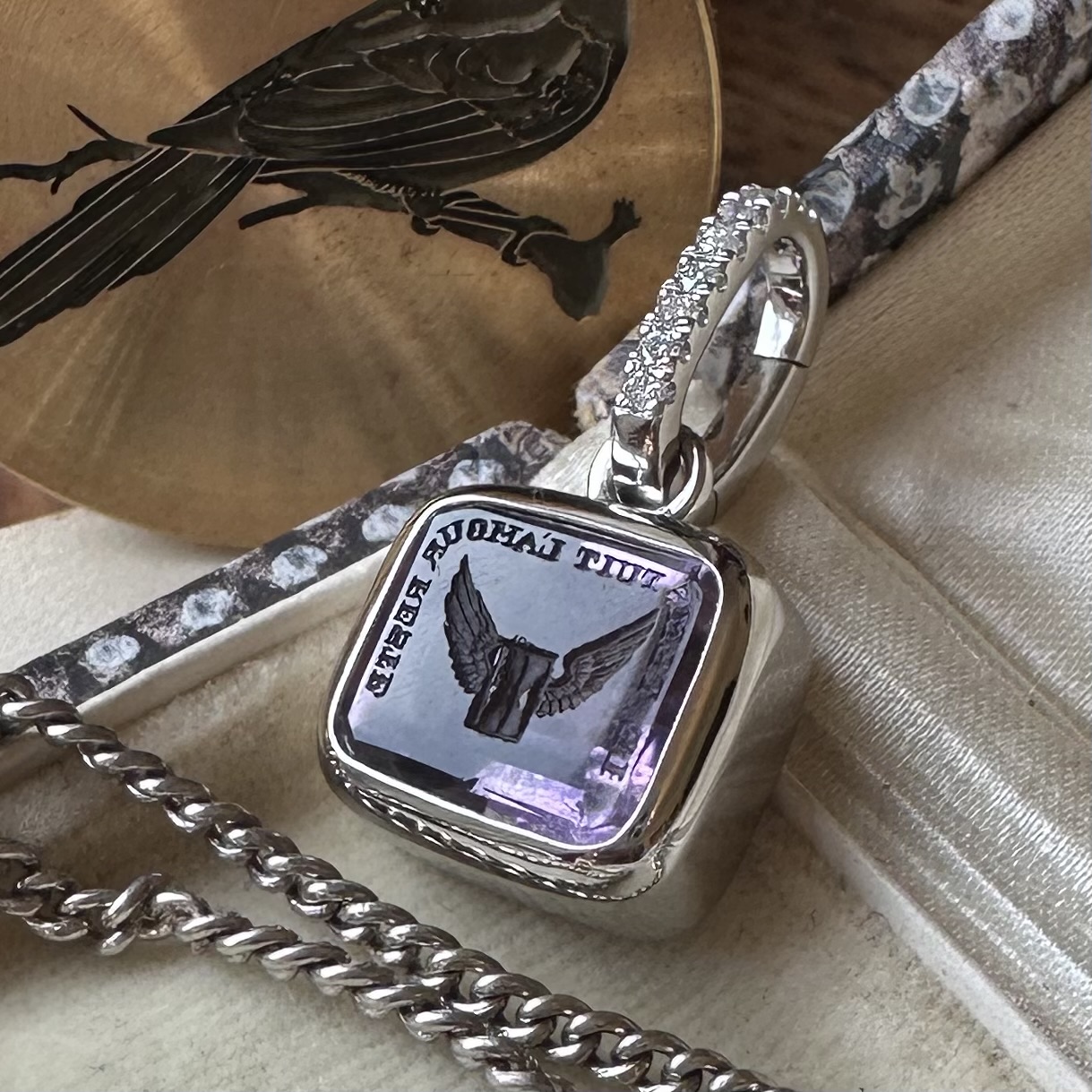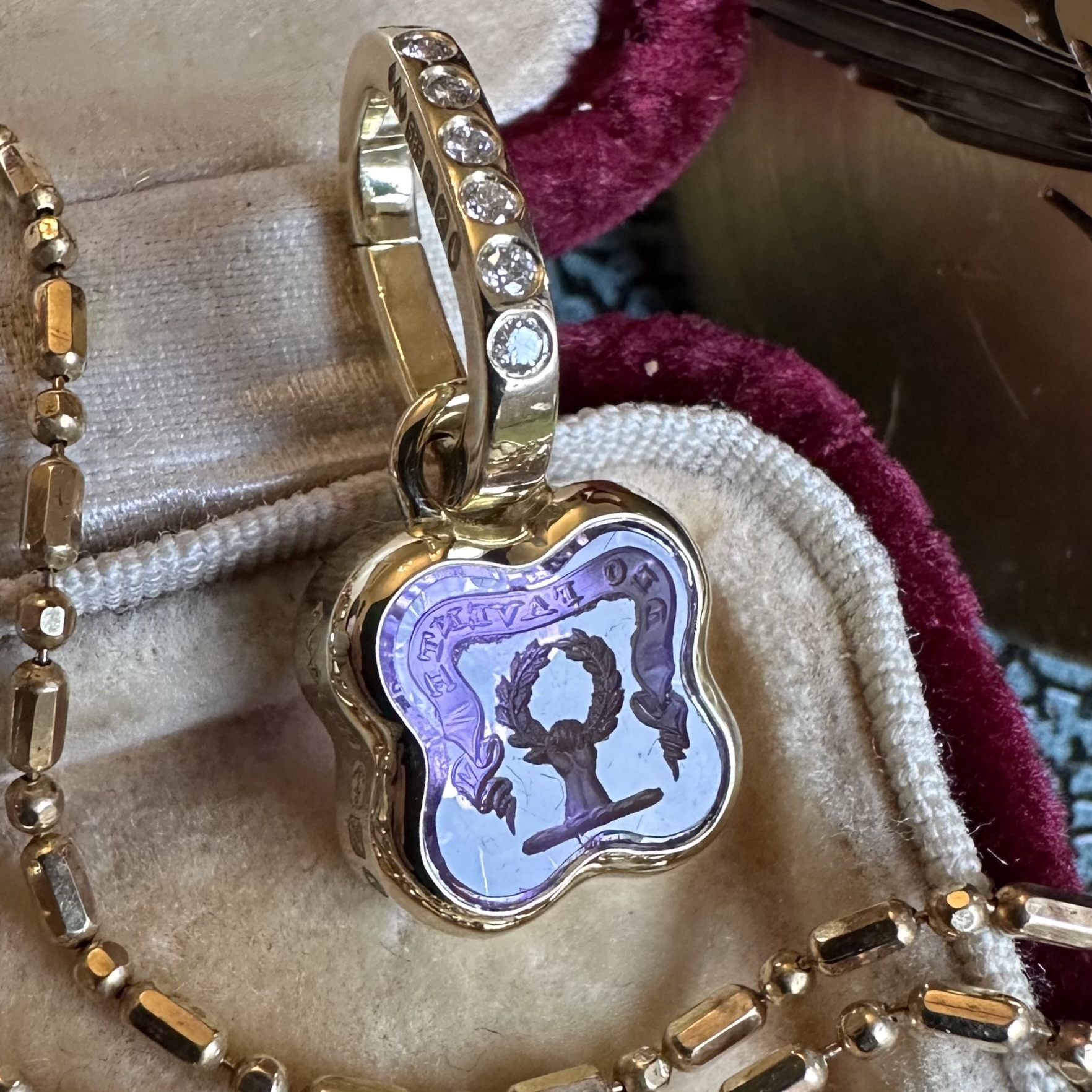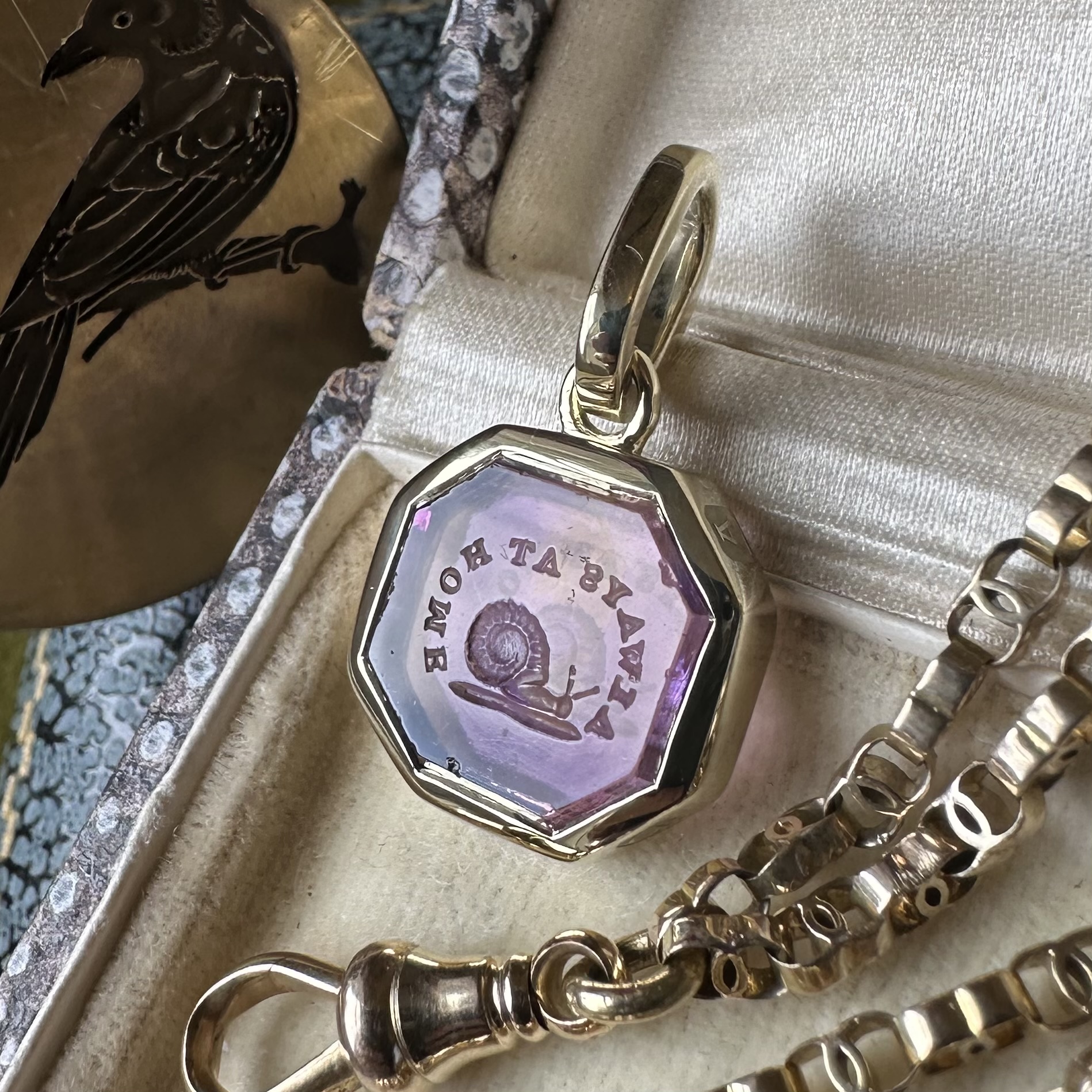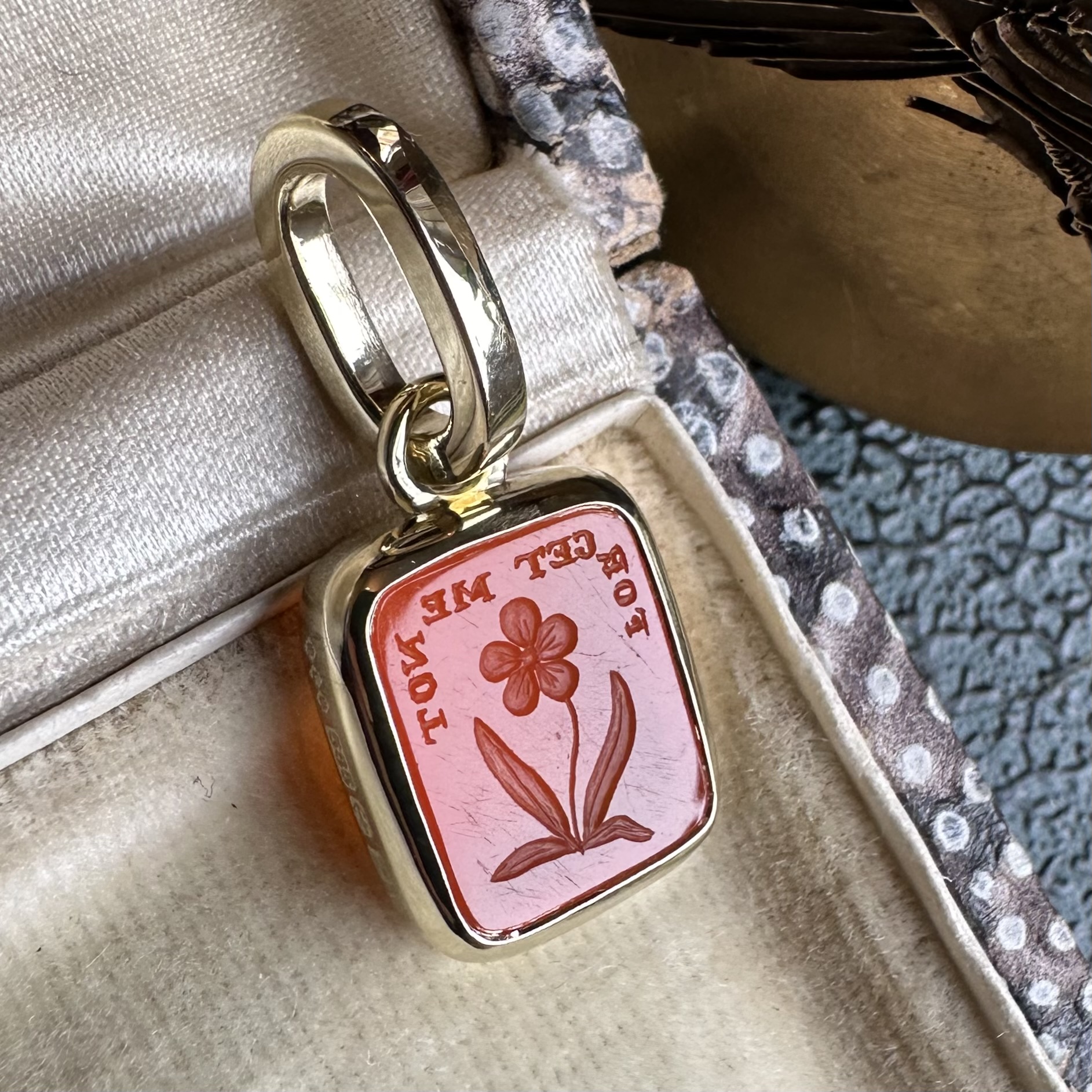 Sleek, understated, with generous amounts of gold or platinum, it beautifully offsets your intaglio, allowing it to be the star of the show.