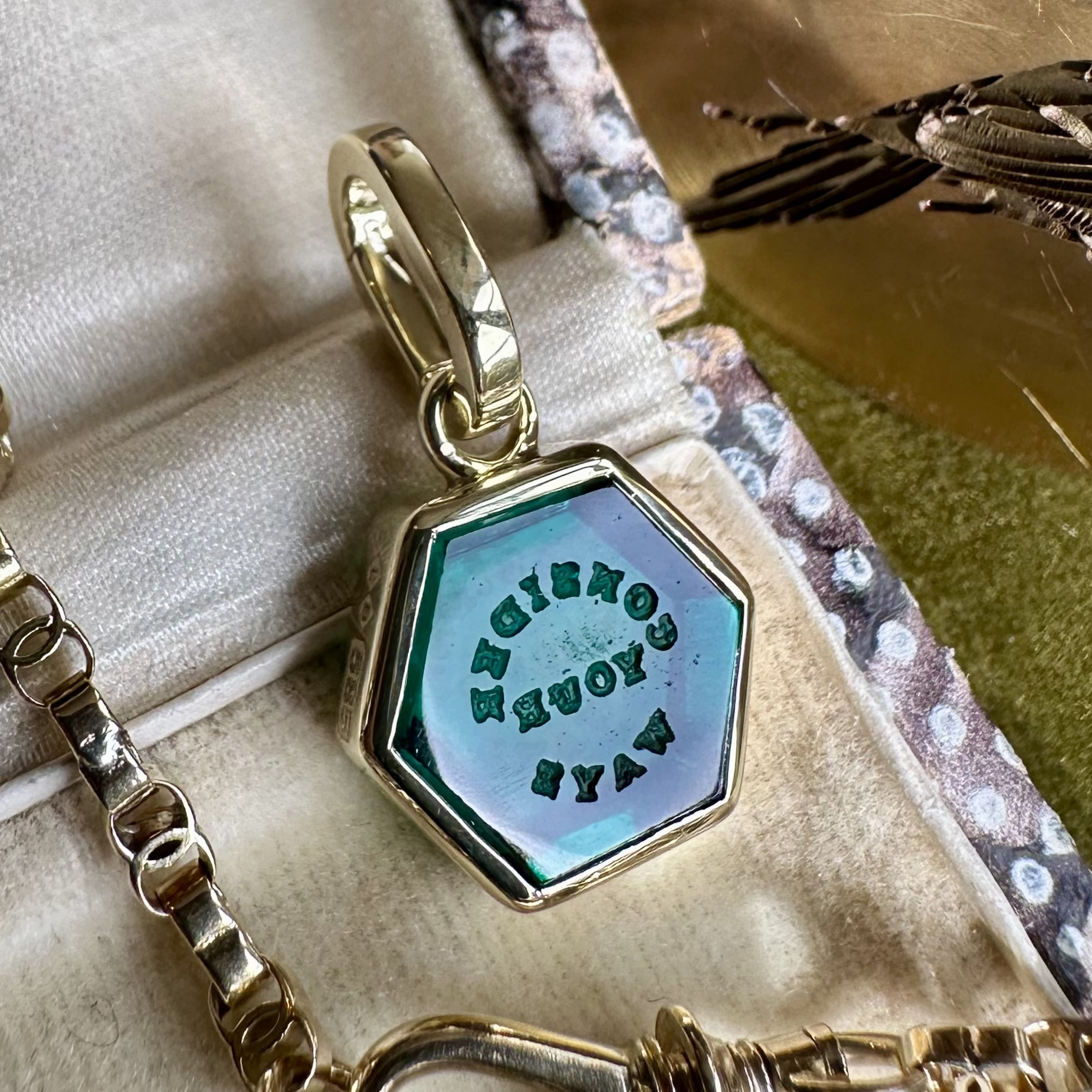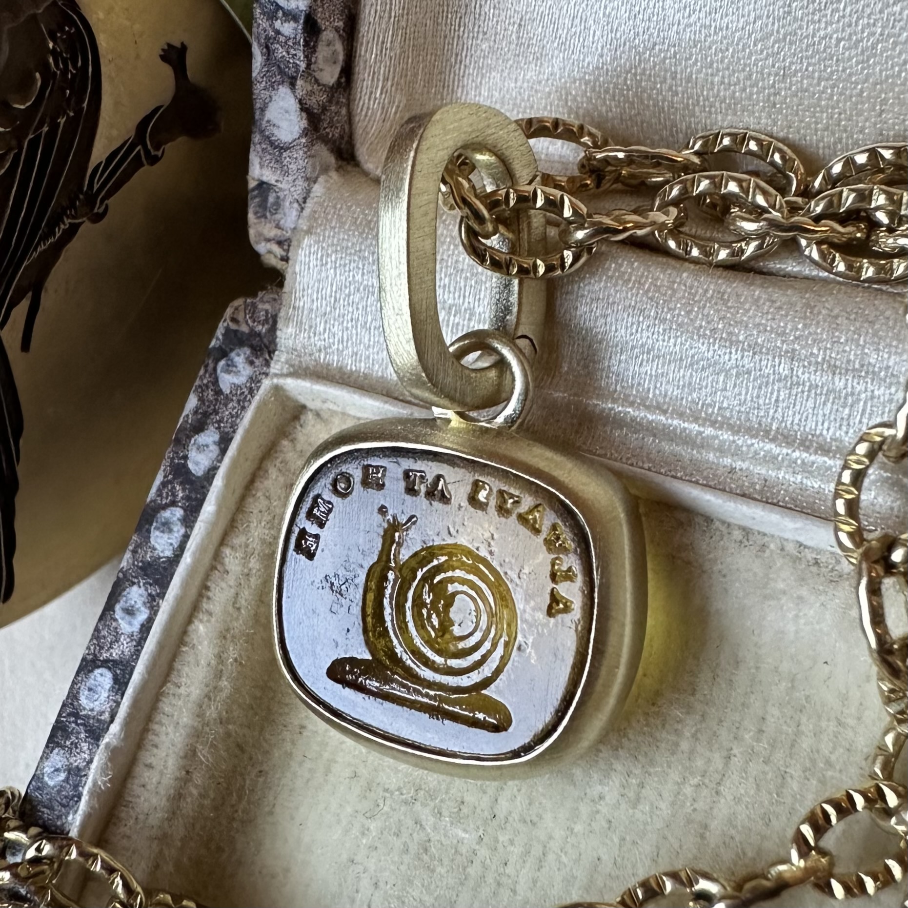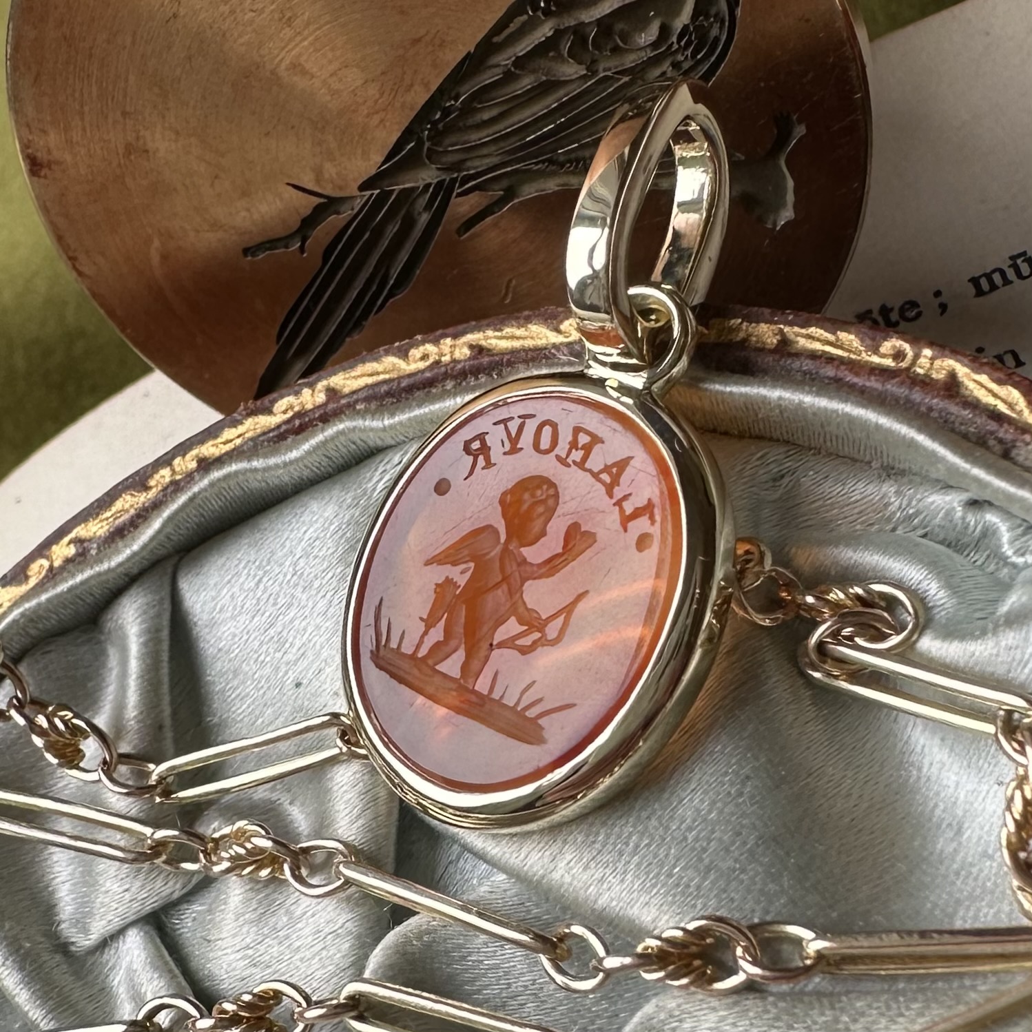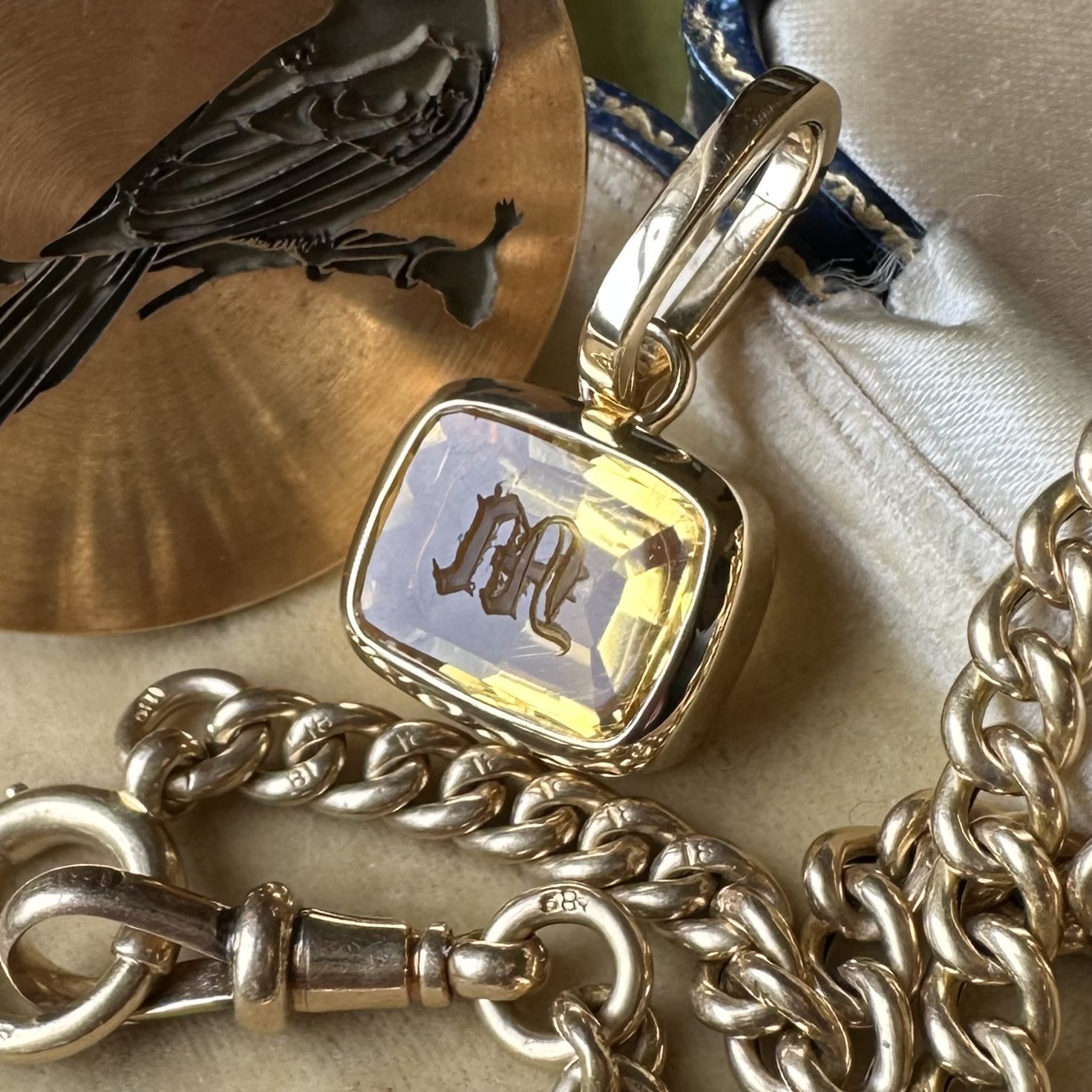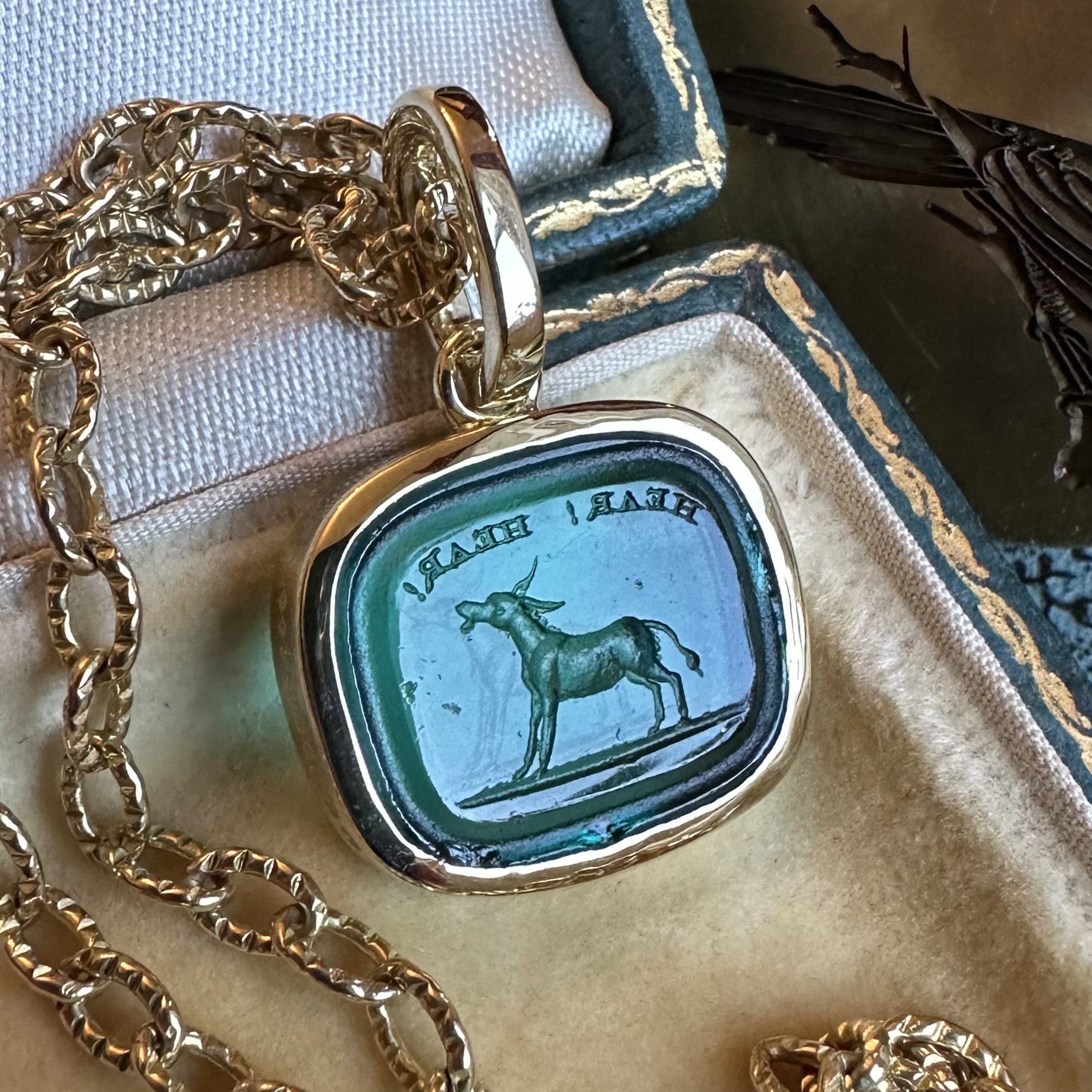 Sleek, understated, with generous amounts of gold or platinum, it beautifully offsets your intaglio, allowing it to be the star of the show.