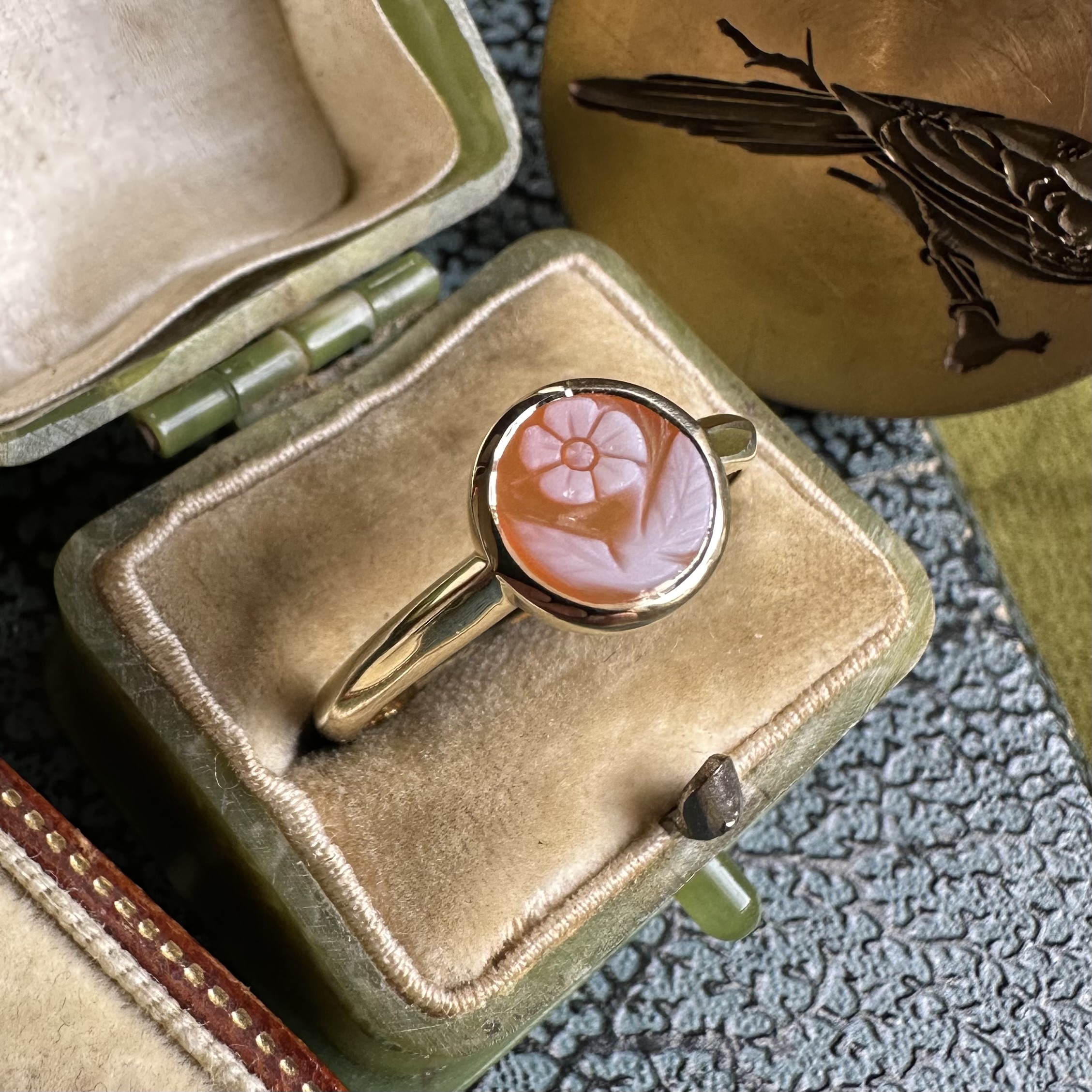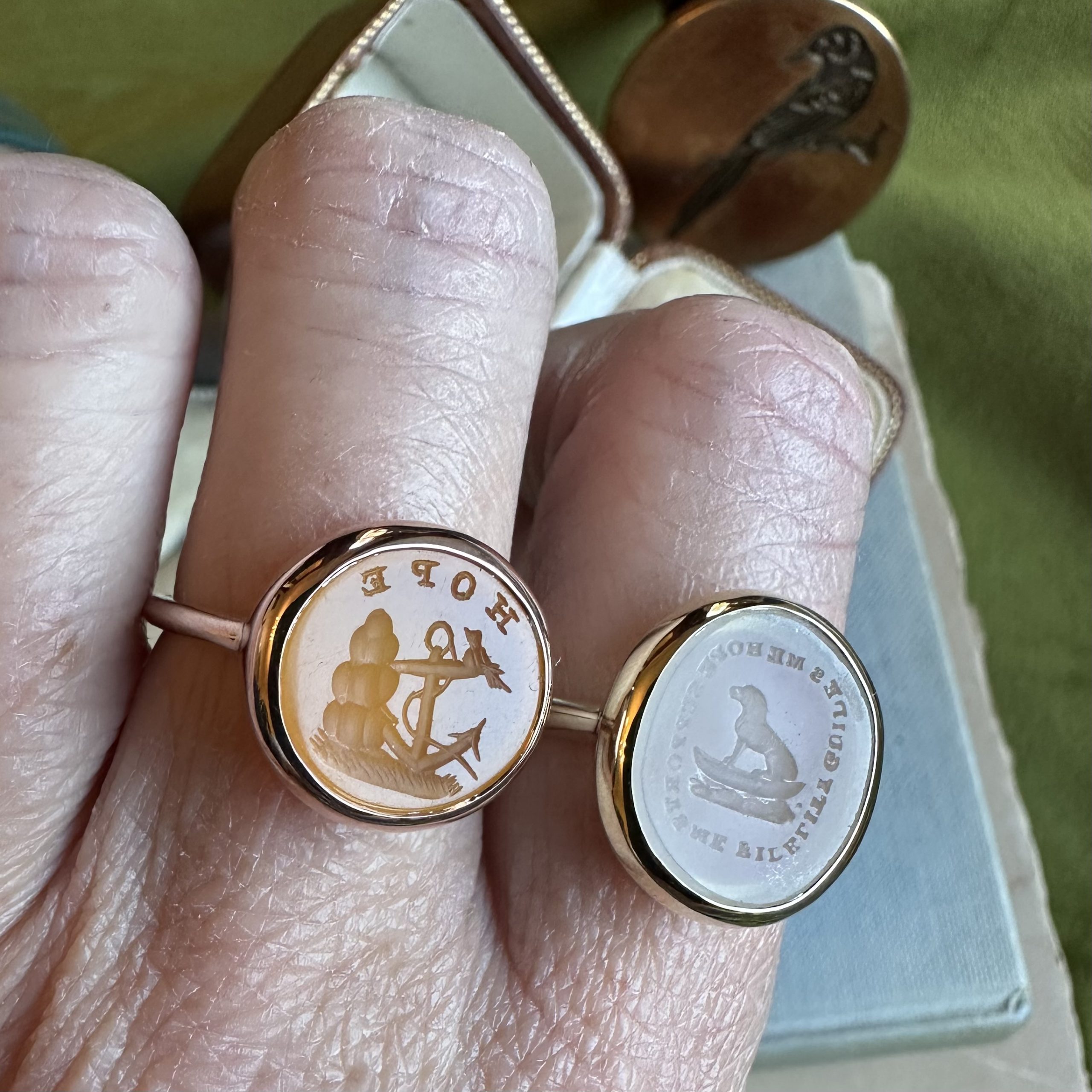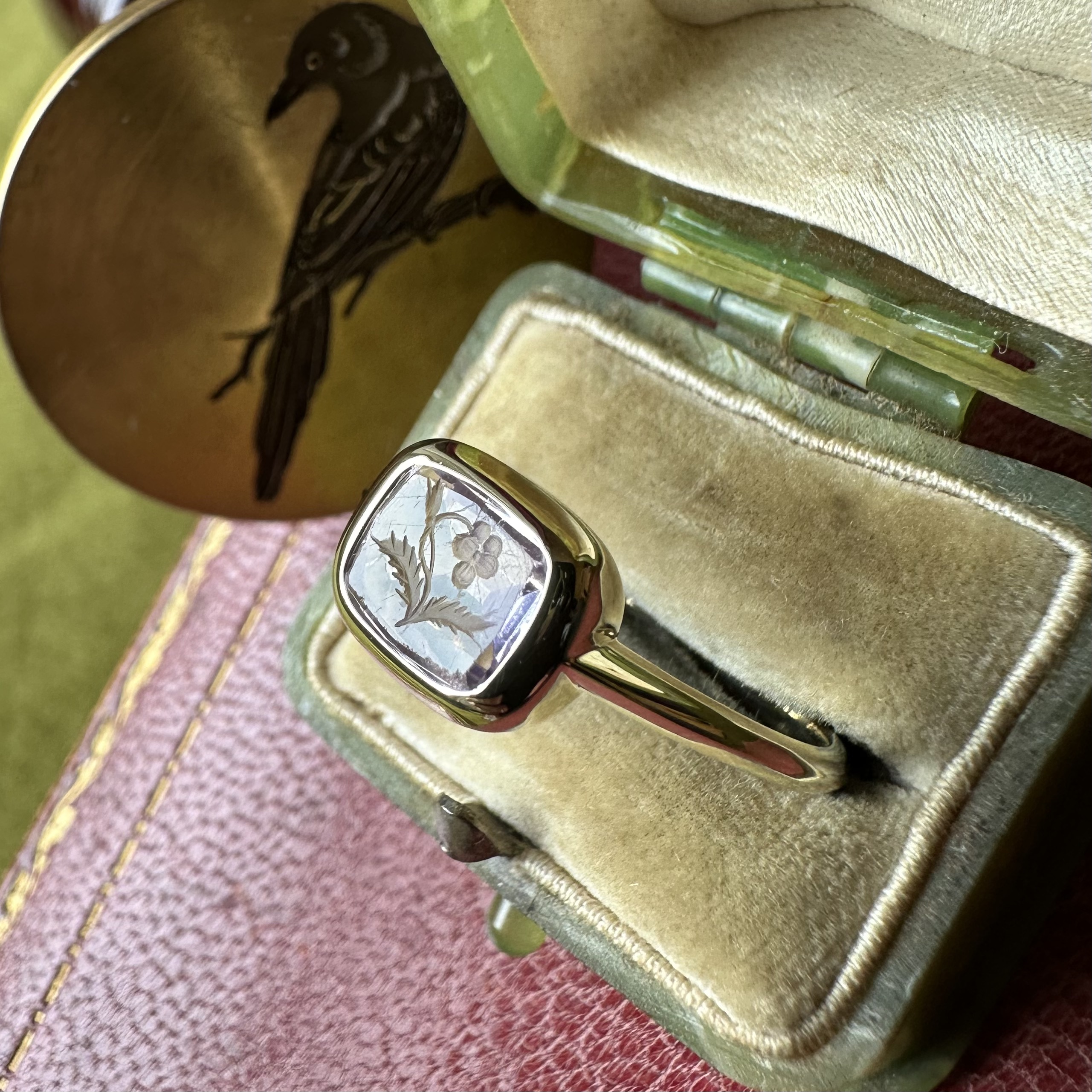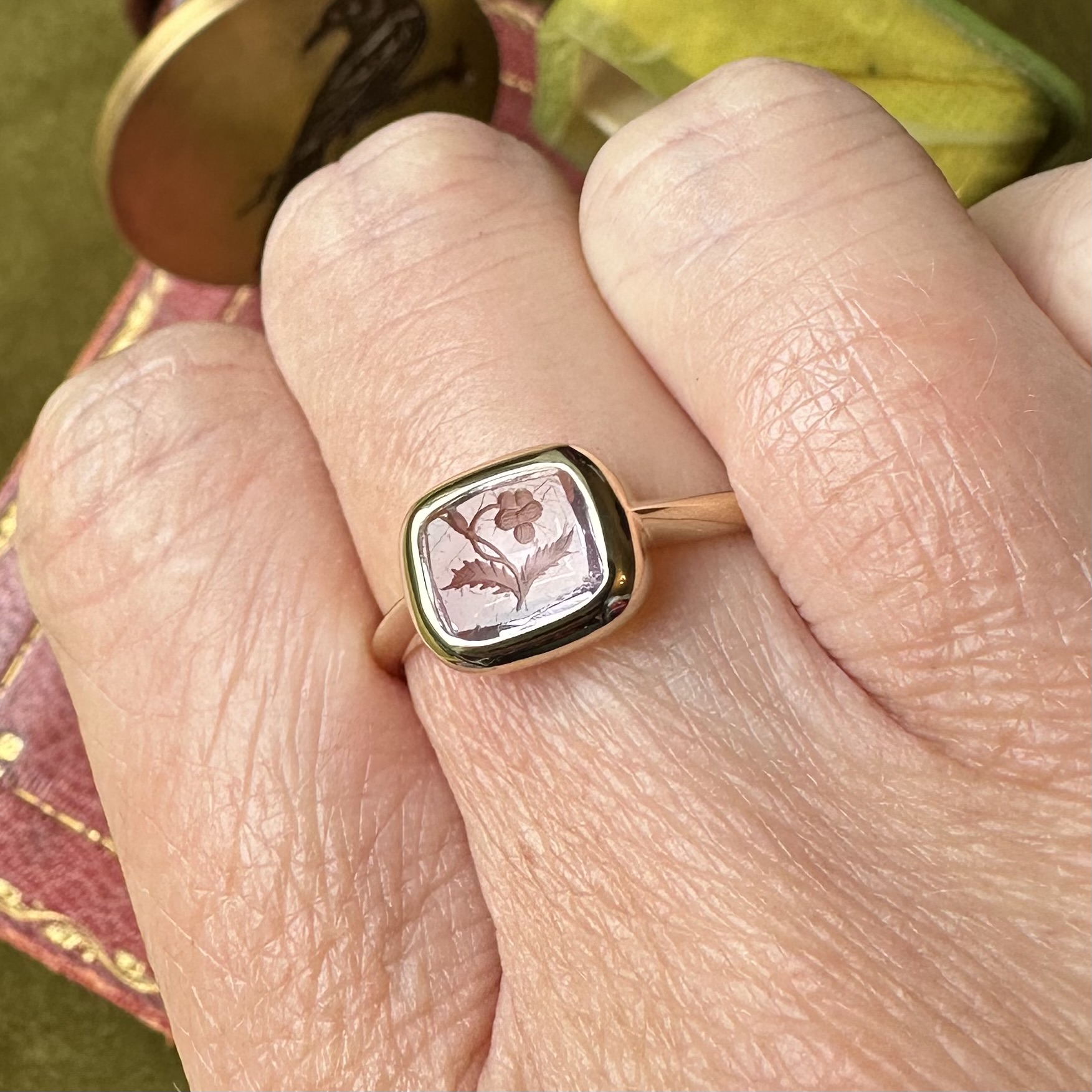 It is important to note that the term dainty was originally coined with reference to the minimalist gold bezel of gold and not to the size of finished piece itself. So dainty setting would have been a much better moniker because it is perfectly possible to have a dainty ring featuring a whacking great intaglio that is quite the finger covering statement piece. Emma didn’t think that through when she named them did she?!