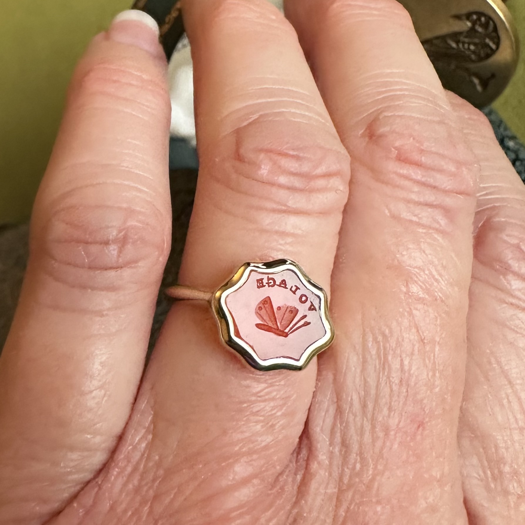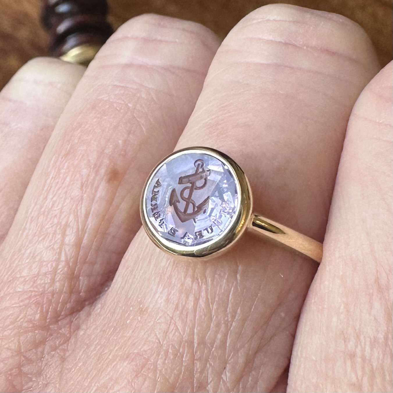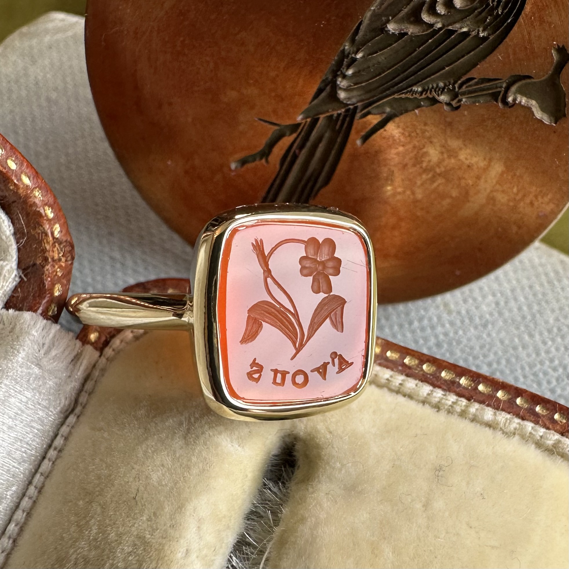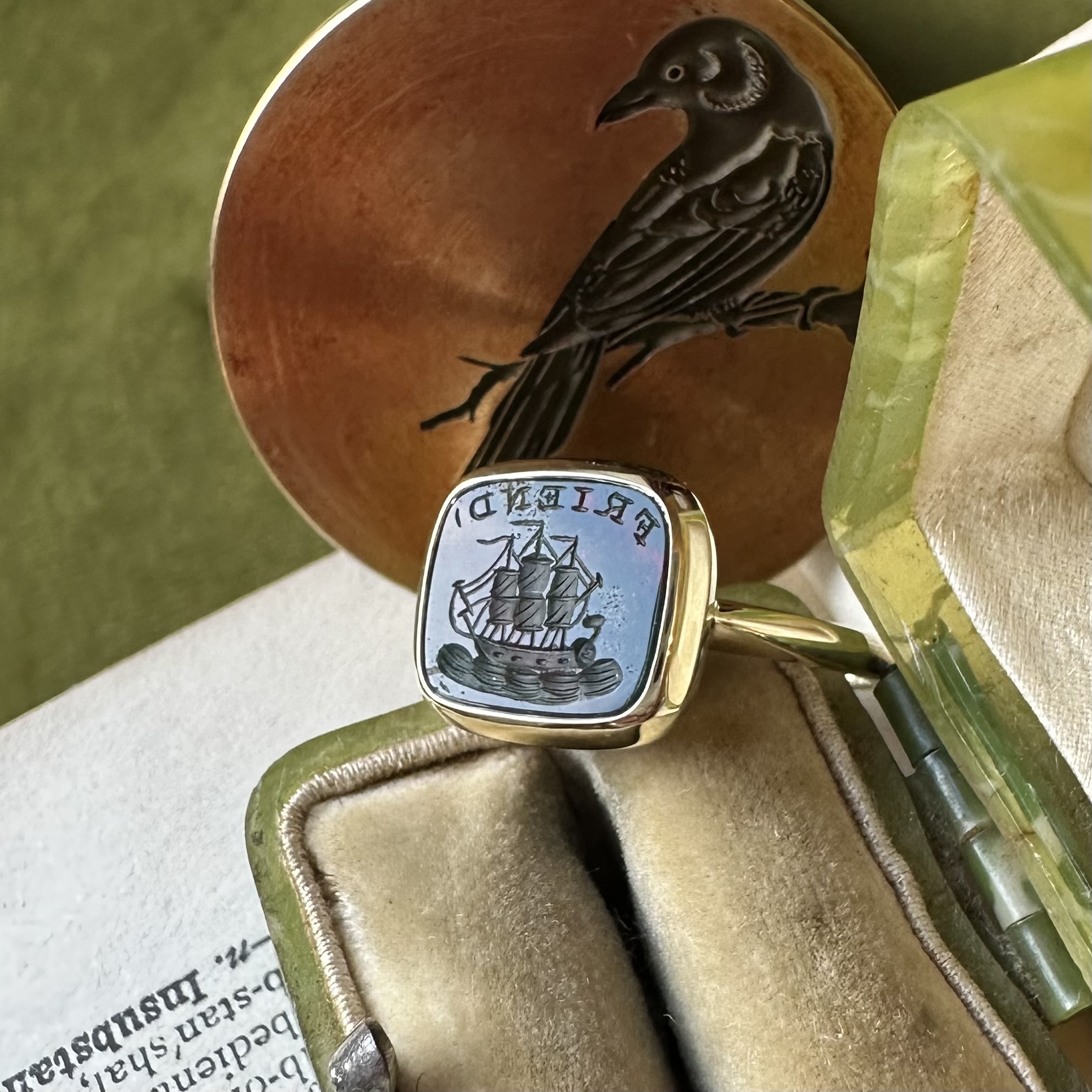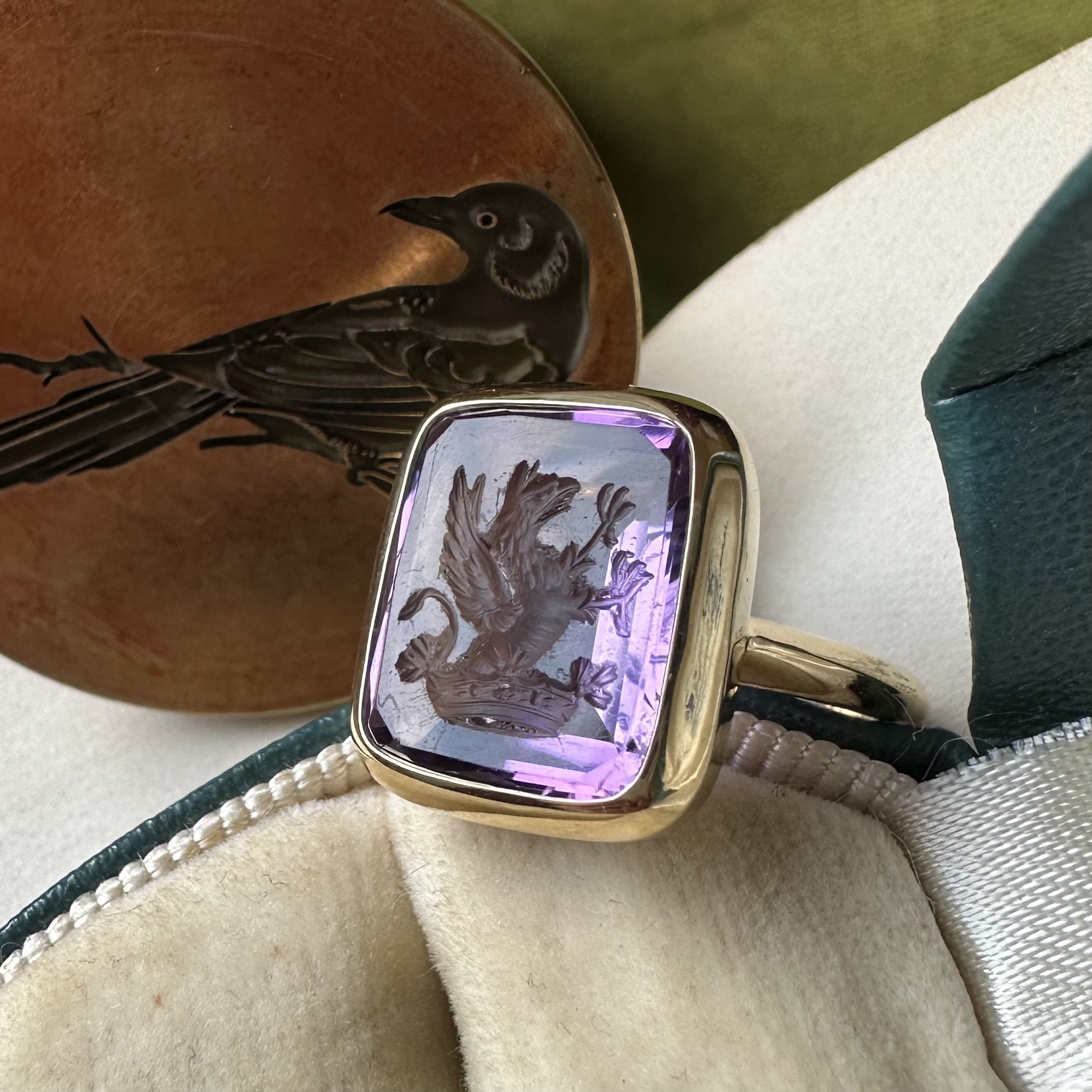 It is important to note that the term dainty was originally coined with reference to the minimalist gold bezel of gold and not to the size of finished piece itself. So dainty setting would have been a much better moniker because it is perfectly possible to have a dainty ring featuring a whacking great intaglio that is quite the finger covering statement piece. Emma didn’t think that through when she named them did she?!