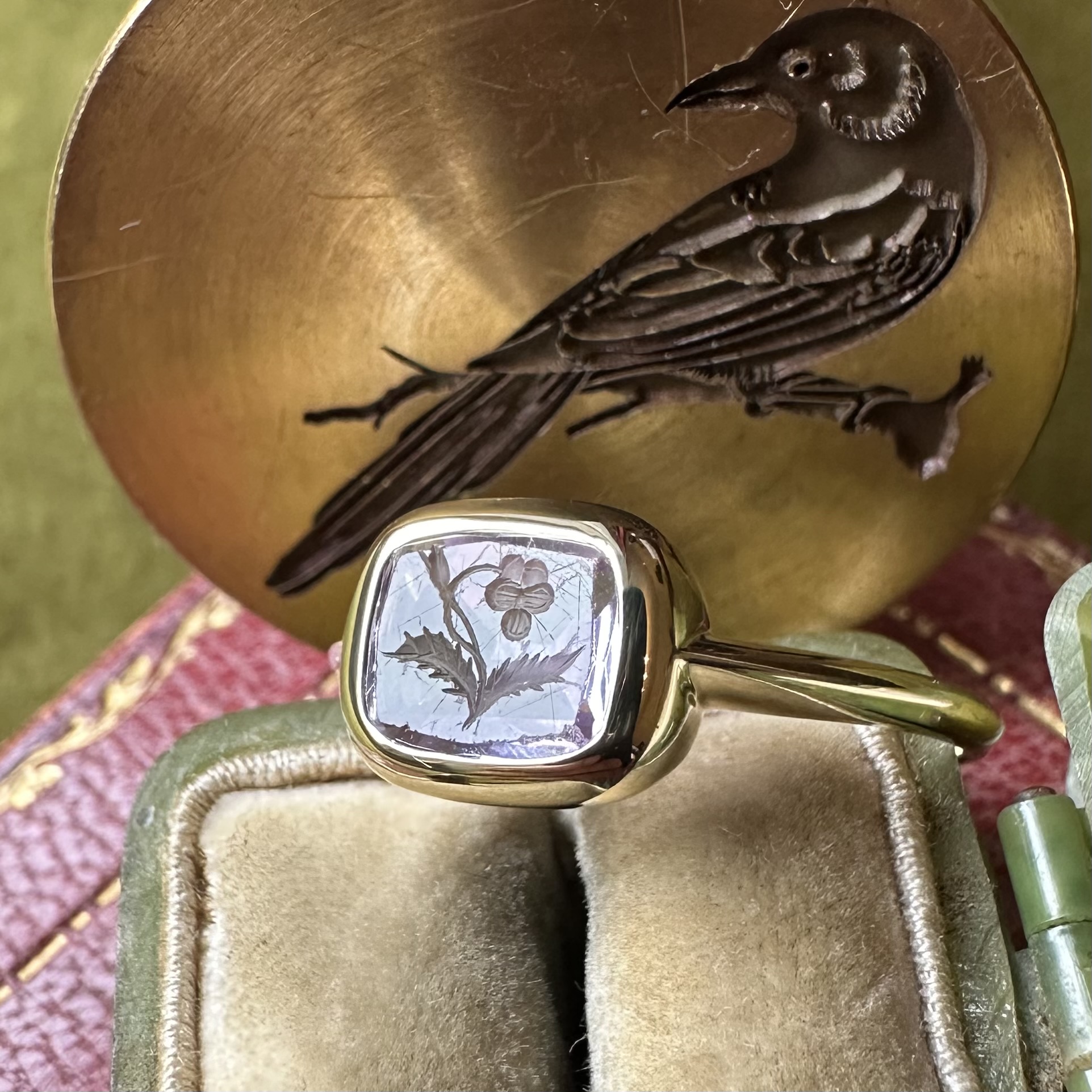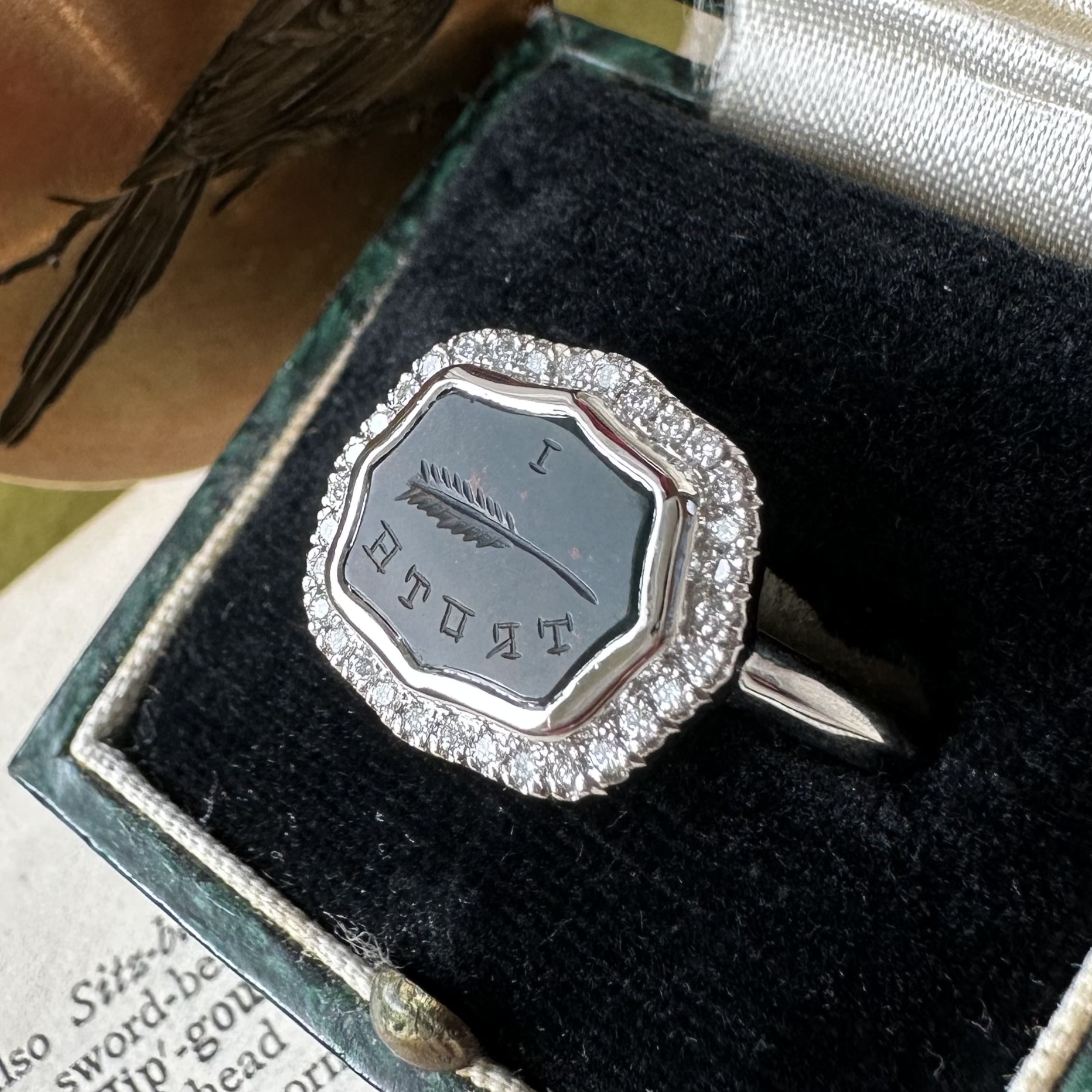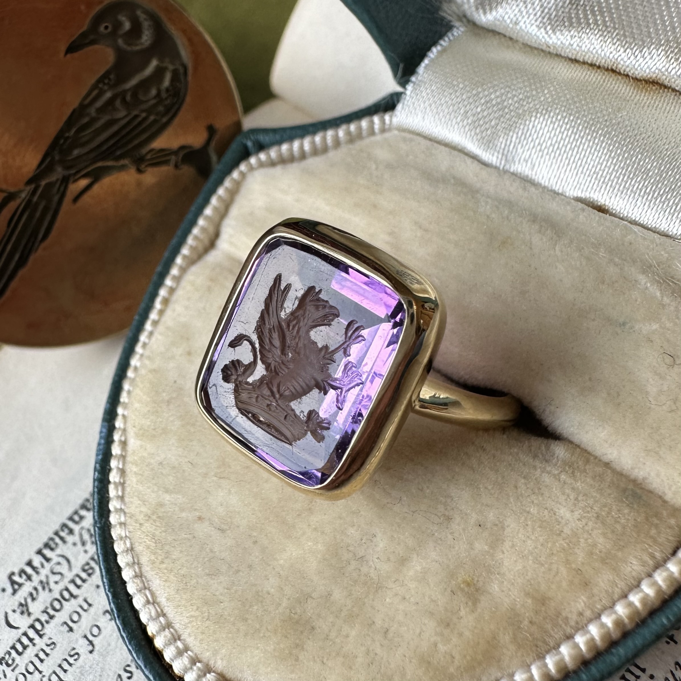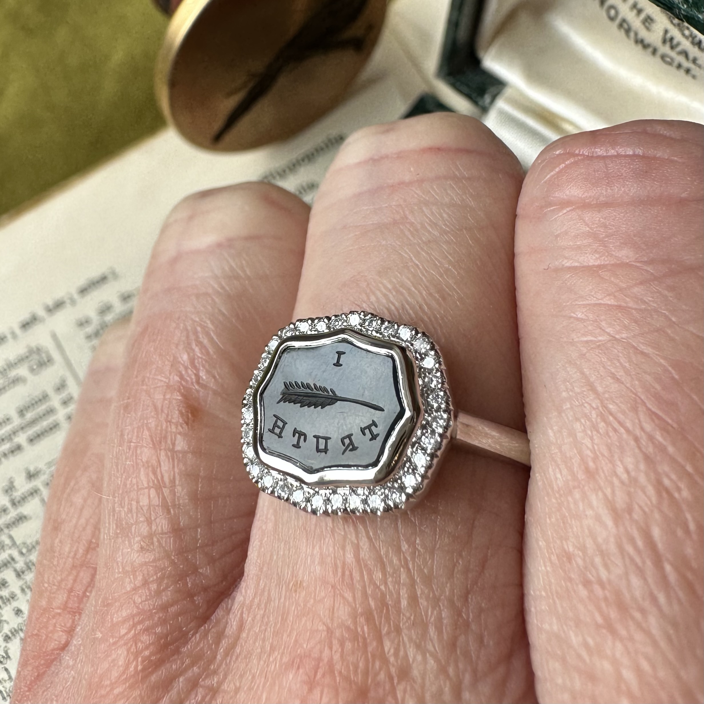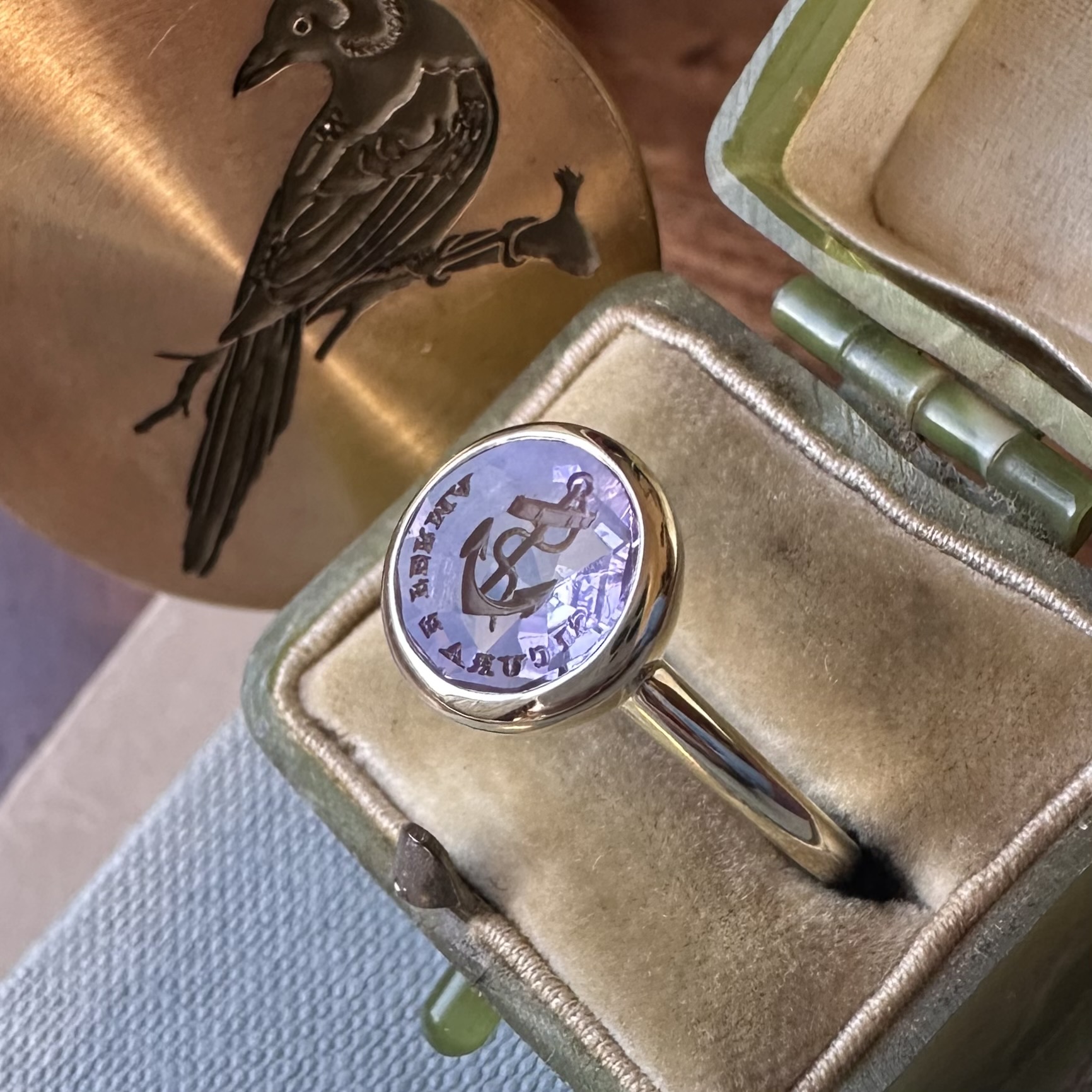 It is important to note that the term dainty was originally coined with reference to the minimalist gold bezel of gold and not to the size of finished piece itself. So dainty setting would have been a much better moniker because it is perfectly possible to have a dainty ring featuring a whacking great intaglio that is quite the finger covering statement piece. Emma didn’t think that through when she named them did she?!