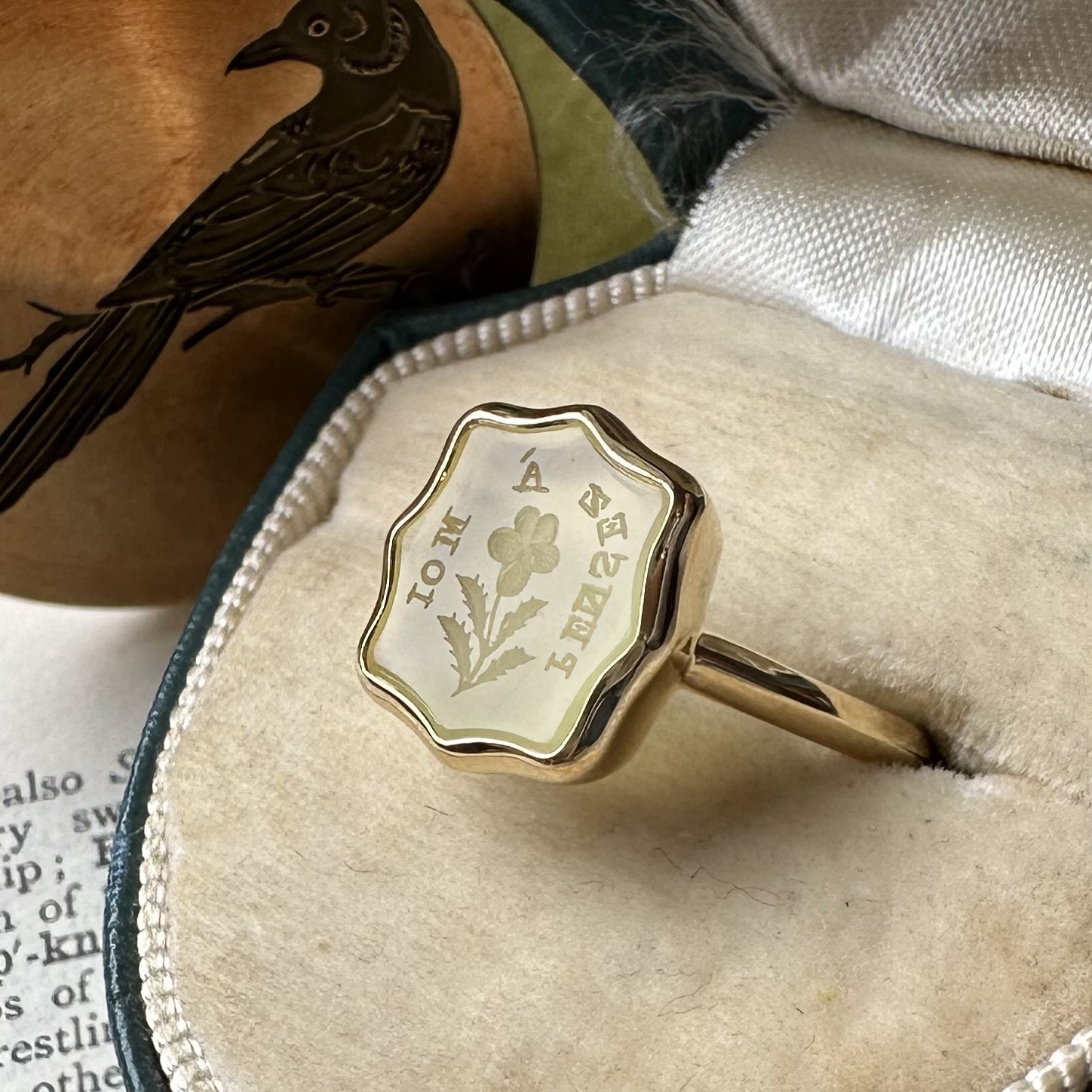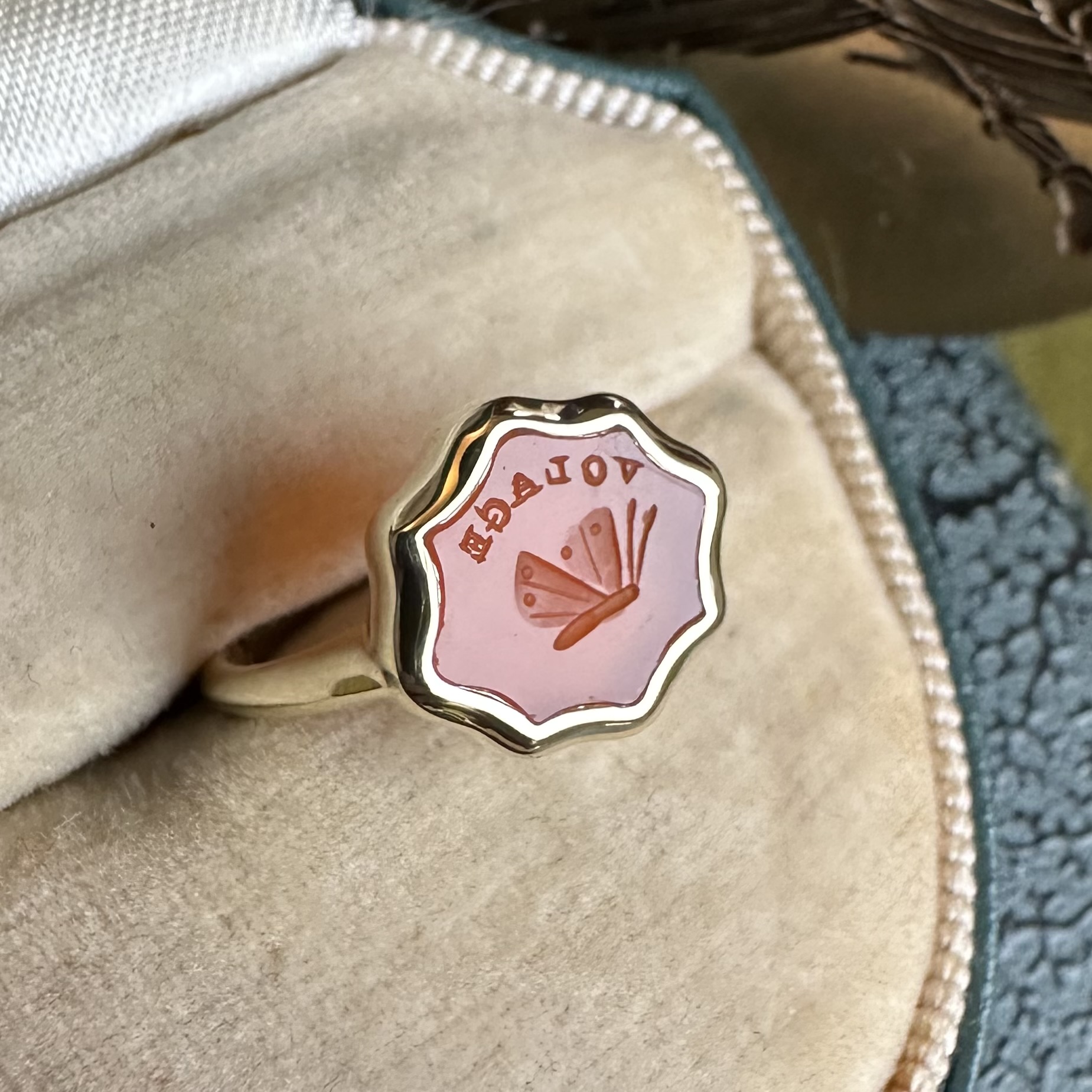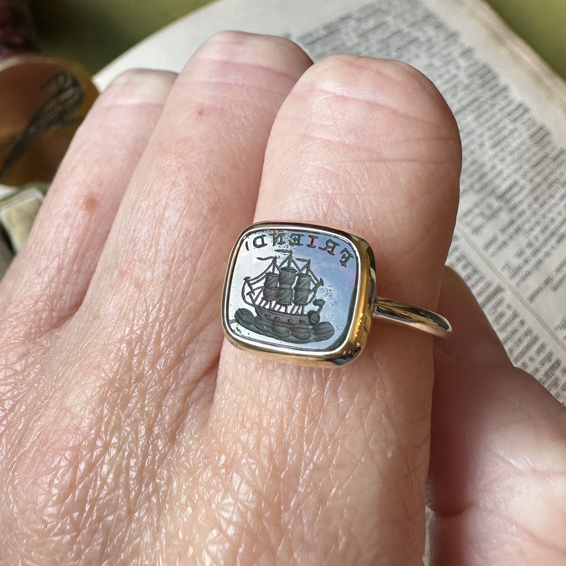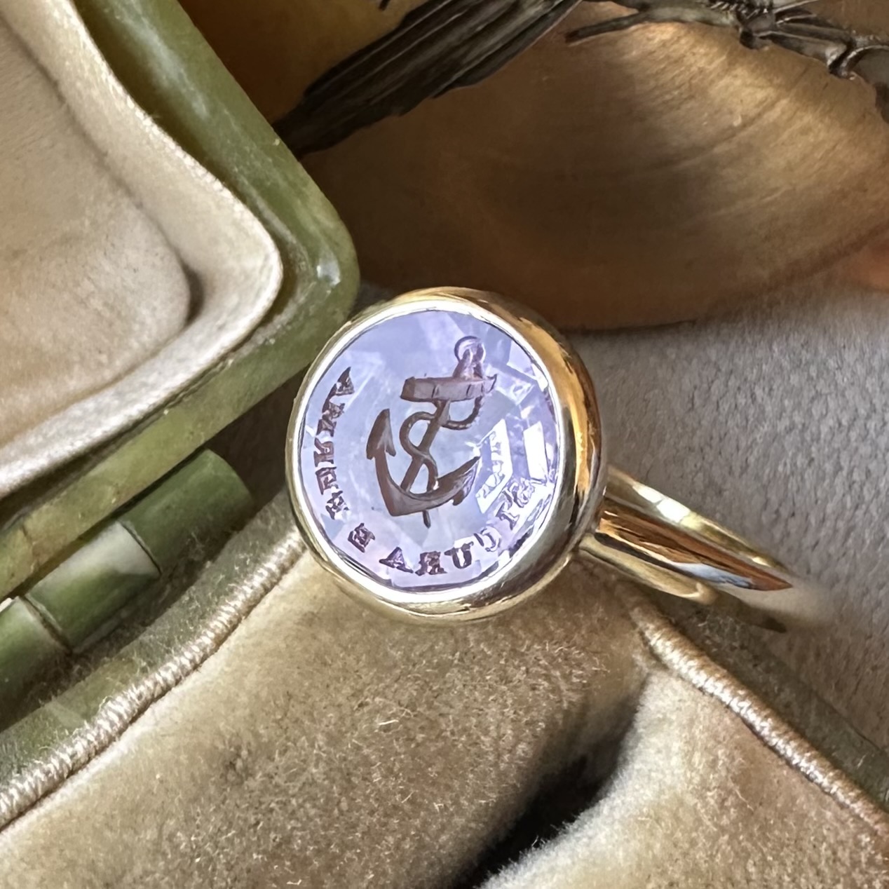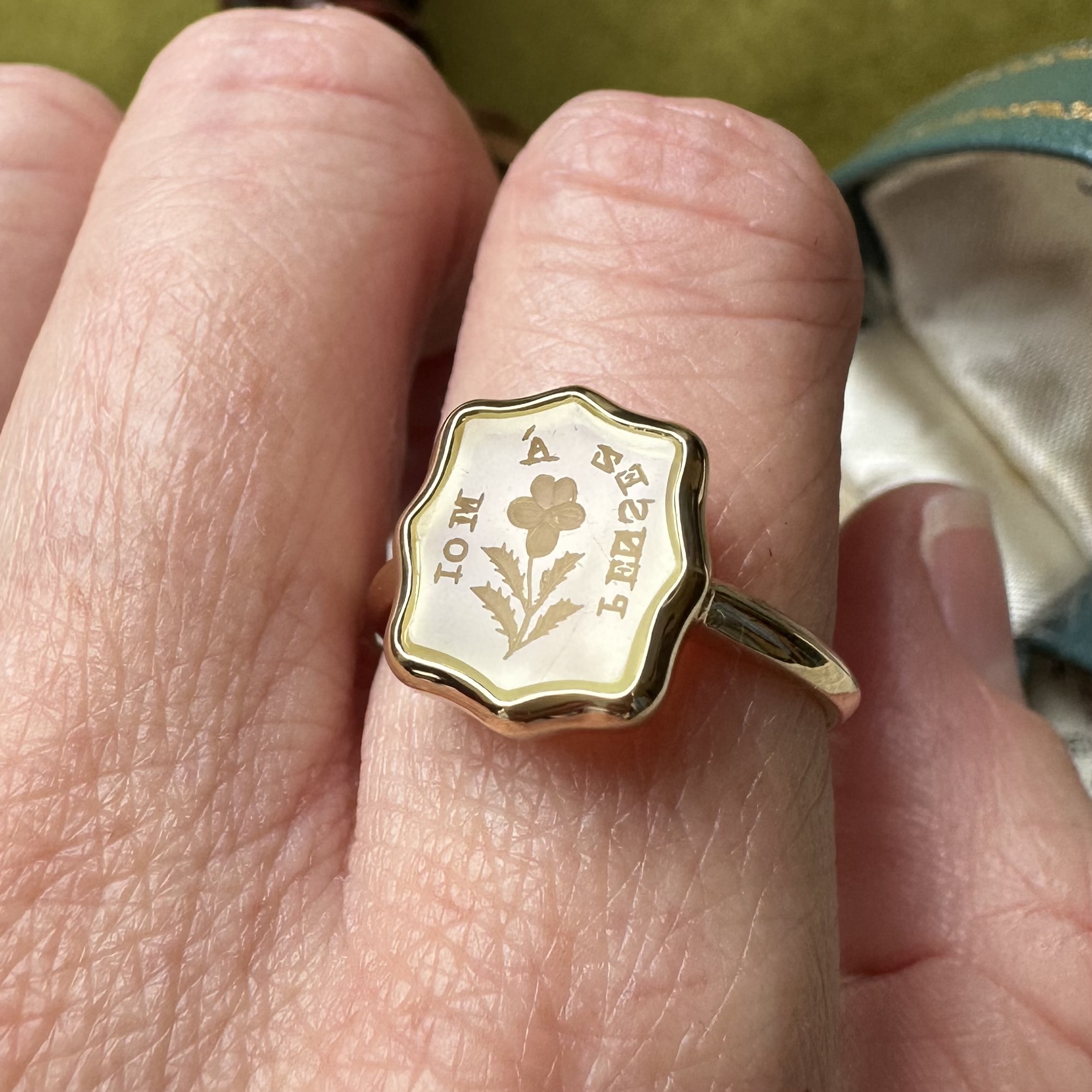 It is important to note that the term dainty was originally coined with reference to the minimalist gold bezel of gold and not to the size of finished piece itself. So dainty setting would have been a much better moniker because it is perfectly possible to have a dainty ring featuring a whacking great intaglio that is quite the finger covering statement piece. Emma didn’t think that through when she named them did she?!